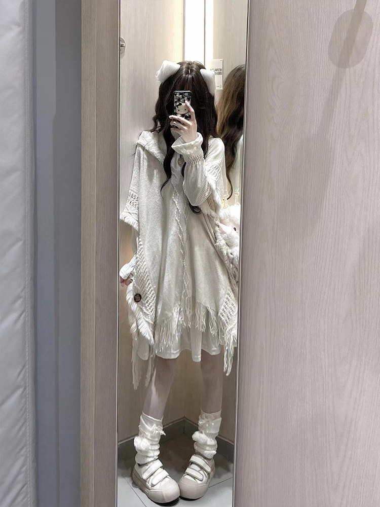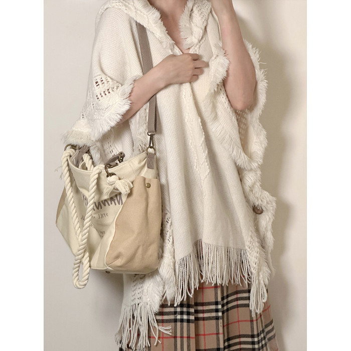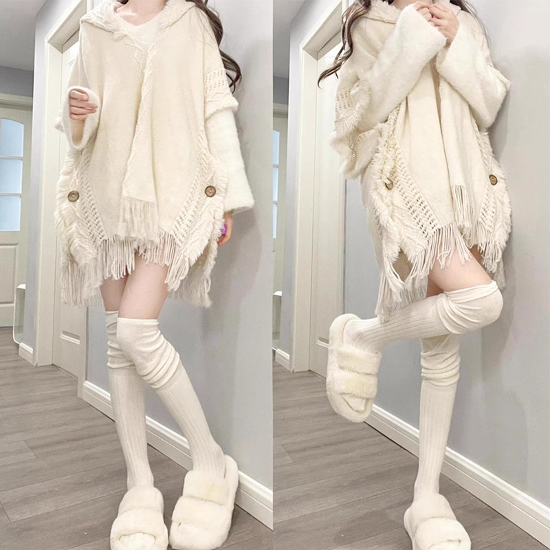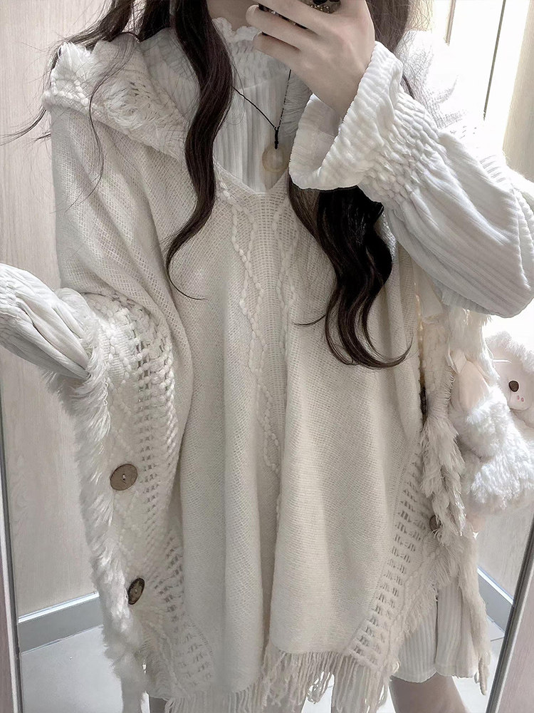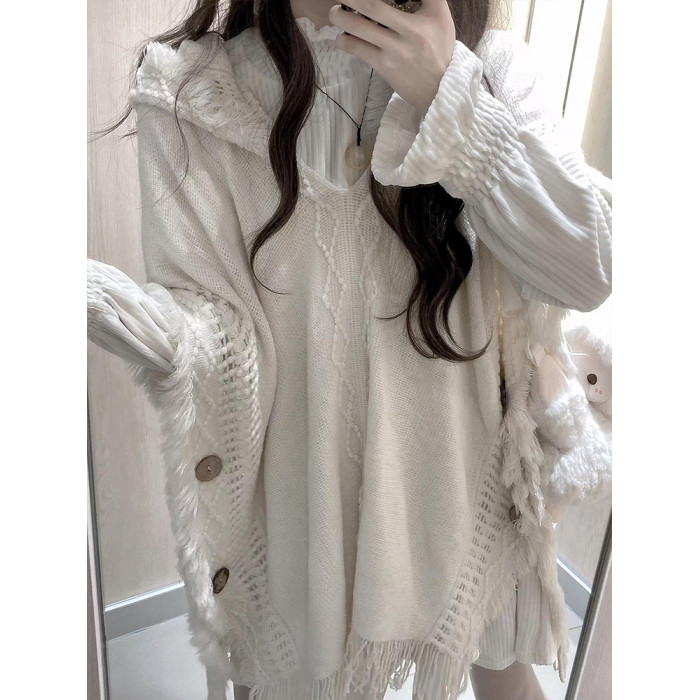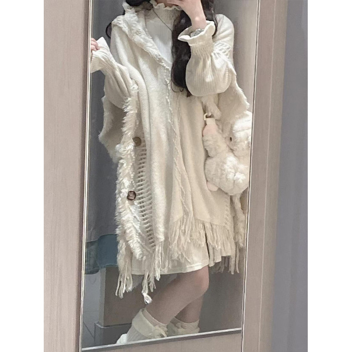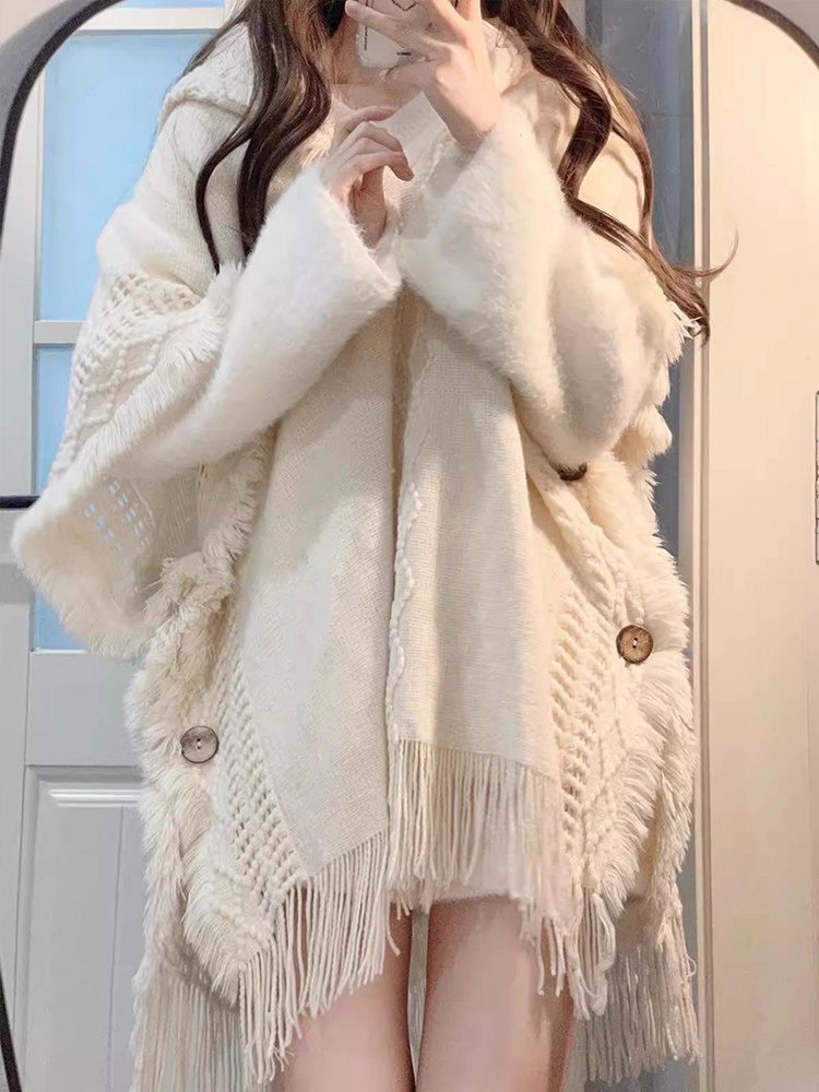 針織衫流蘇鬭篷波西米亞風罩衫民族風連帽披肩外搭外套女秋冬毛衣