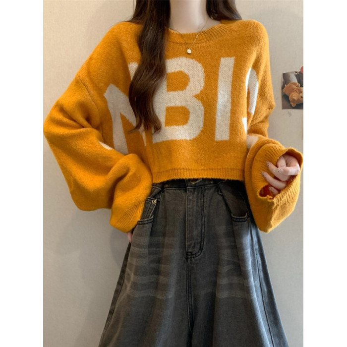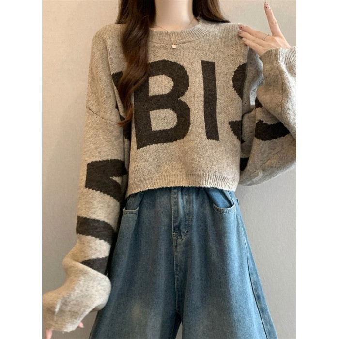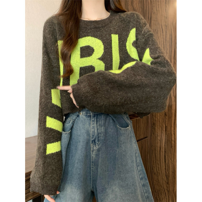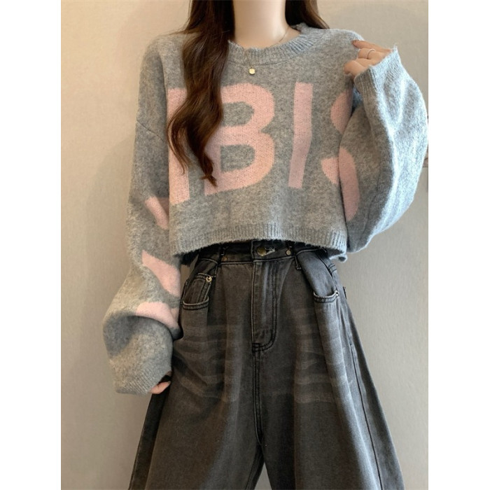 短款毛衣女2025秋冬新款爆款印花寬松慵懶高級感蝙蝠長袖針織上衣