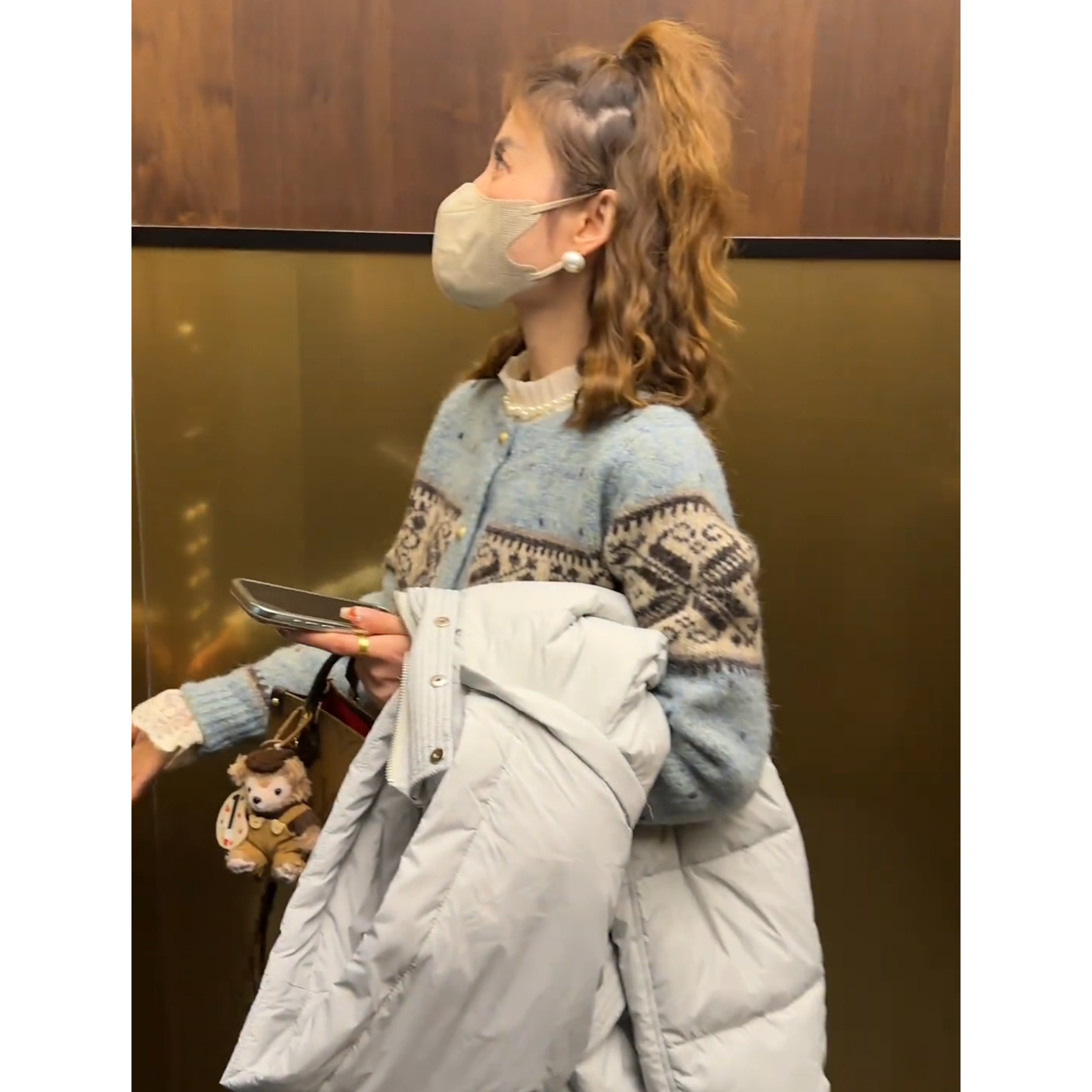 費爾島提花復古軟糯毛衣外套女秋季新款慵懶寬松百搭針織開衫上衣