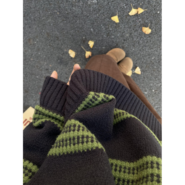 韓系條紋撞色毛衣女秋冬新款高級感寬鬆慵嬾風軟糯內搭針織衫上衣