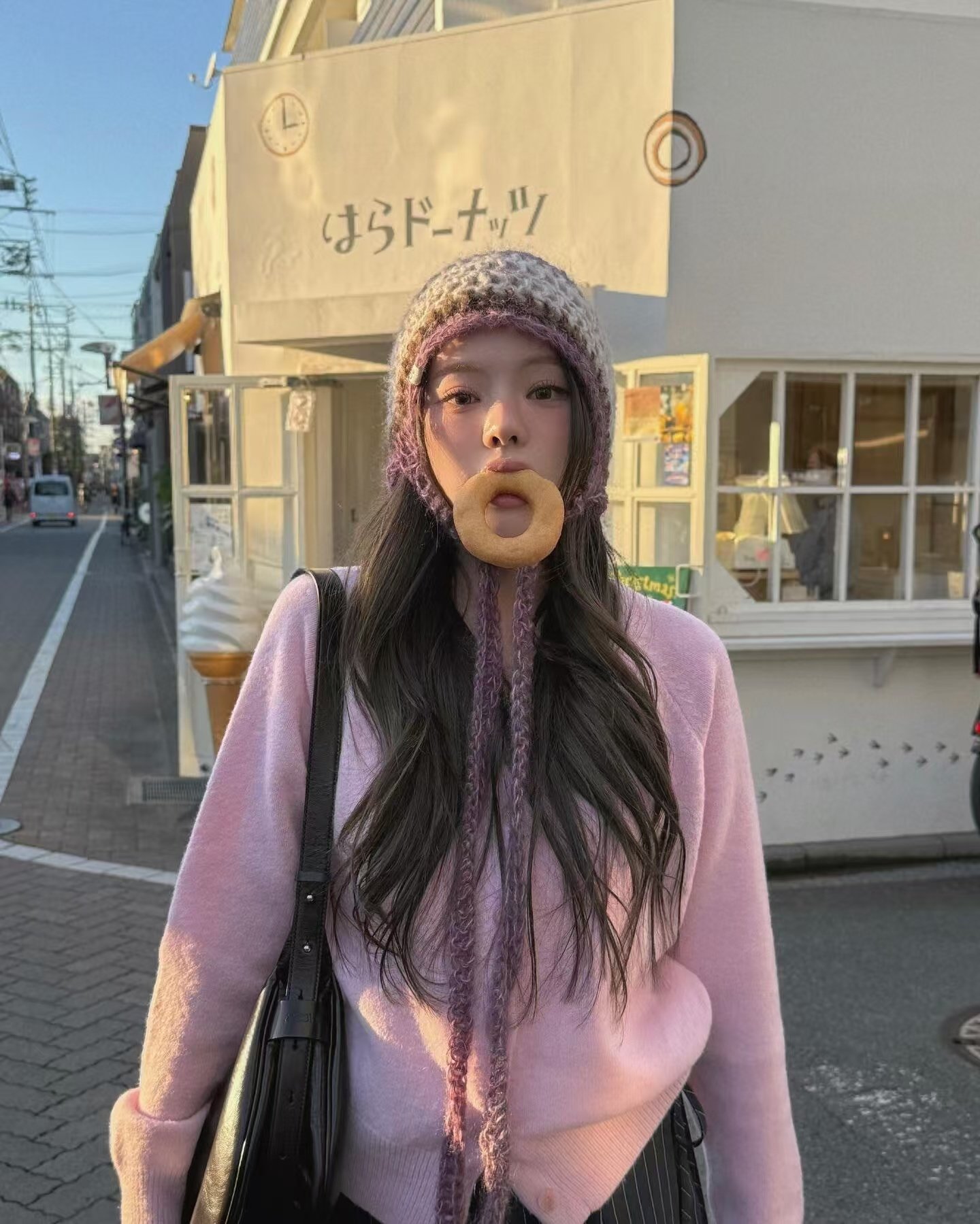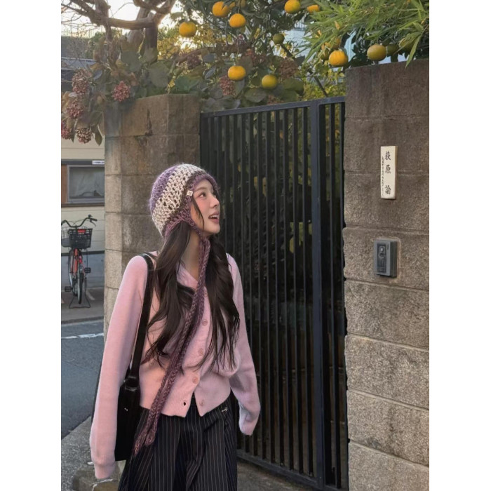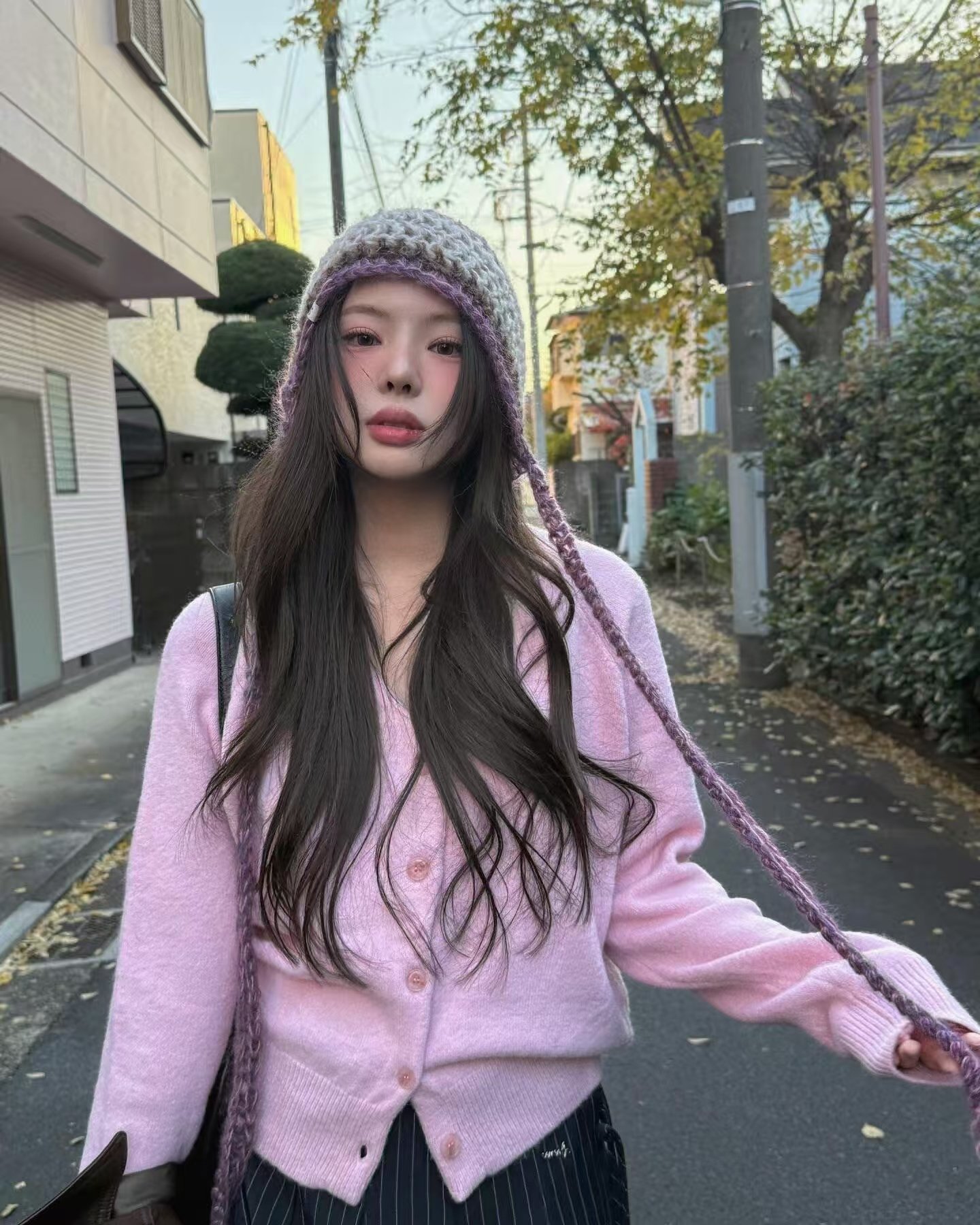 韓系高級感粉色軟糯毛衣開衫女秋冬2025新款松弛慵嬾風針織短外套