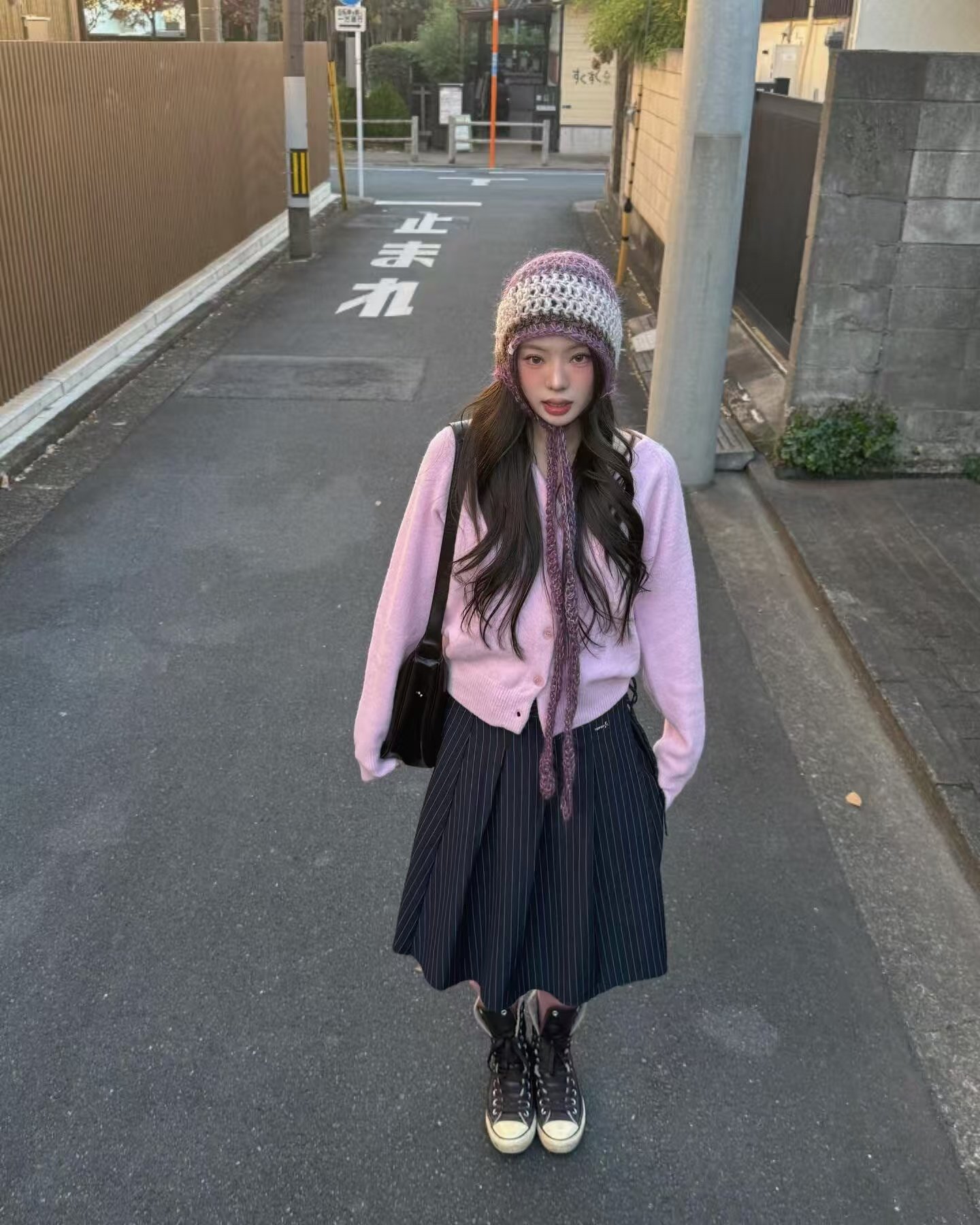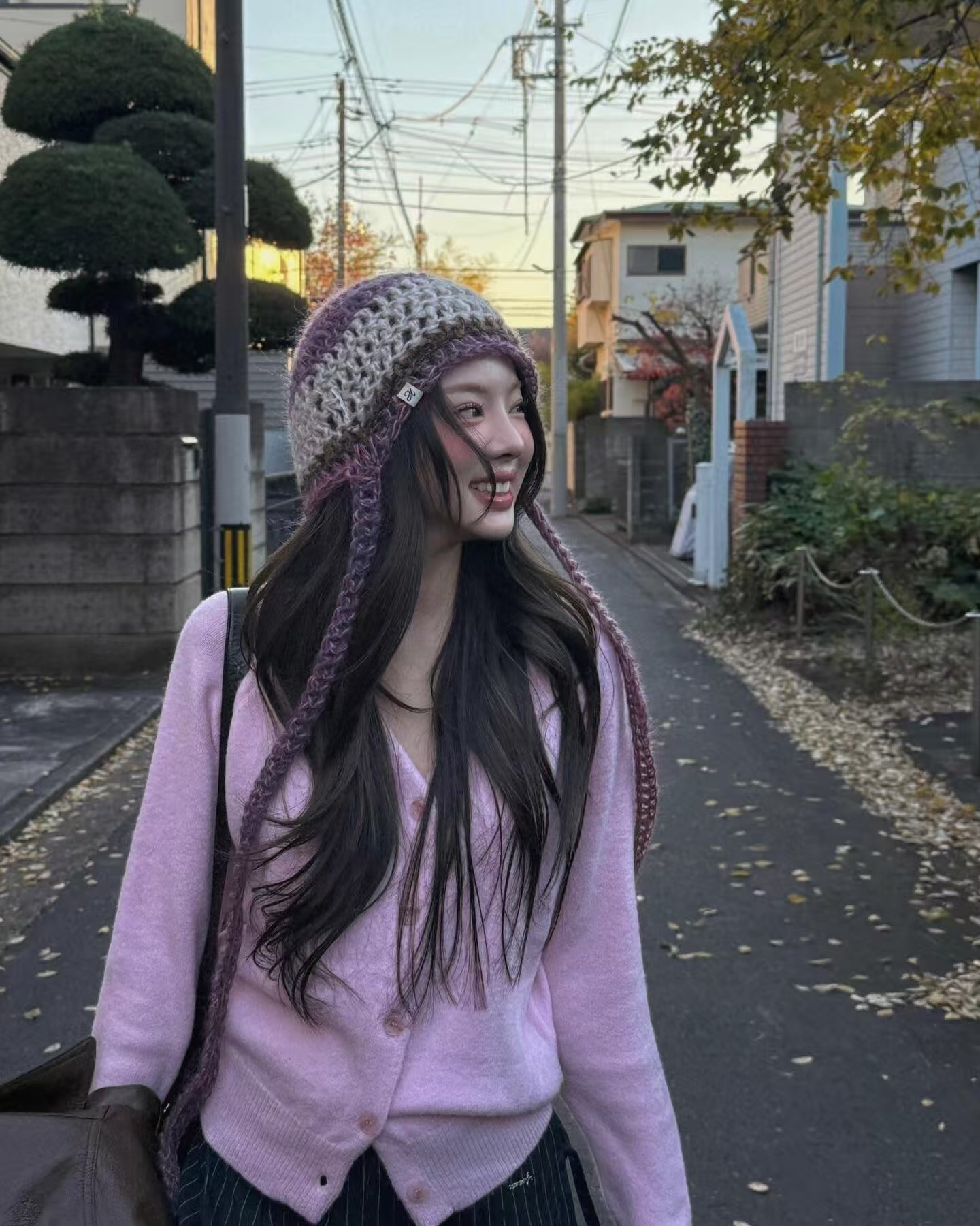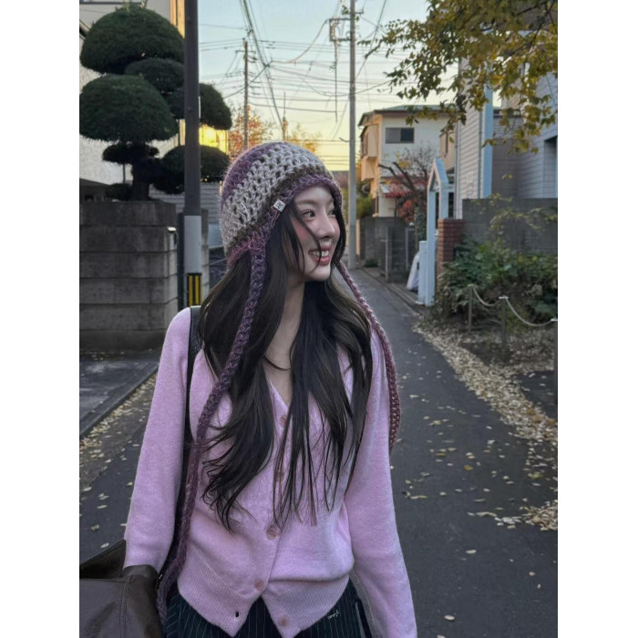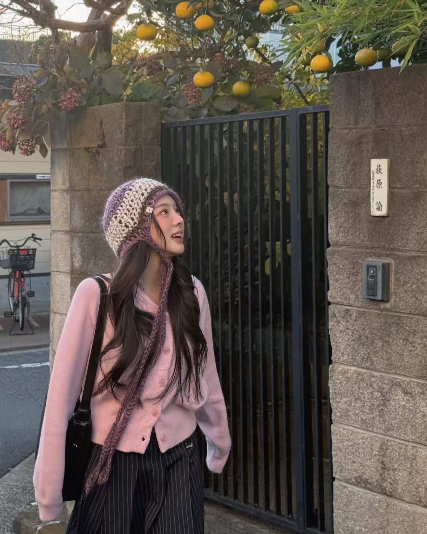 韓系高級感粉色軟糯毛衣開衫女秋冬2025新款松弛慵嬾風針織短外套