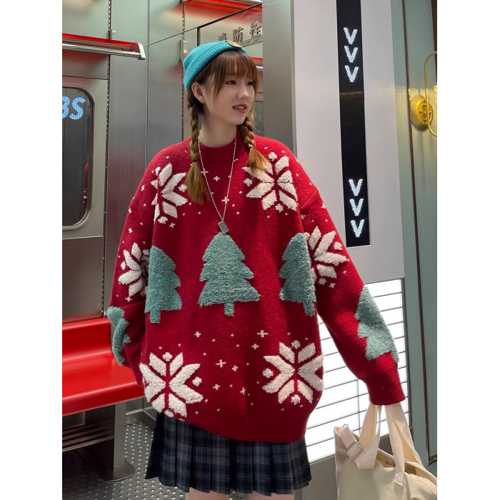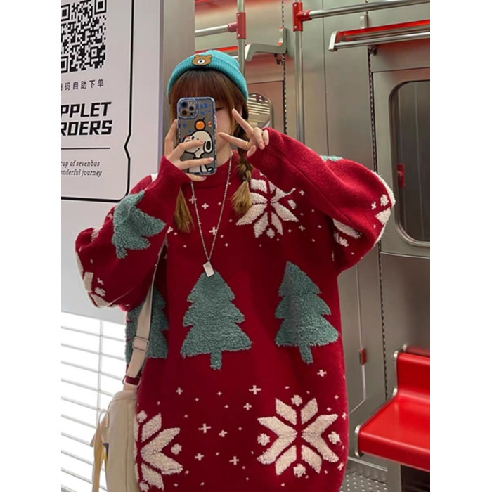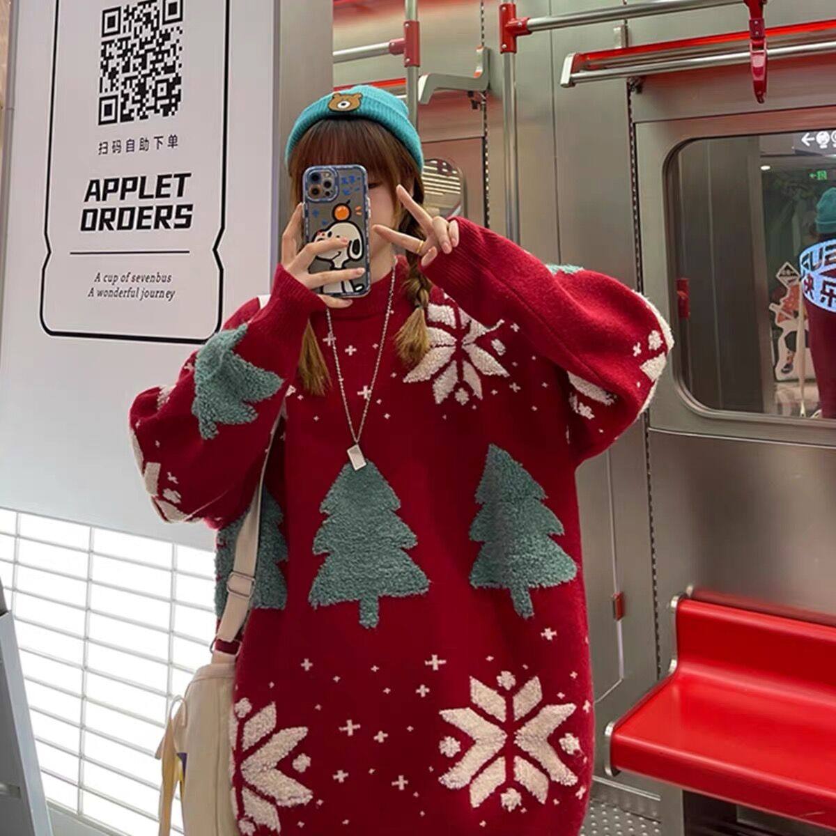 聖誕節過年情侶裝毛衣2025秋冬新款寬鬆慵嬾風外穿針織外套ins潮
