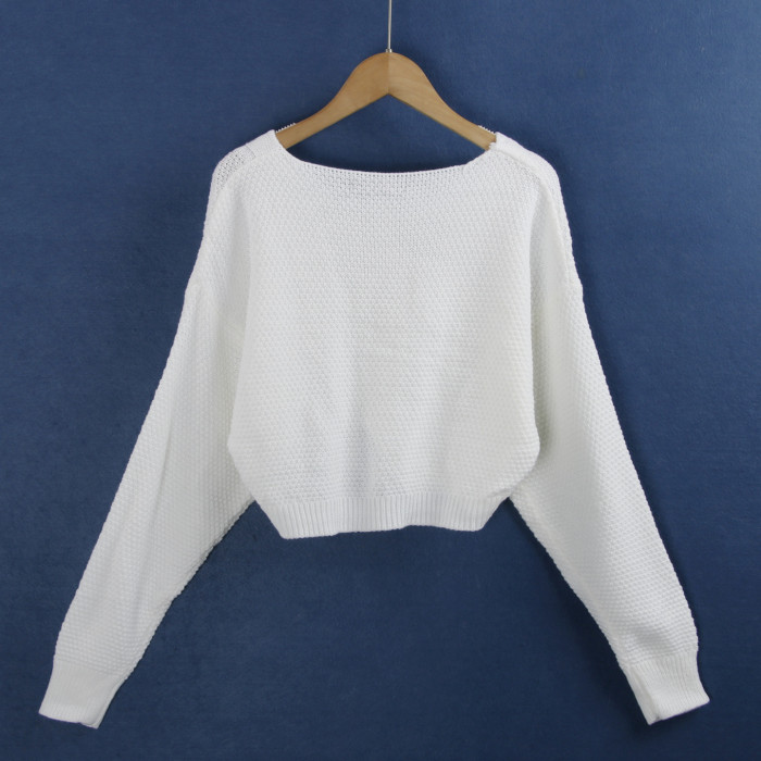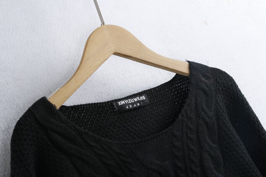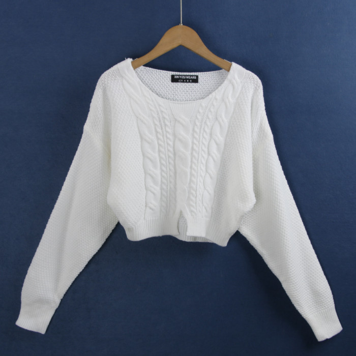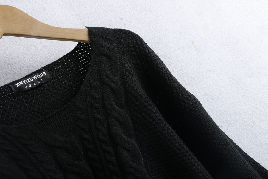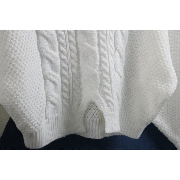 1702麻花毛衣 秋冬棉質圓領時尚開叉短款黑白針織長袖毛線衣女裝