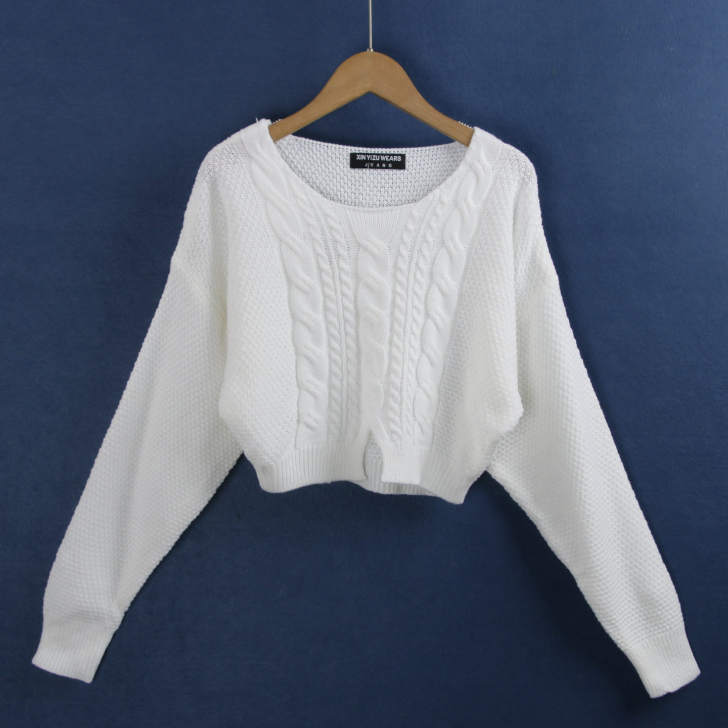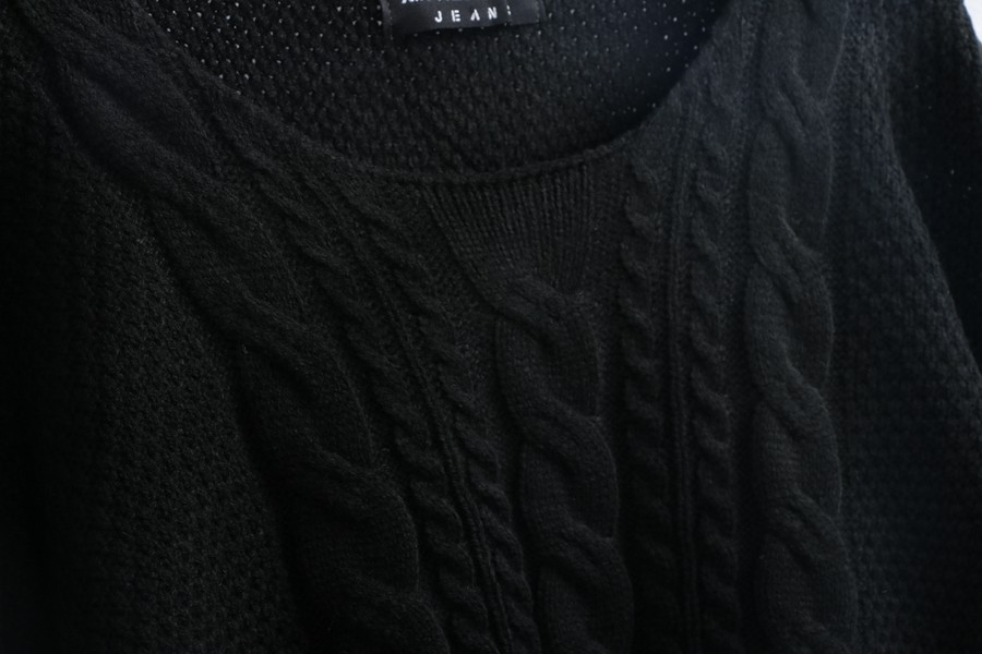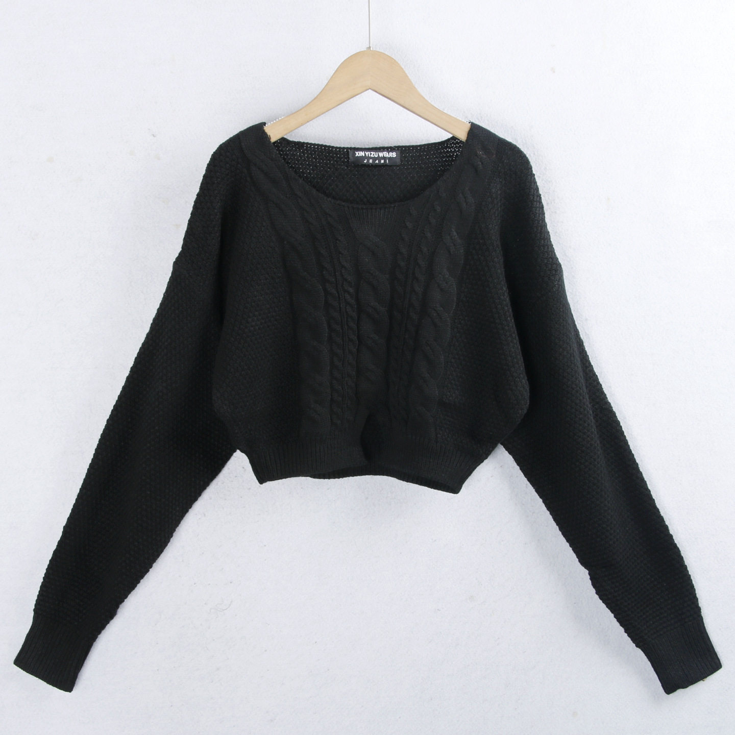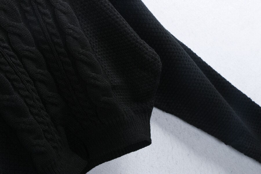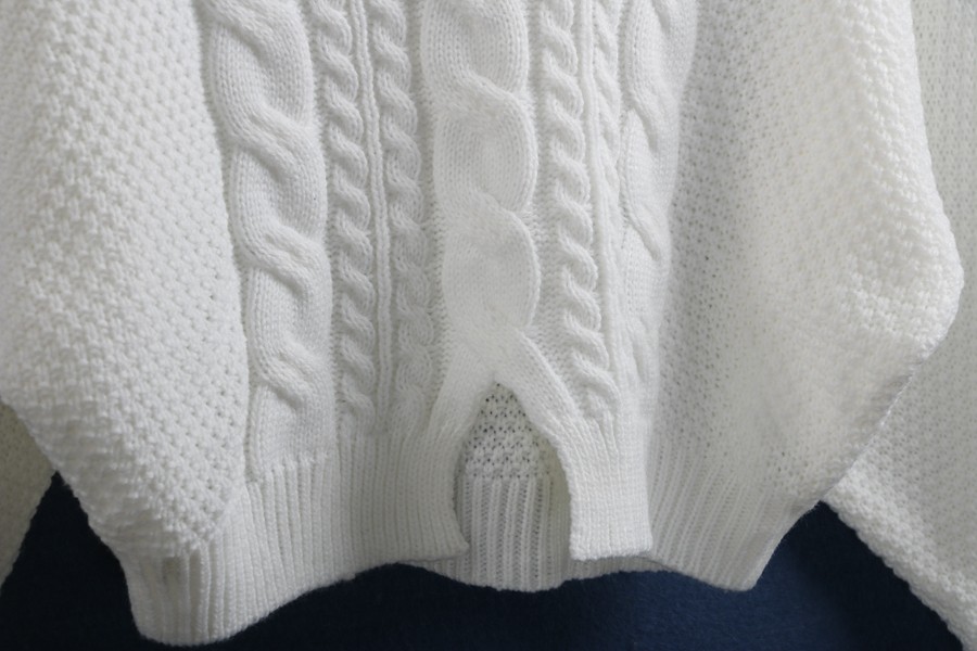 厚度:適中 圓領套頭 麻花時尚大身 下擺小開叉 黑白短款時尚