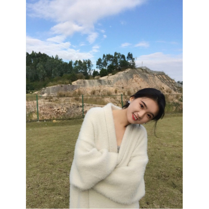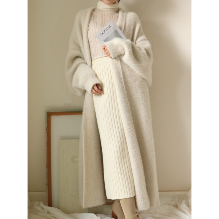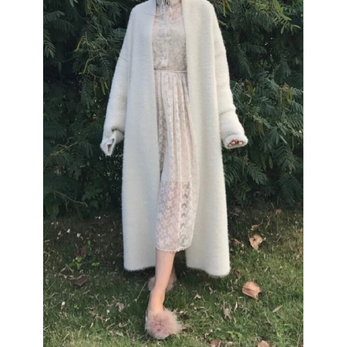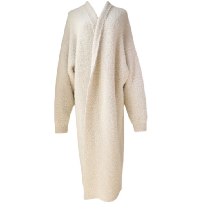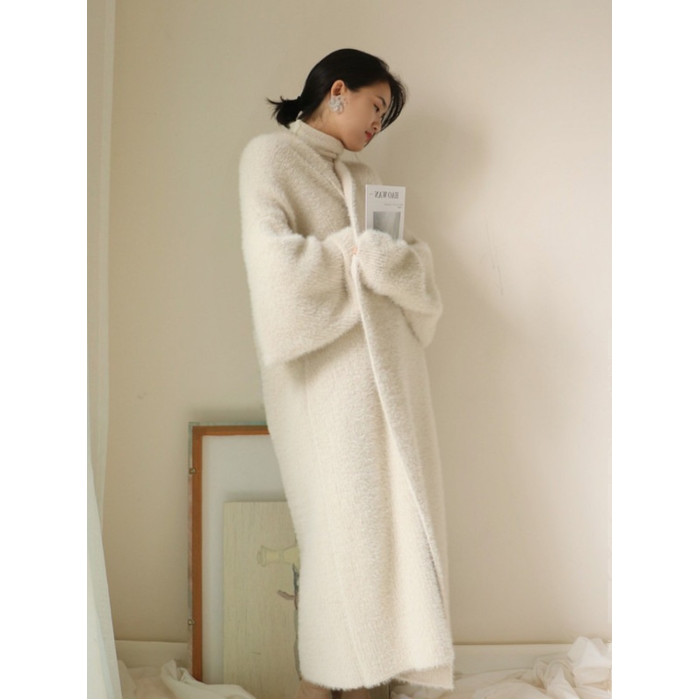 2024秋冬慵懶風寬松過膝加厚中長款水貂絨針織毛衣開衫外套大衣女