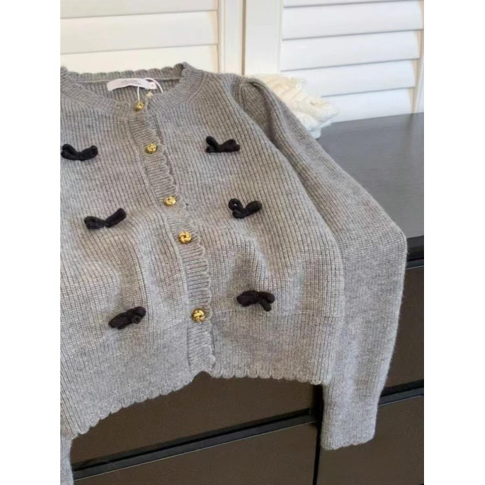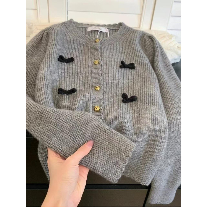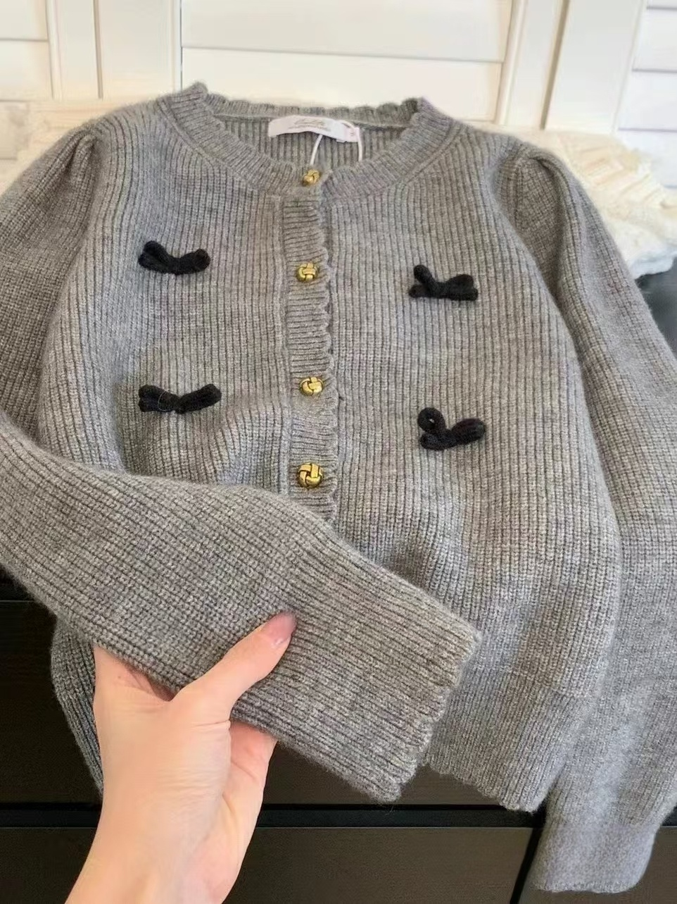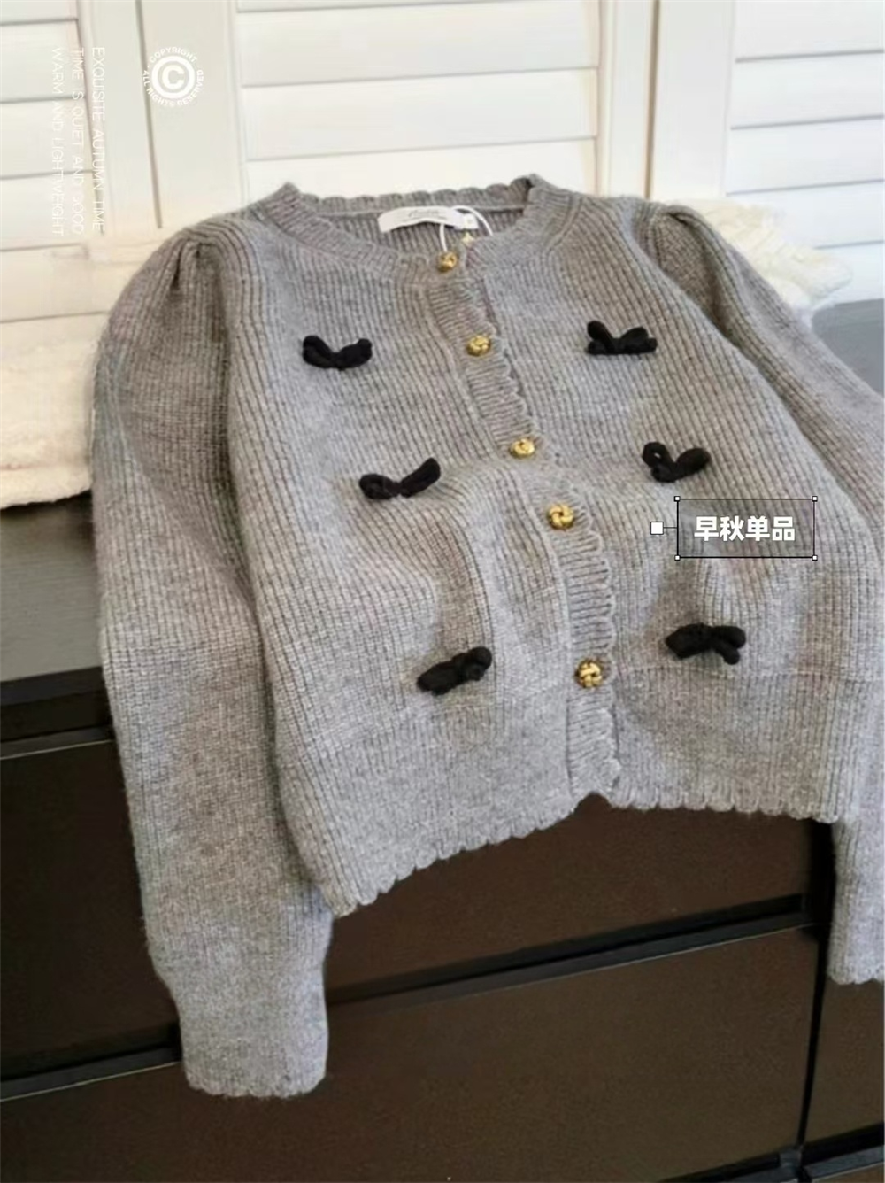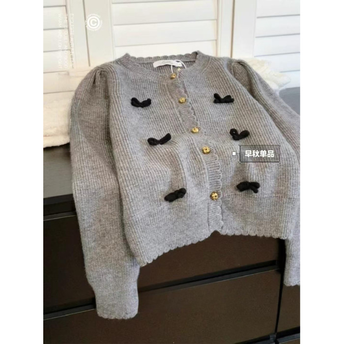 早秋法式小香風蝴蝶結毛衣開衫女秋冬款2024新款小個子上衣短外套