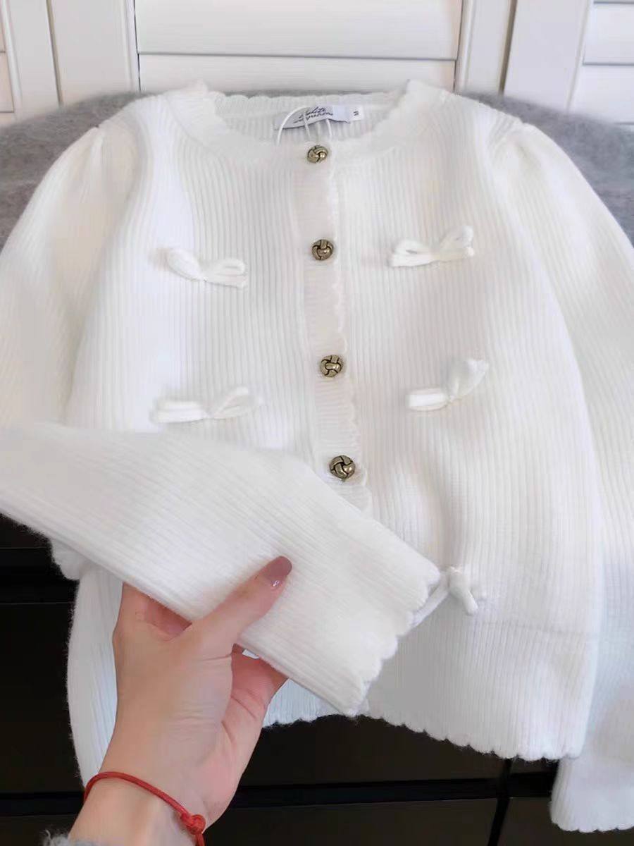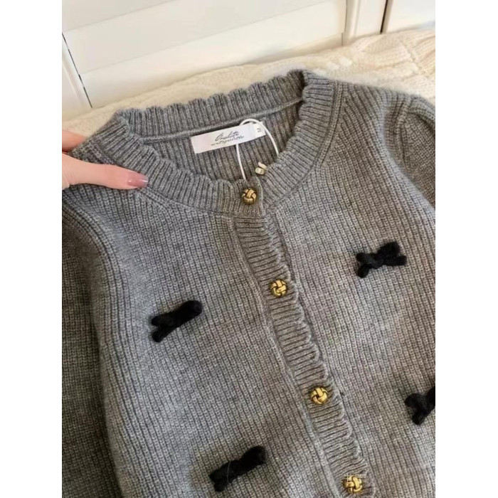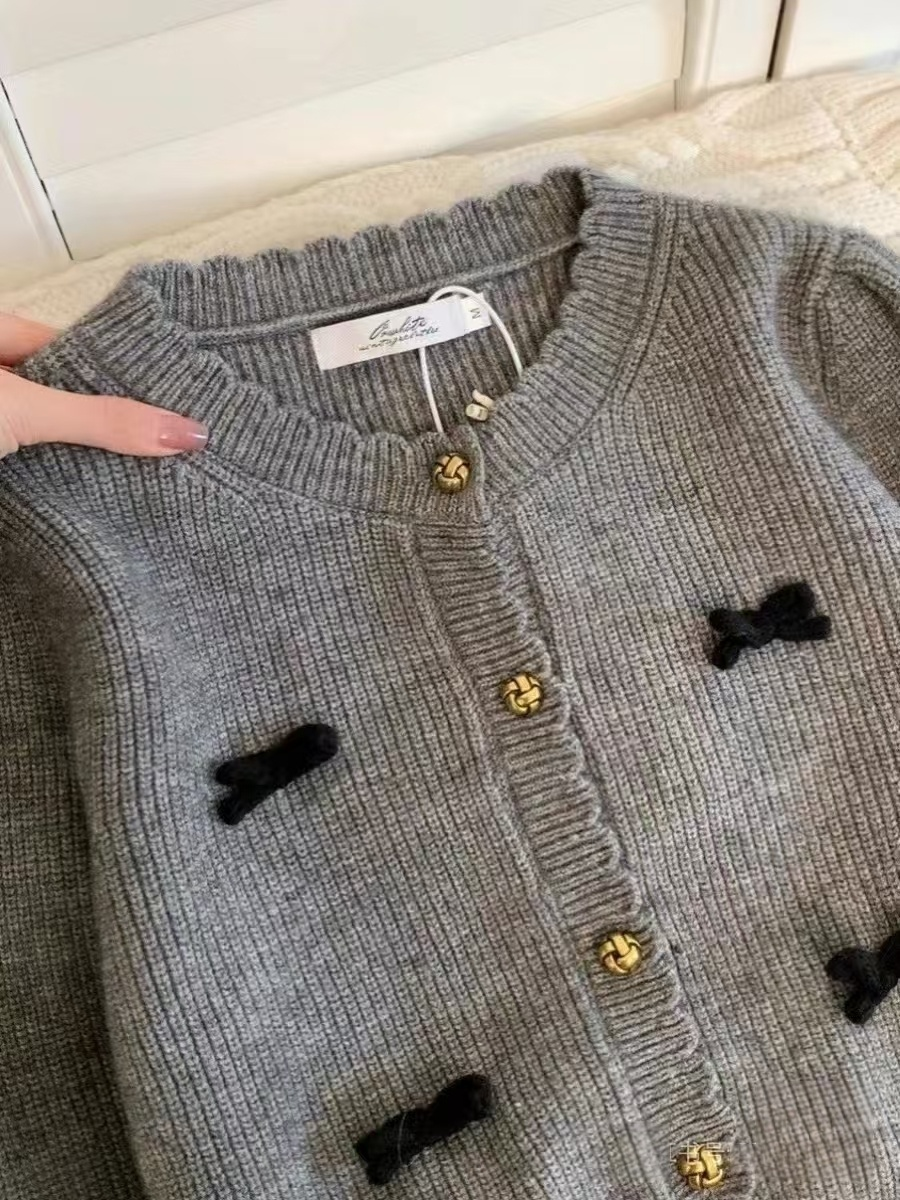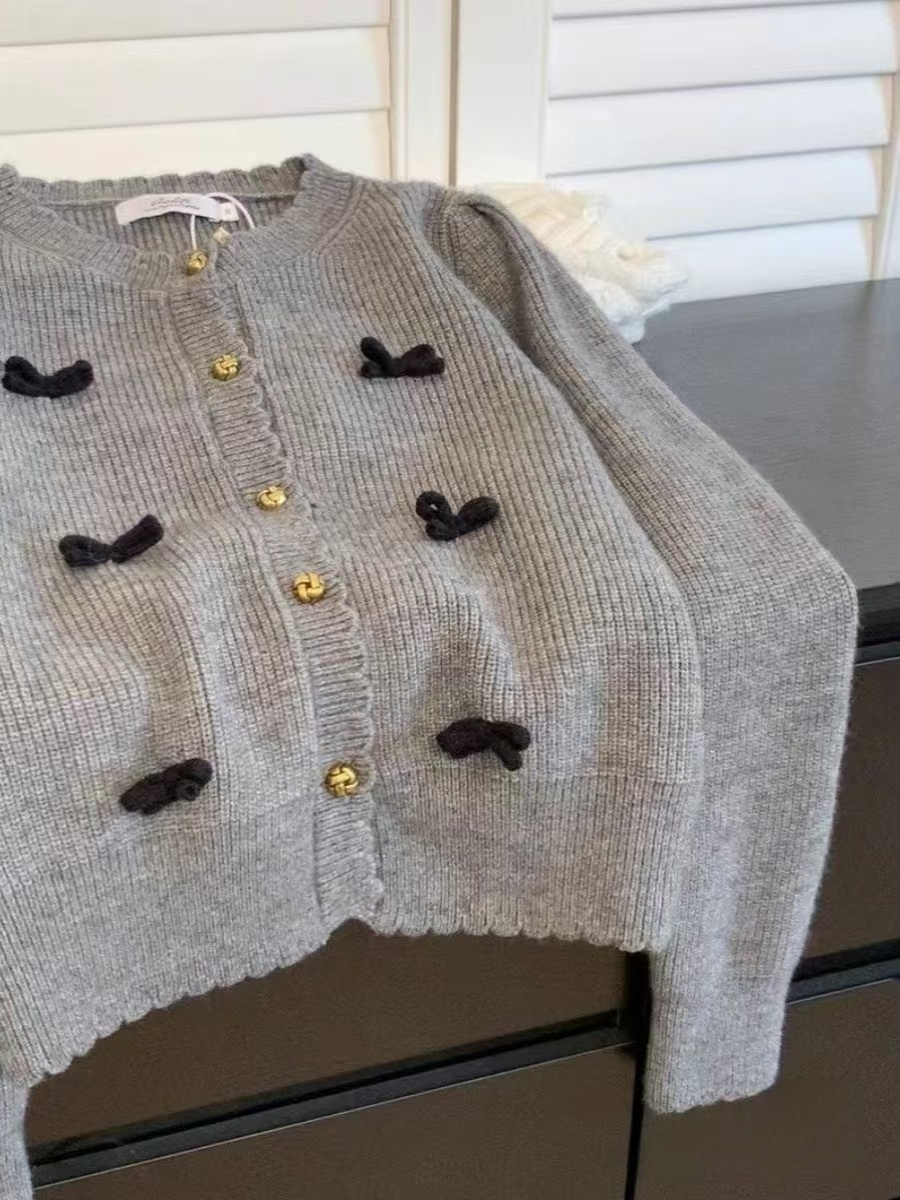 早秋法式小香風蝴蝶結毛衣開衫女秋冬款2024新款小個子上衣短外套