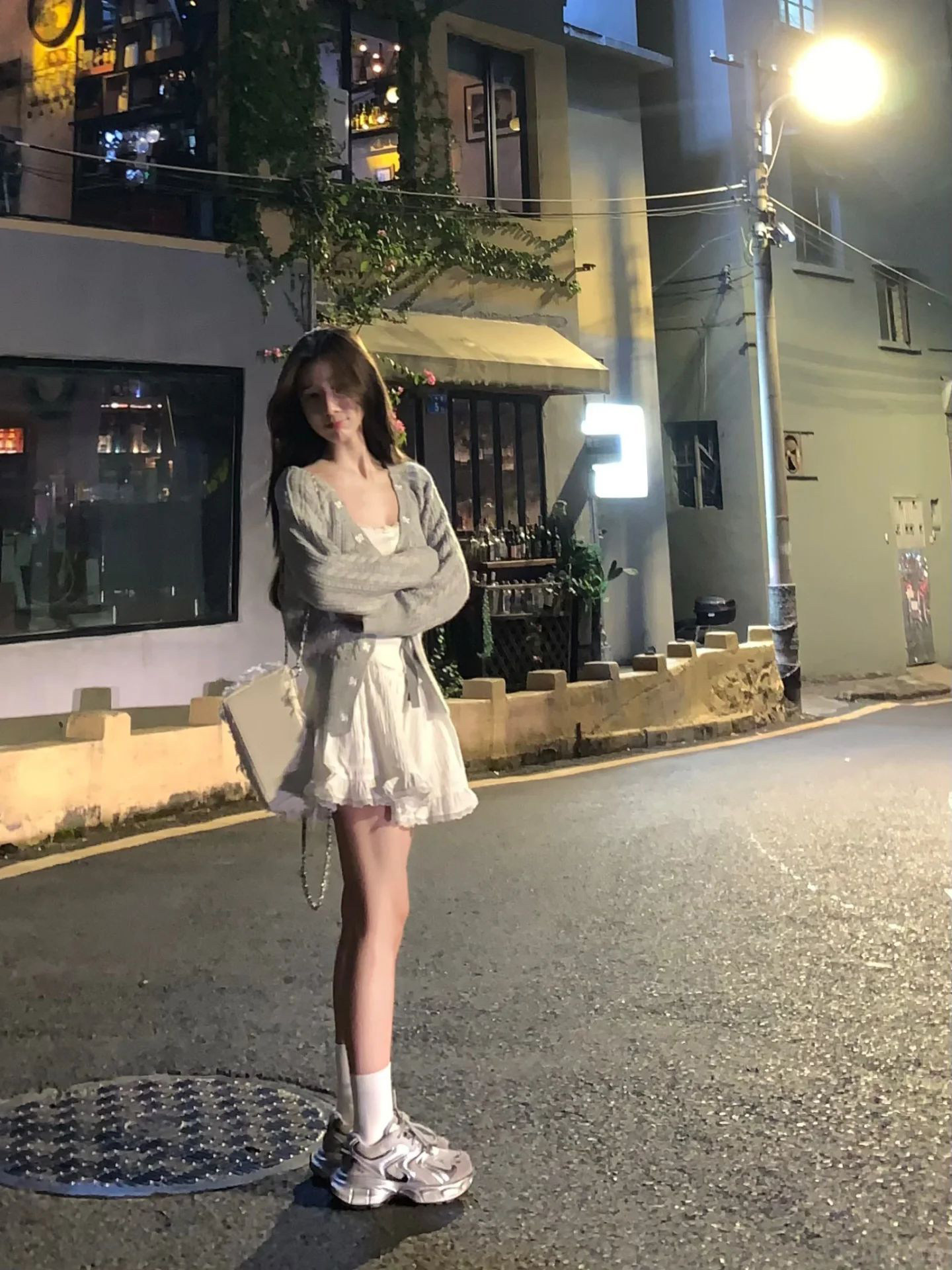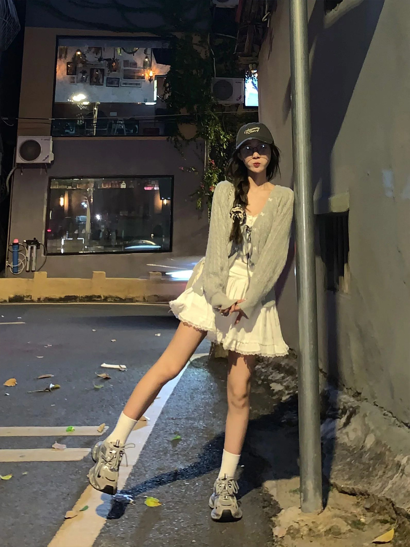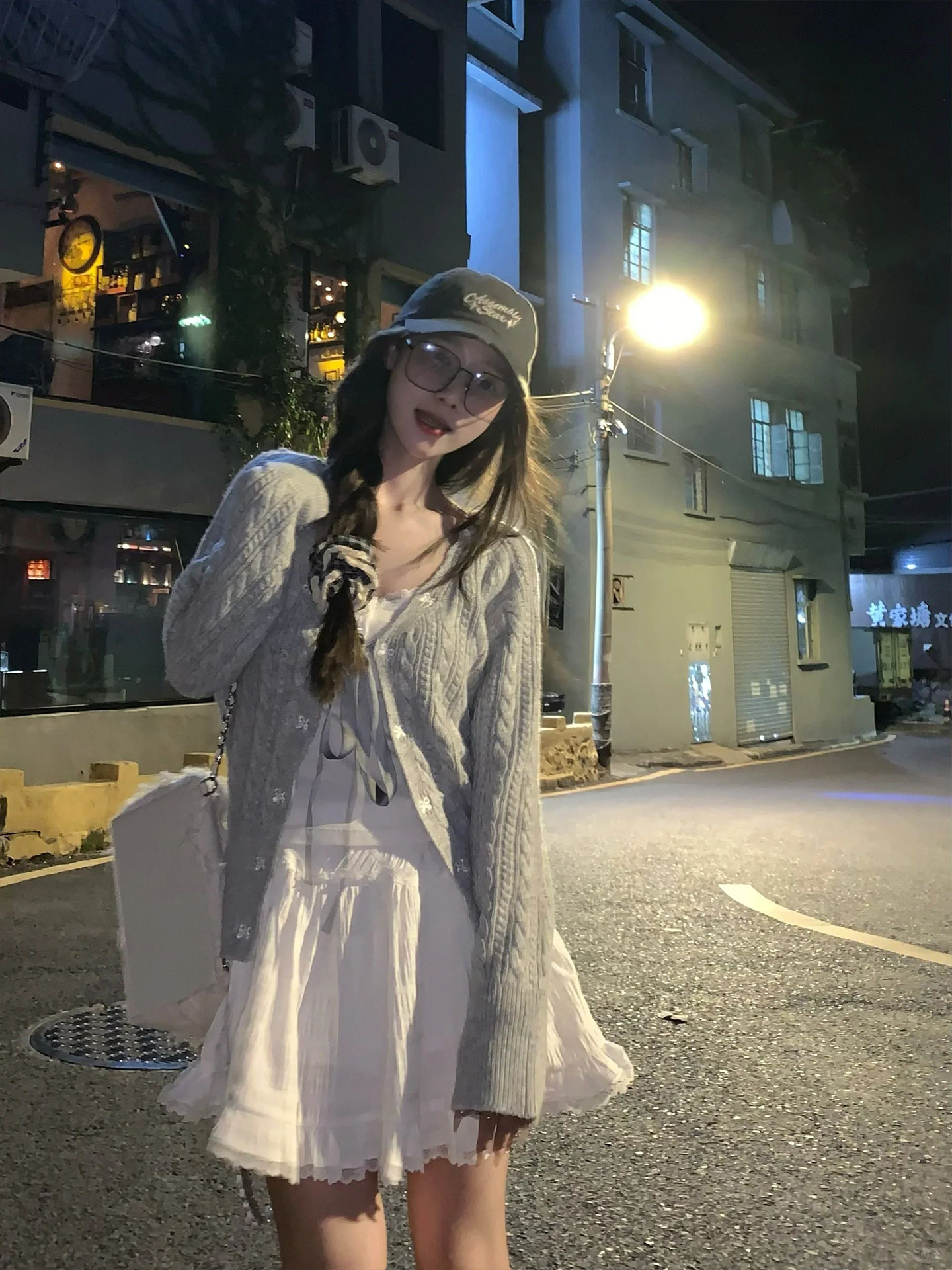 春秋新款日系古著復古軟糯奶fufu慵懶風灰色長袖針織開衫毛衣外套