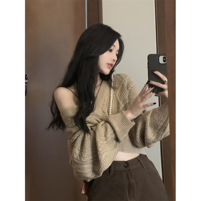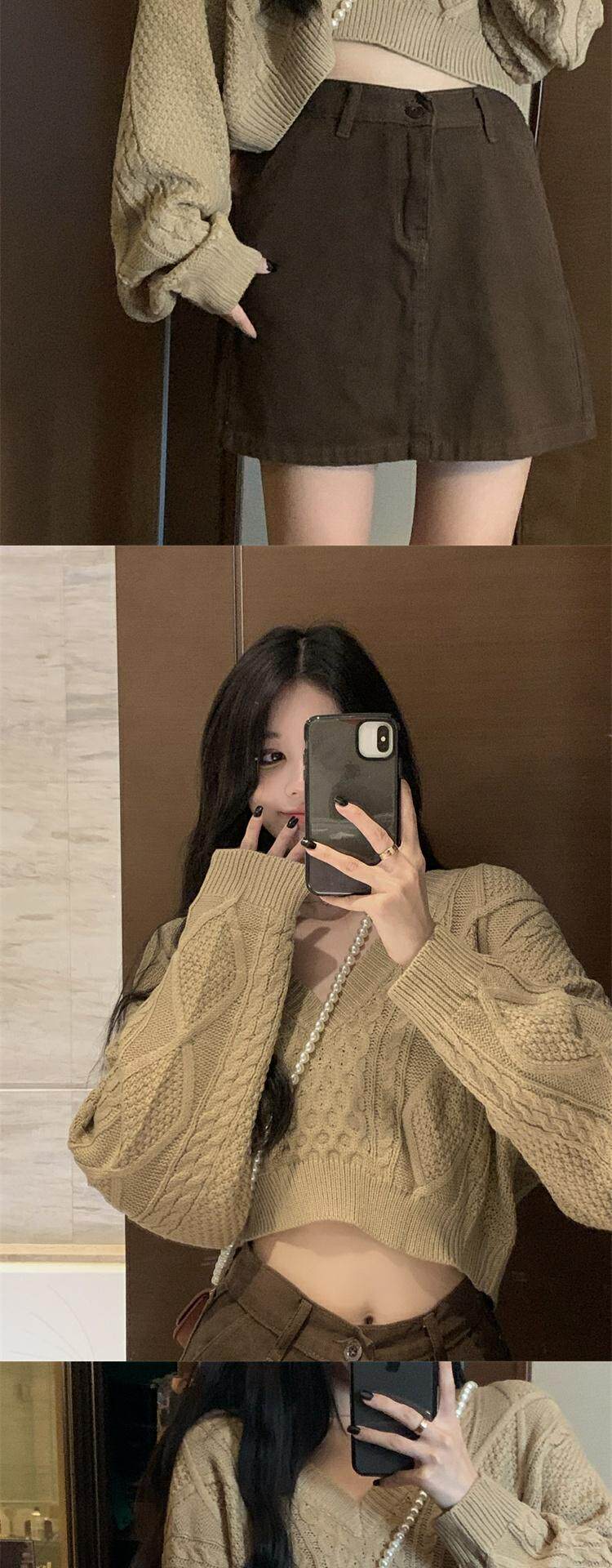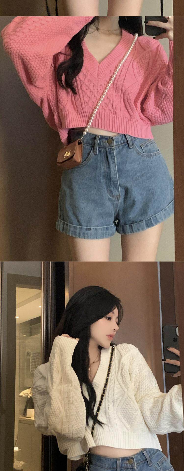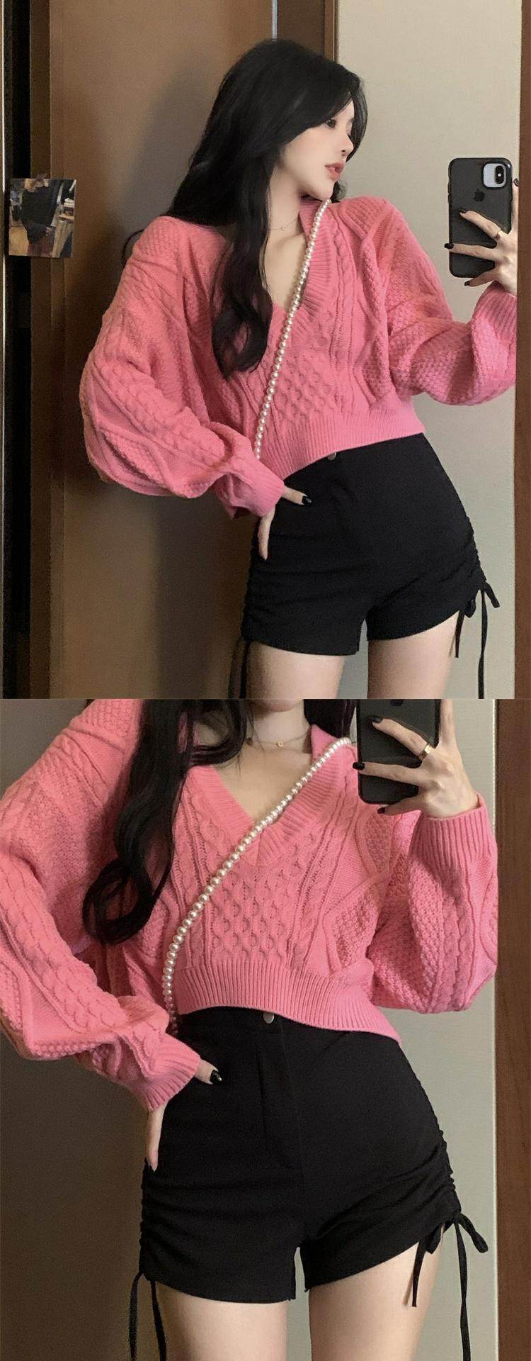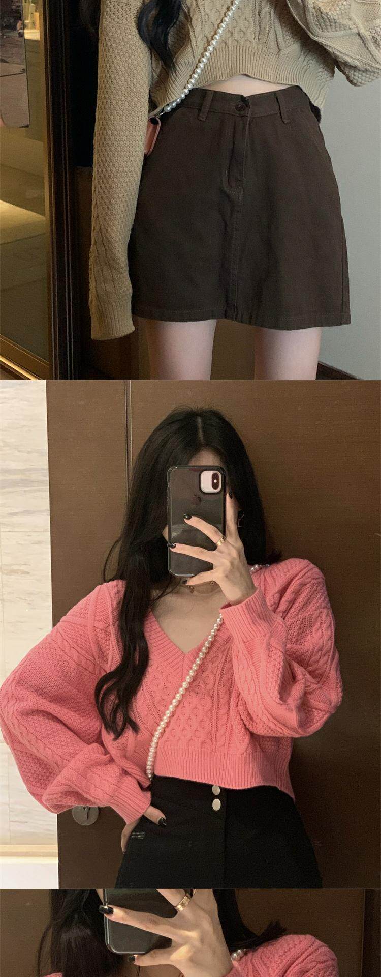 麻花毛衣罩衫女裝秋季2022年新款針織衫v領短款寬松外穿長袖上衣