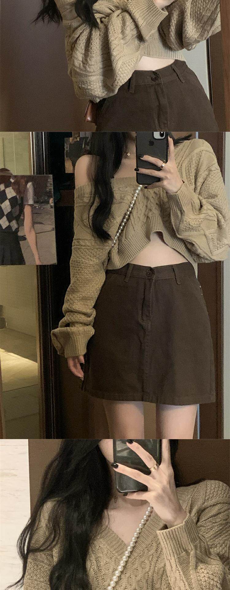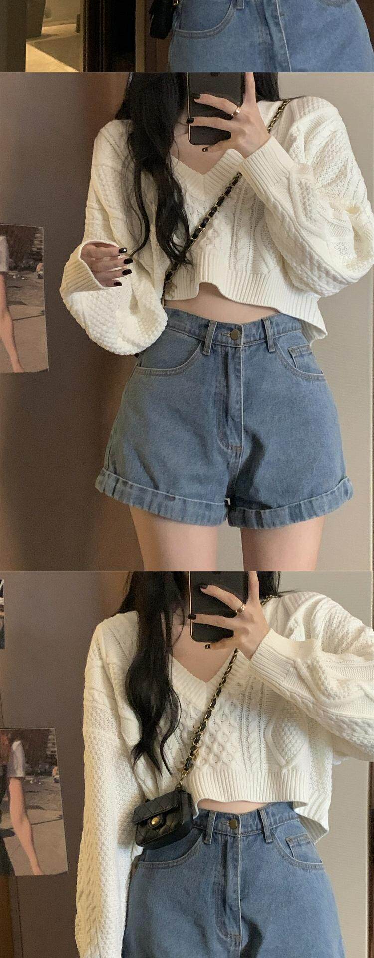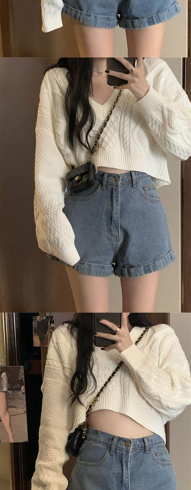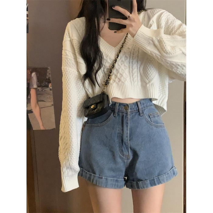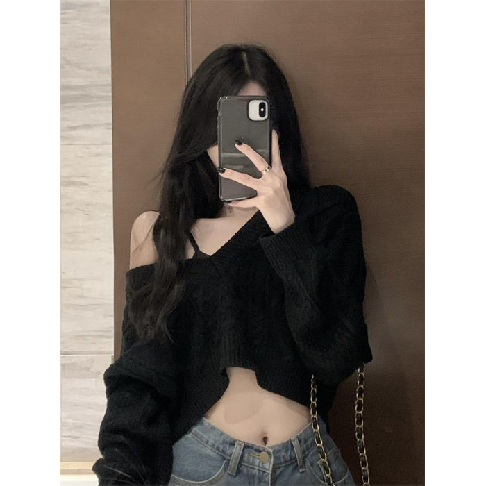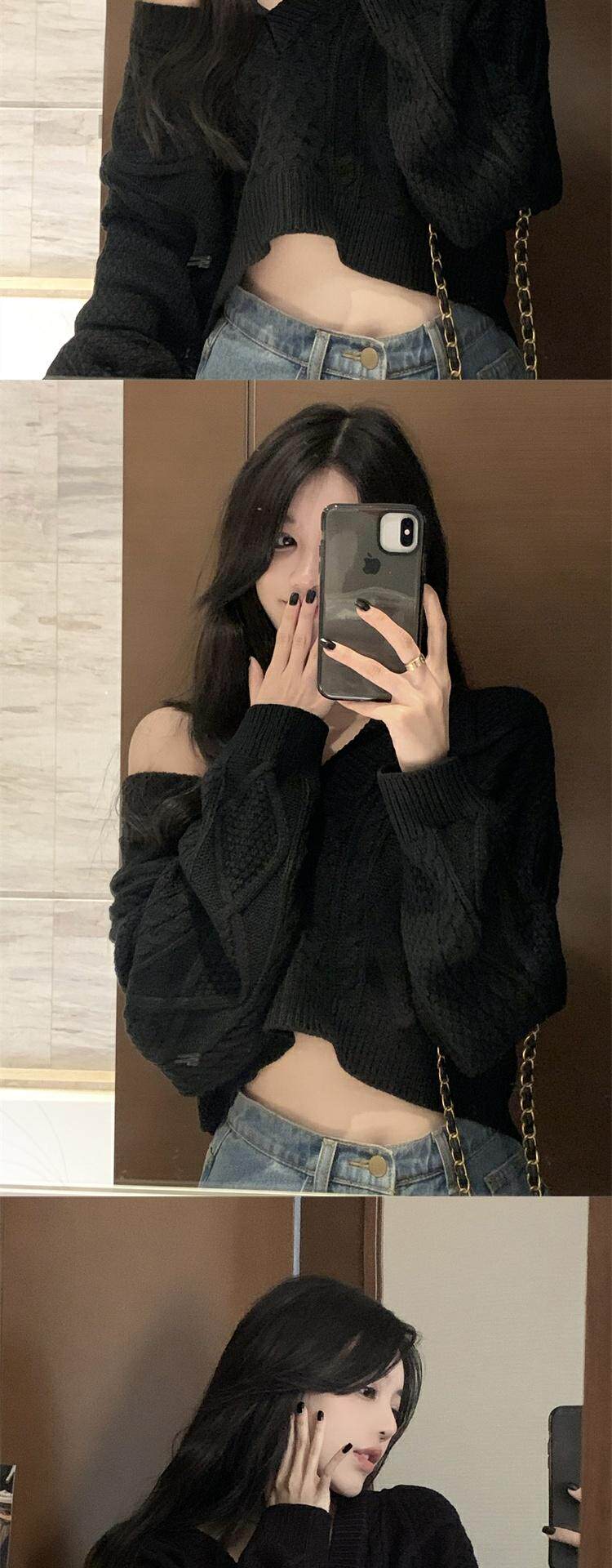 麻花毛衣罩衫女裝秋季2022年新款針織衫v領短款寬松外穿長袖上衣