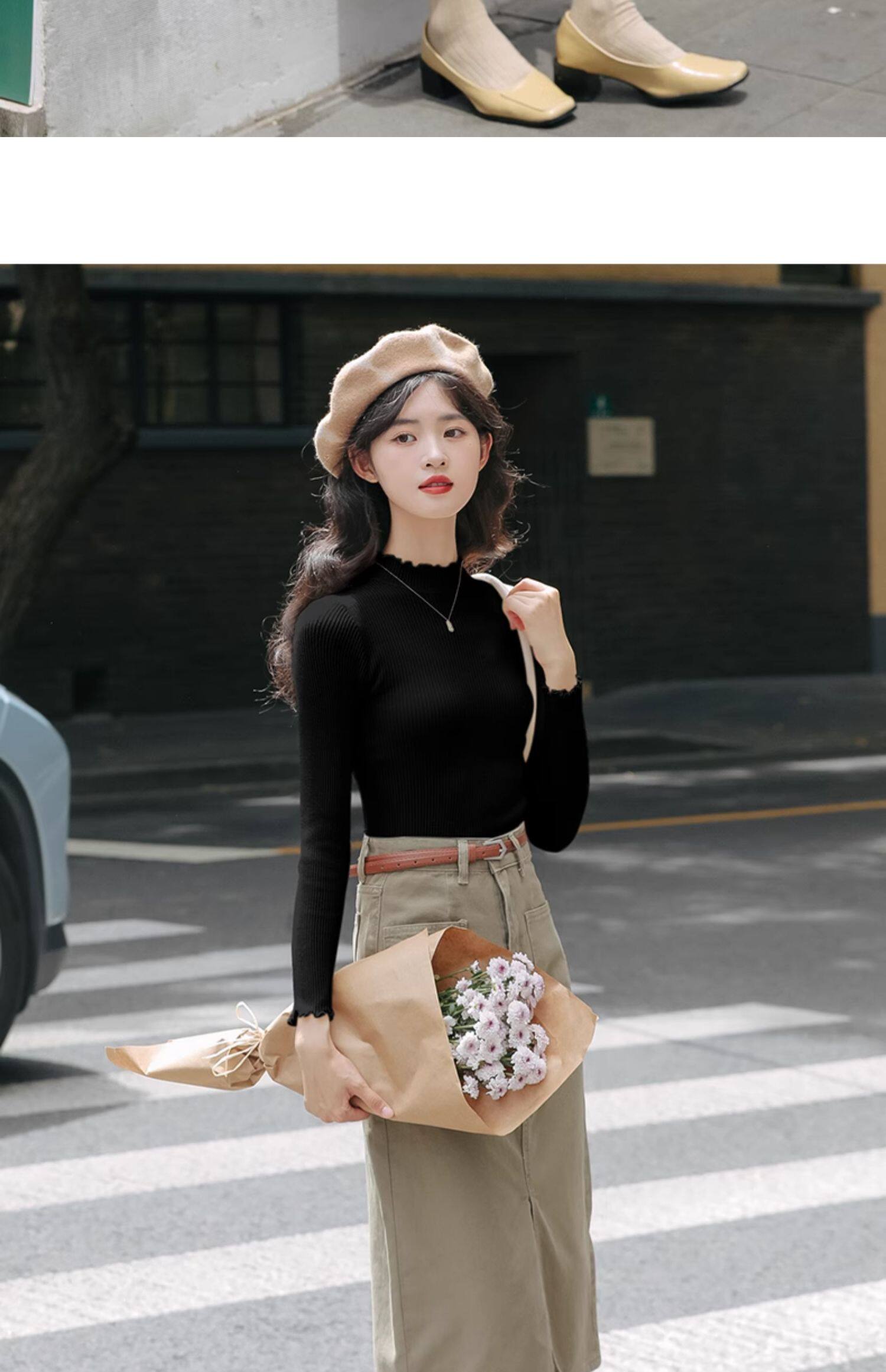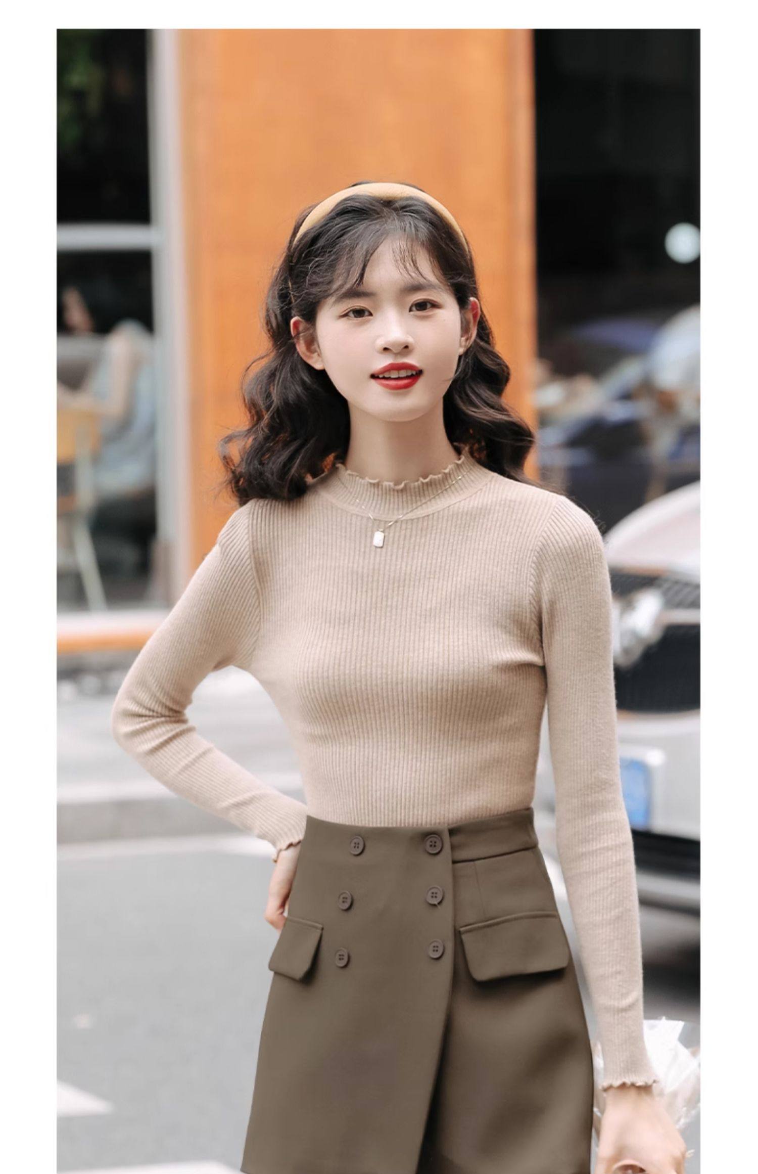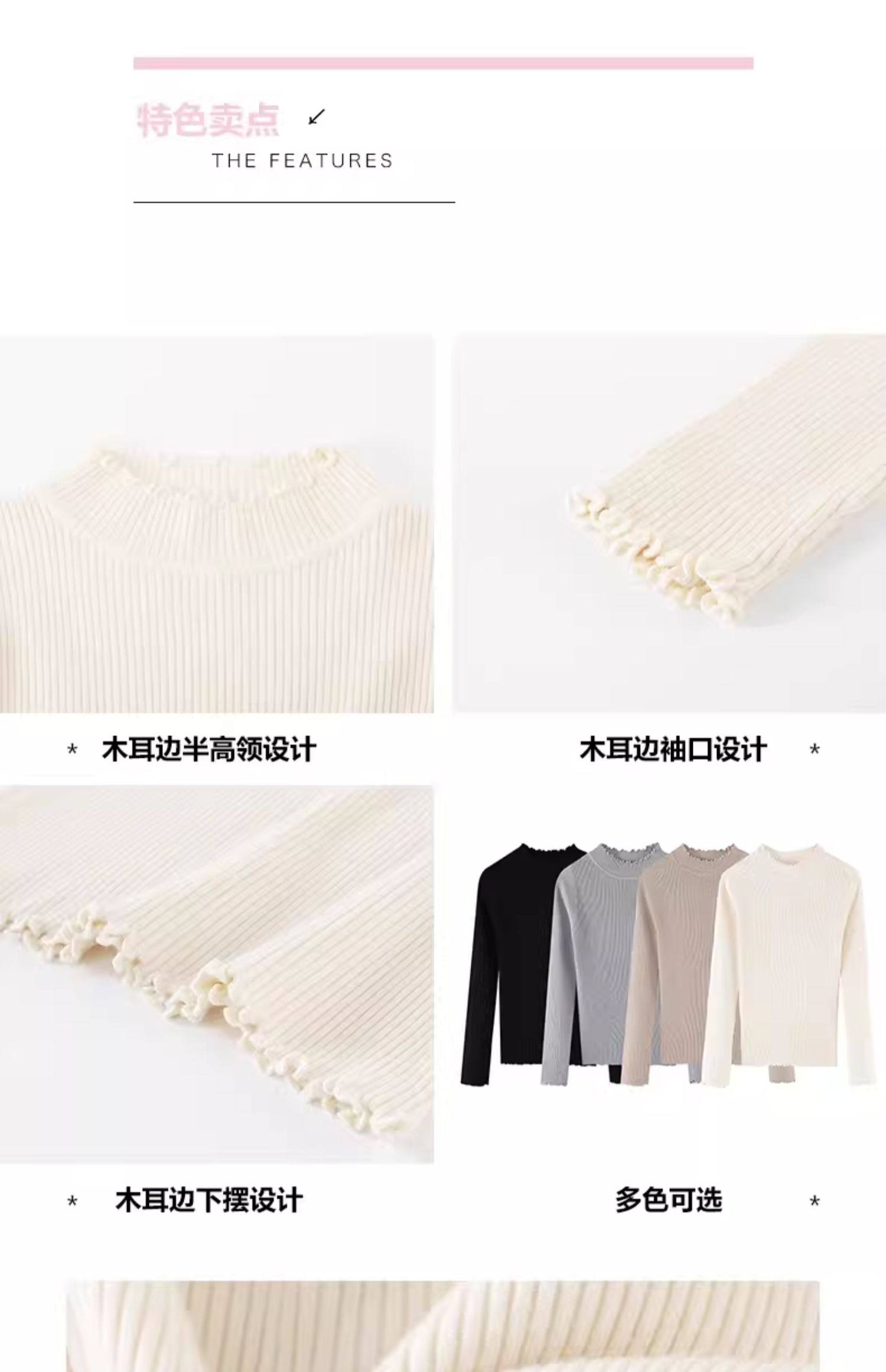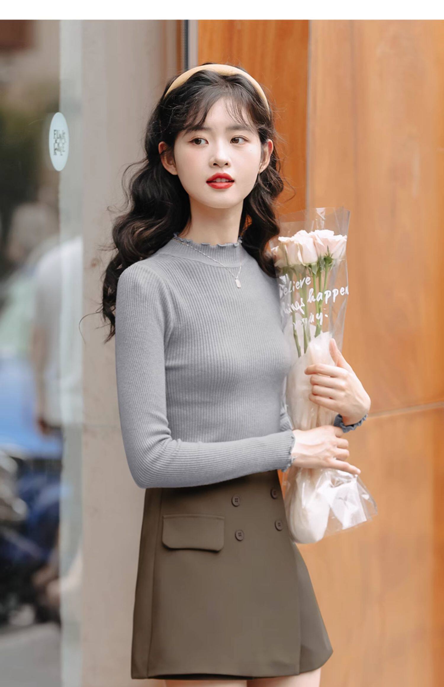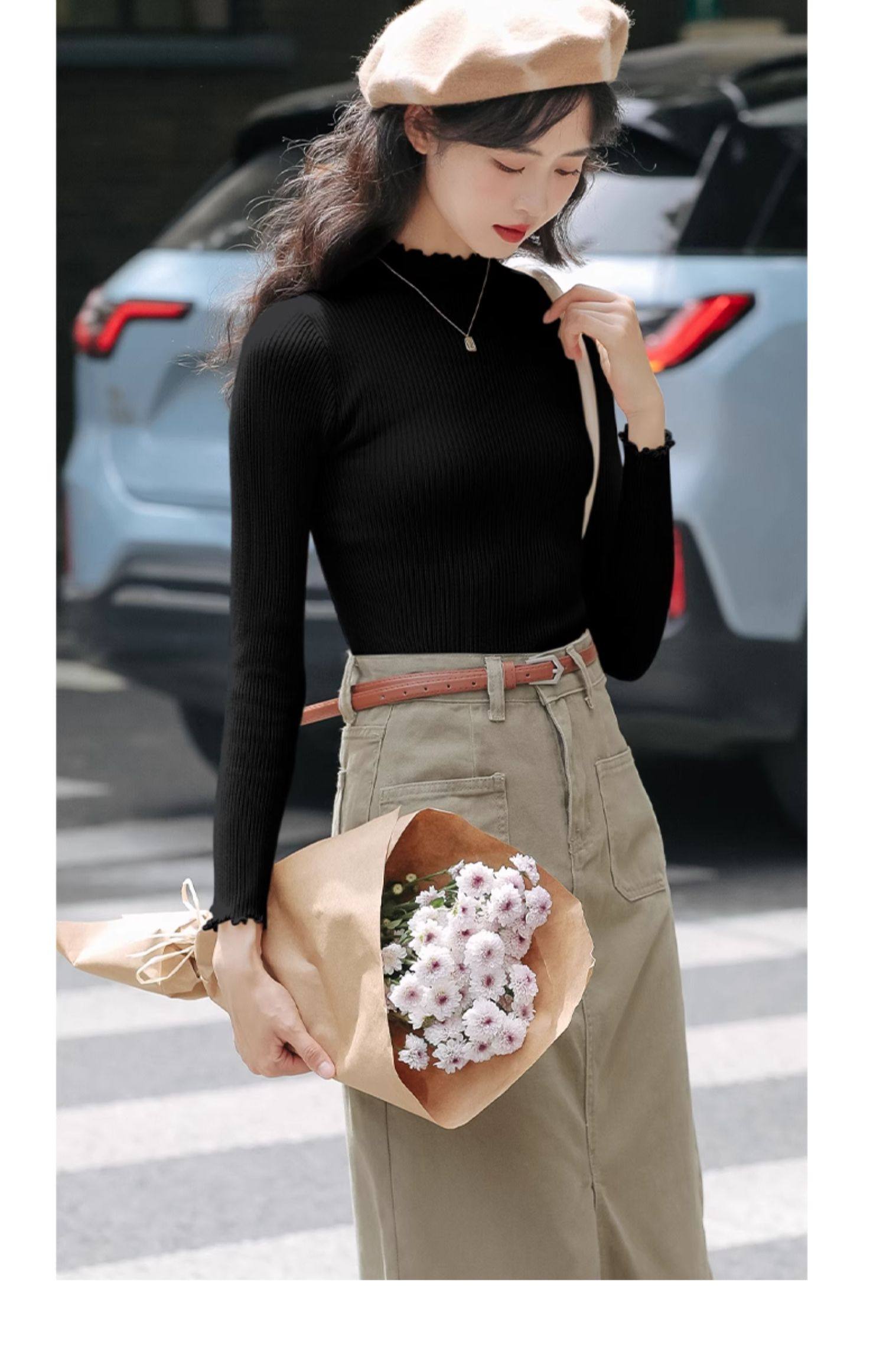 慕兔半高領內搭針織打底衫女2025秋季新款洋氣木耳邊修身長袖上衣