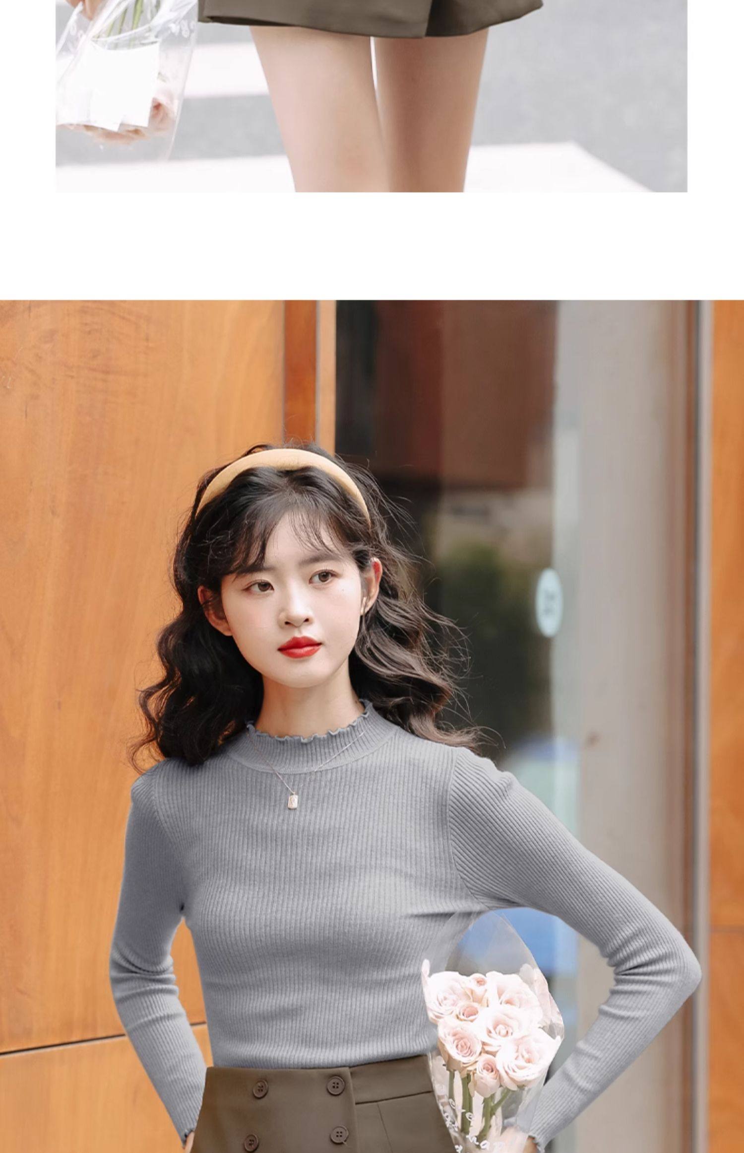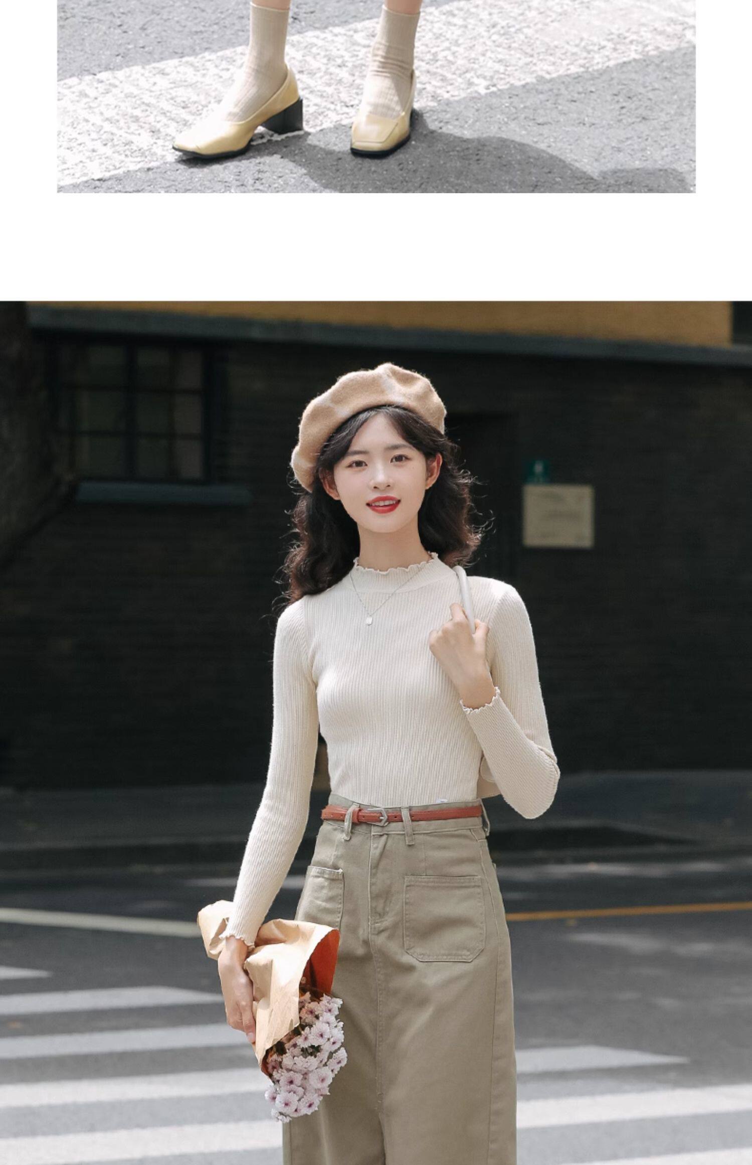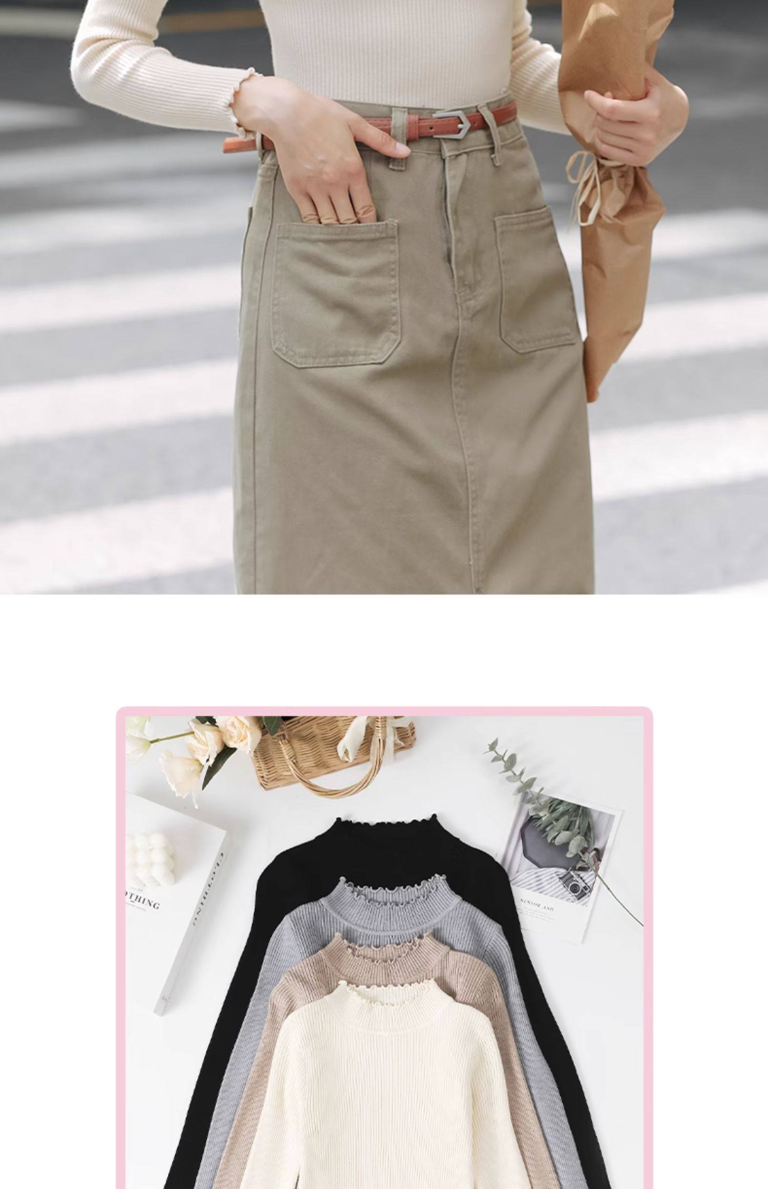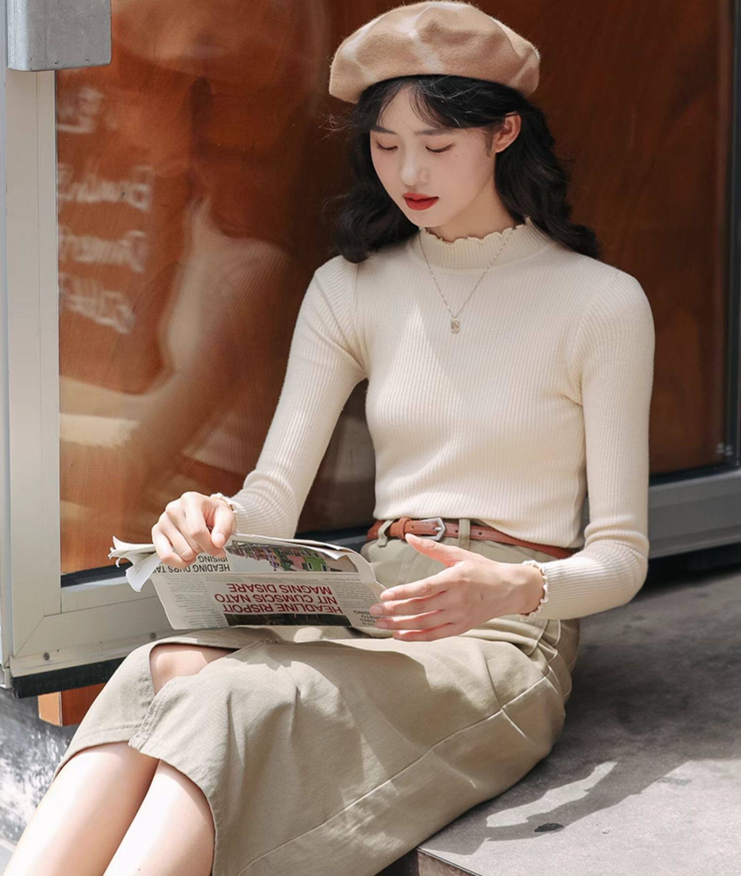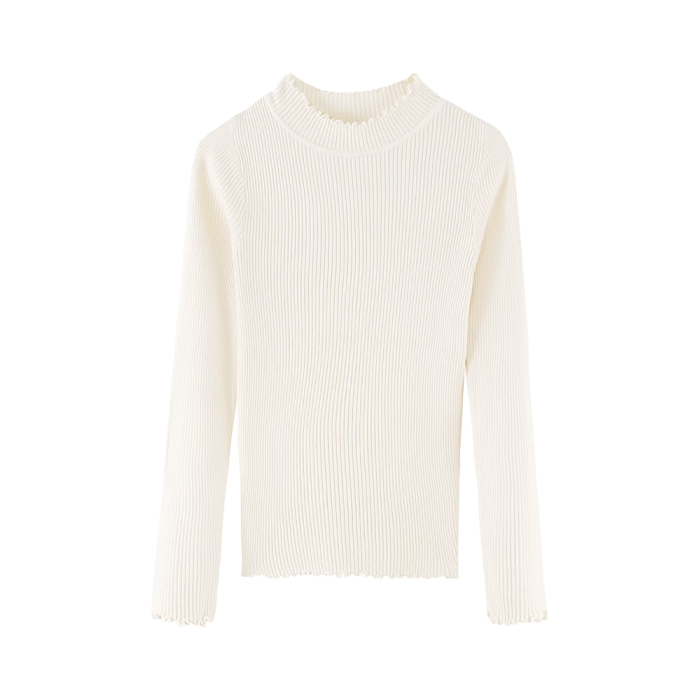 慕兔半高領內搭針織打底衫女2025秋季新款洋氣木耳邊修身長袖上衣