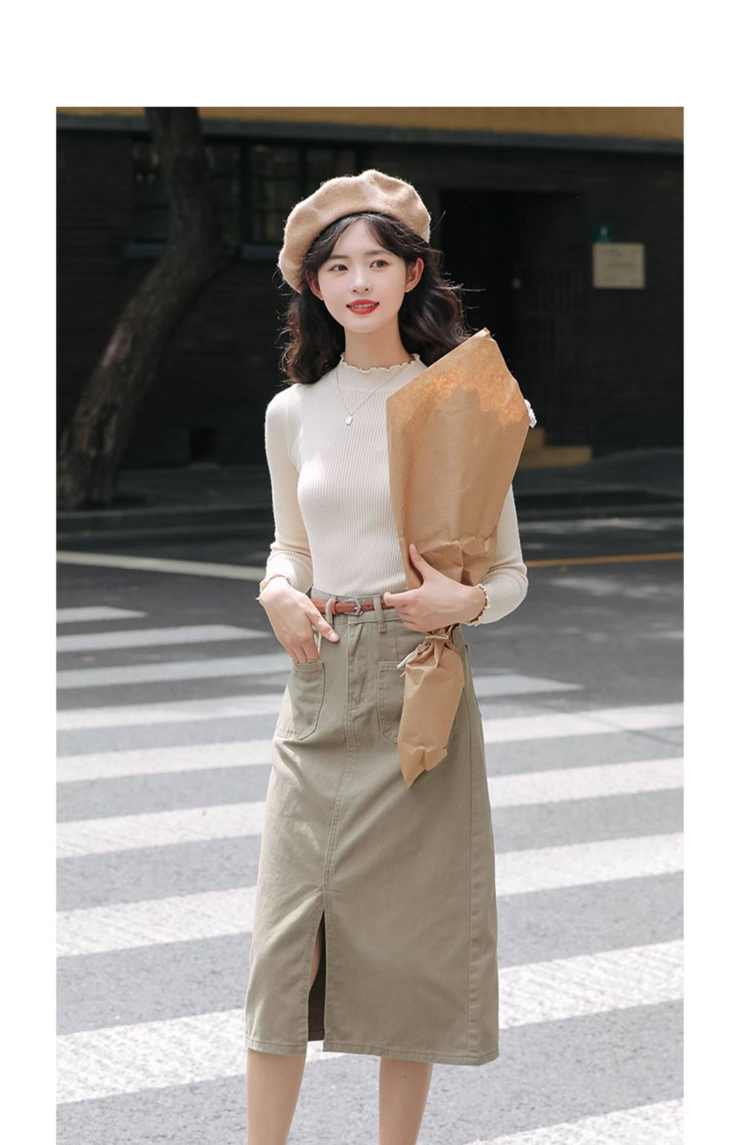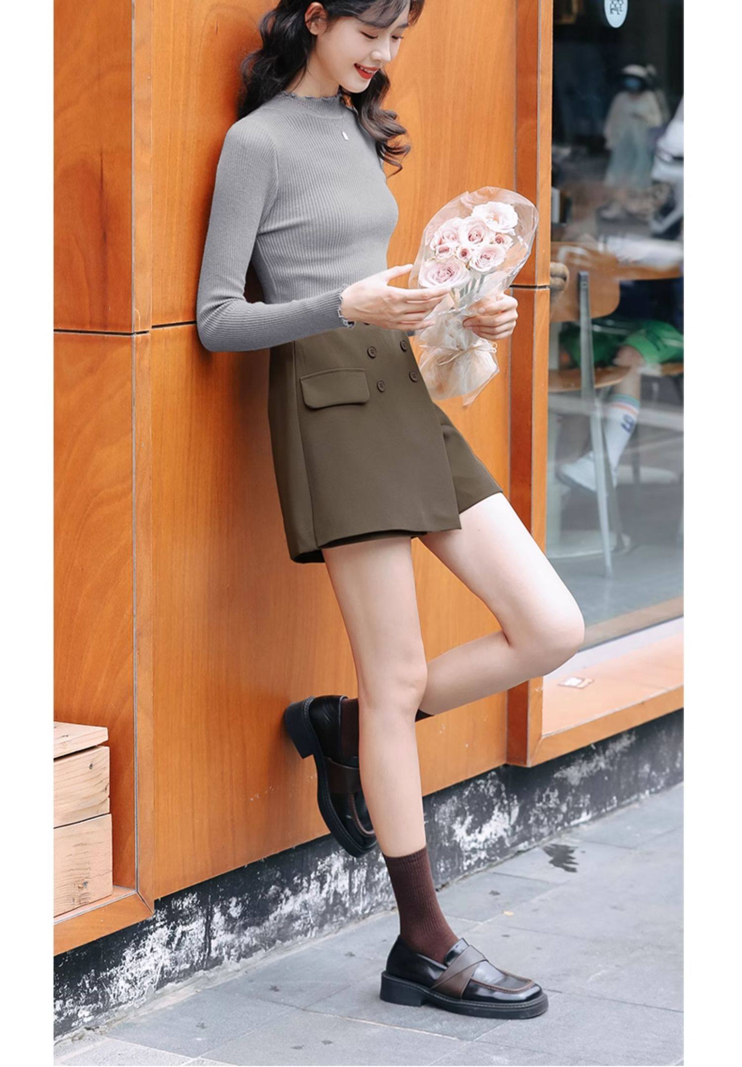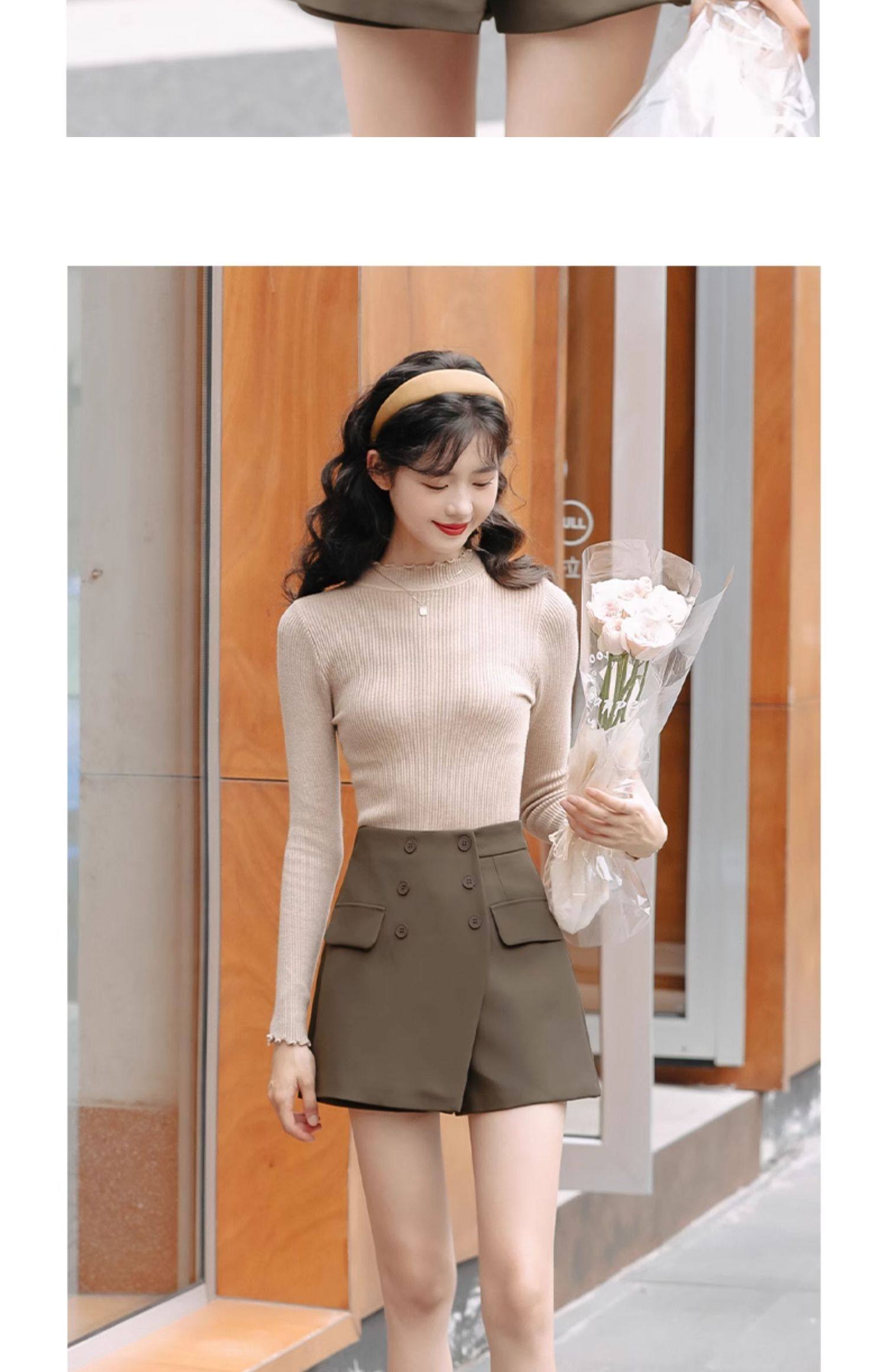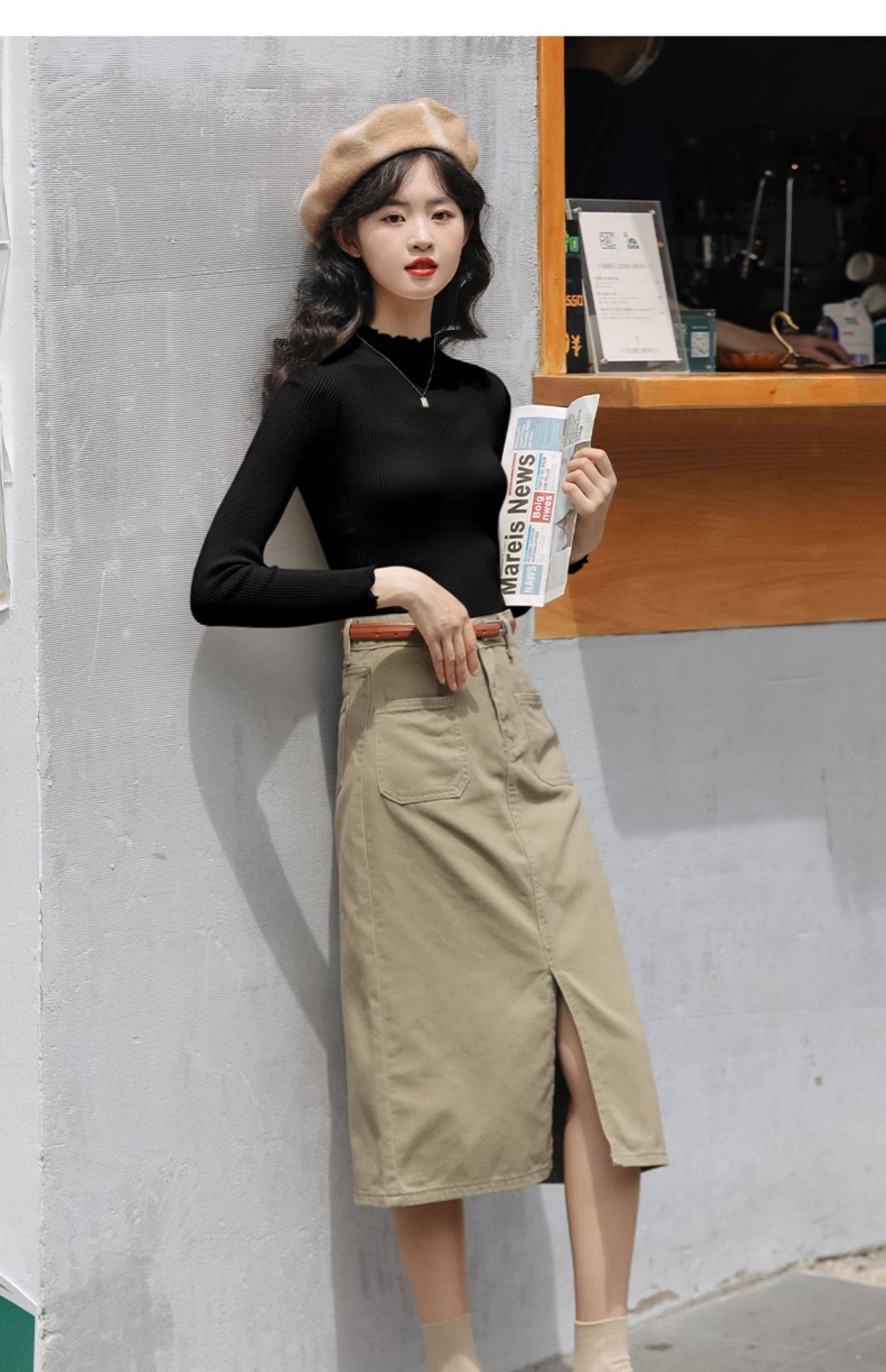 慕兔半高領內搭針織打底衫女2025秋季新款洋氣木耳邊修身長袖上衣