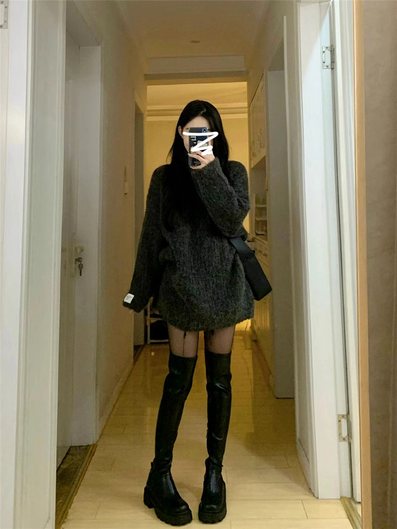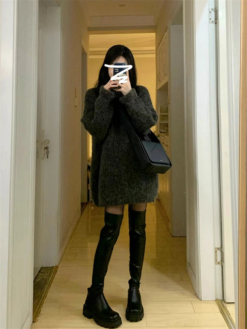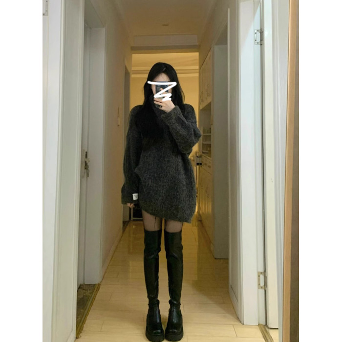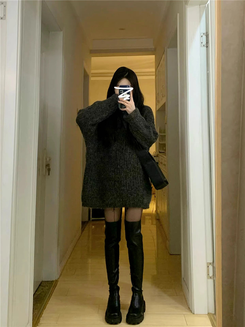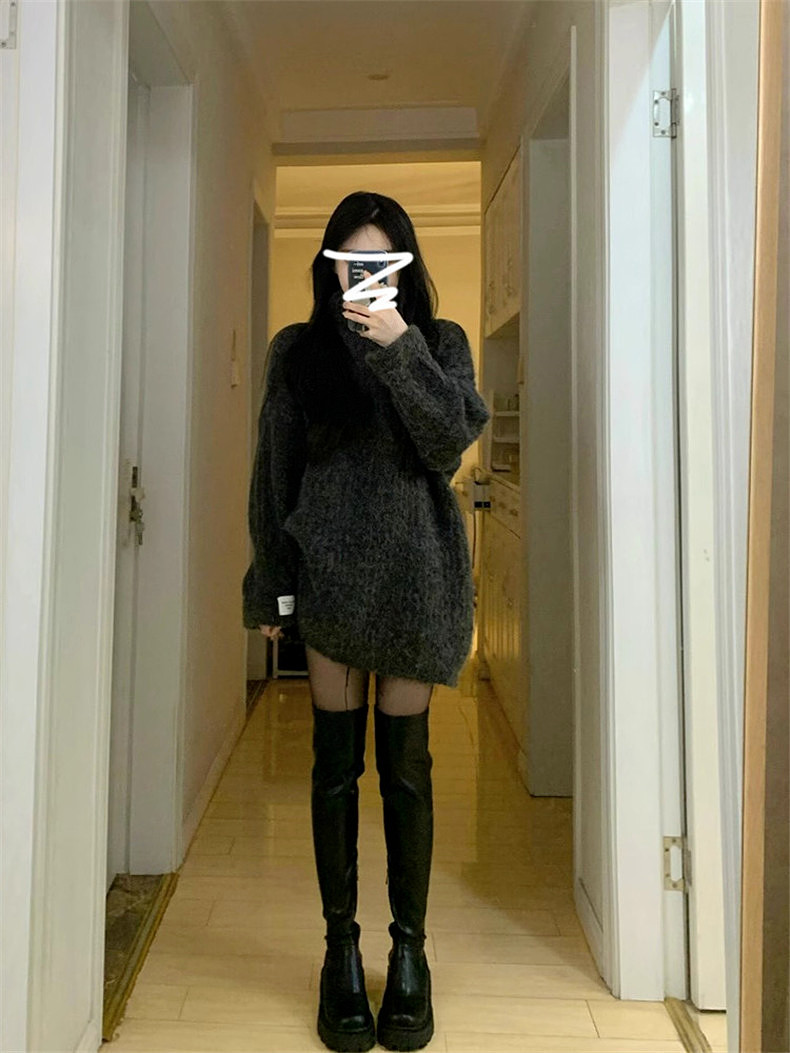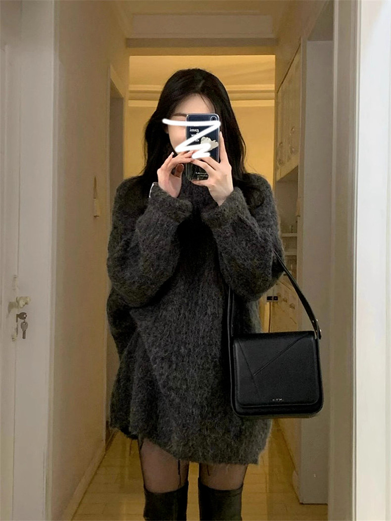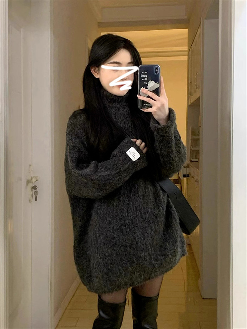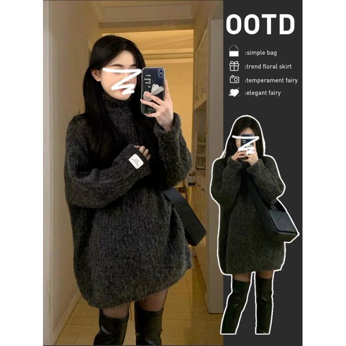 韓系高領毛衣女秋冬2025新款爆款加厚軟糯慵懶寬松休閒中長款上衣