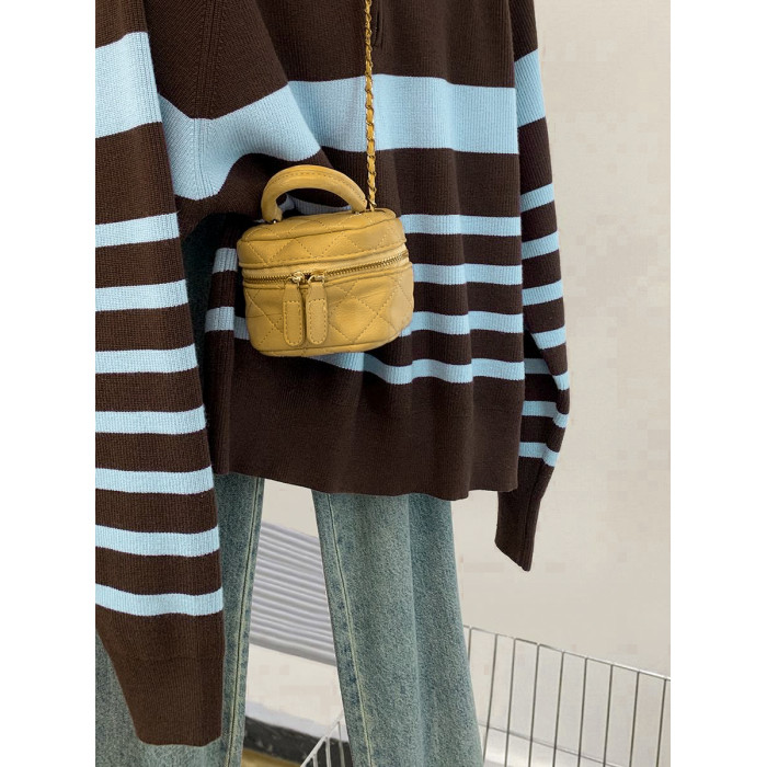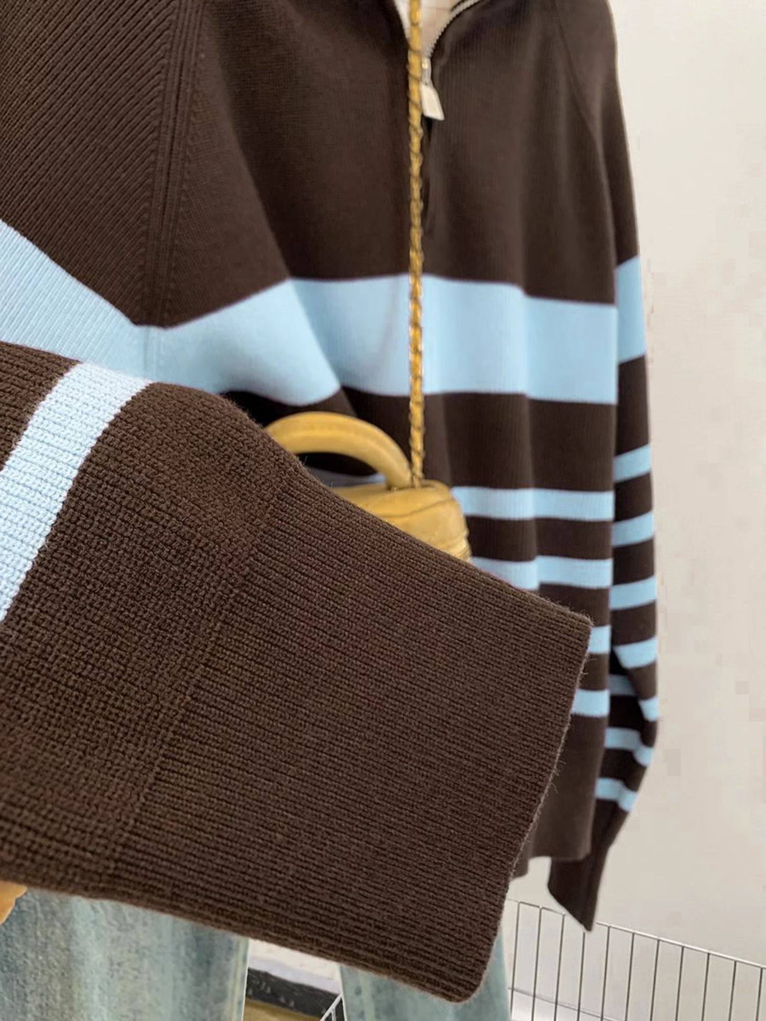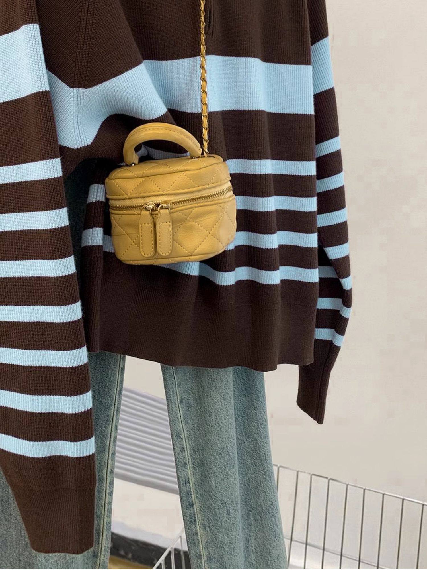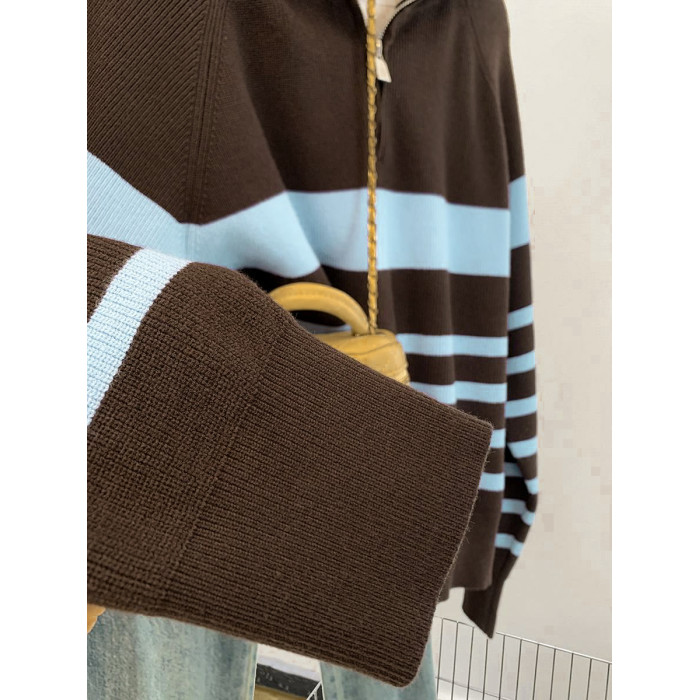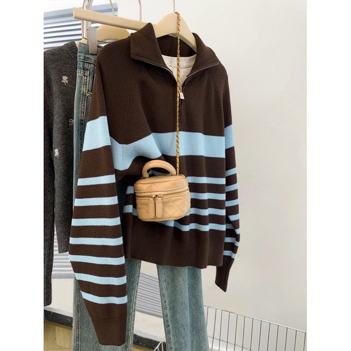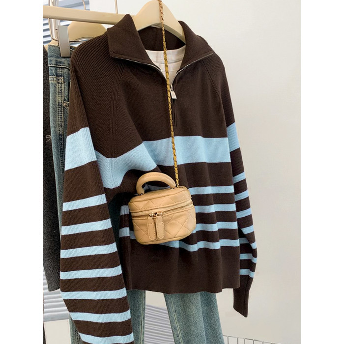 條紋半拉鍊翻領套頭毛衣外套女秋冬2025新款慵懶風外穿羊毛針織衫