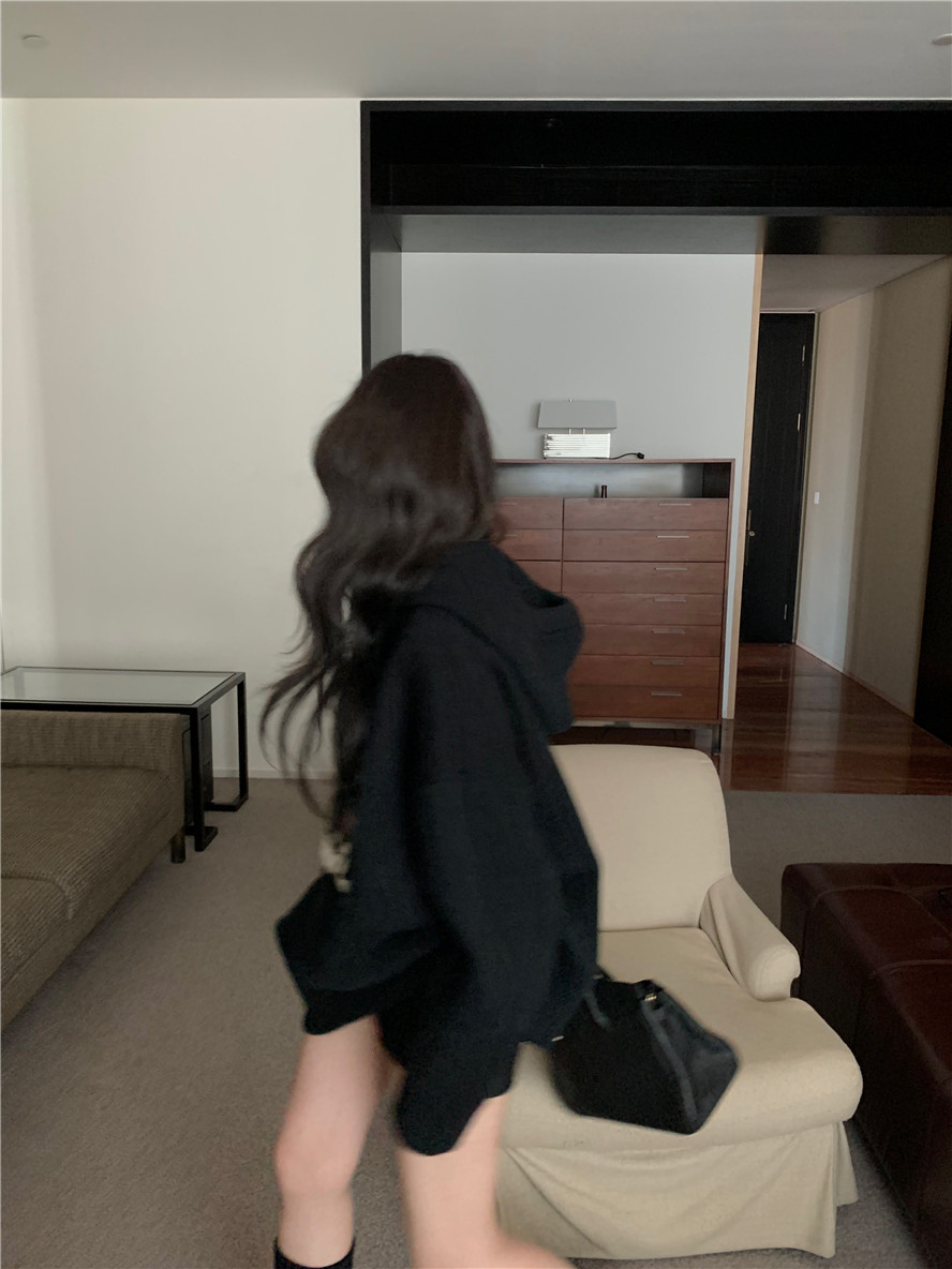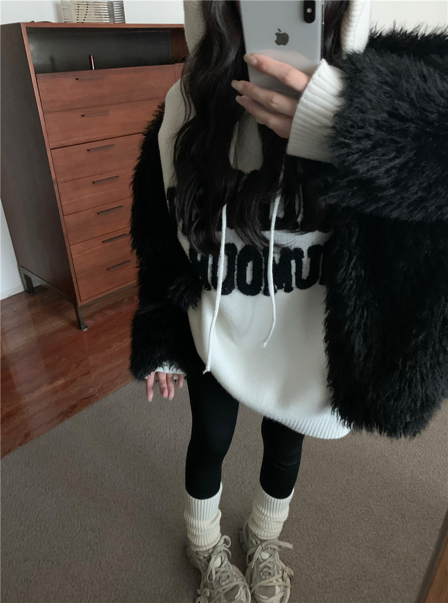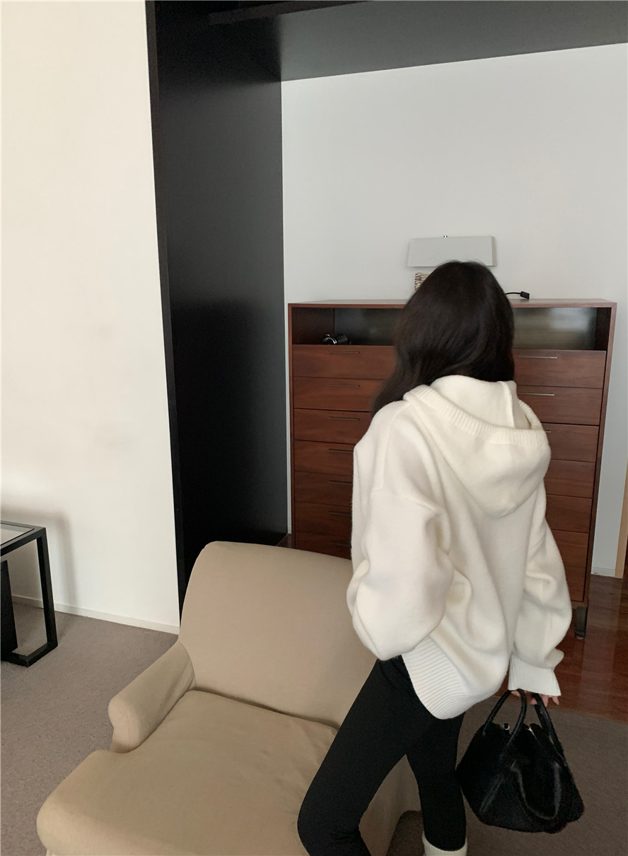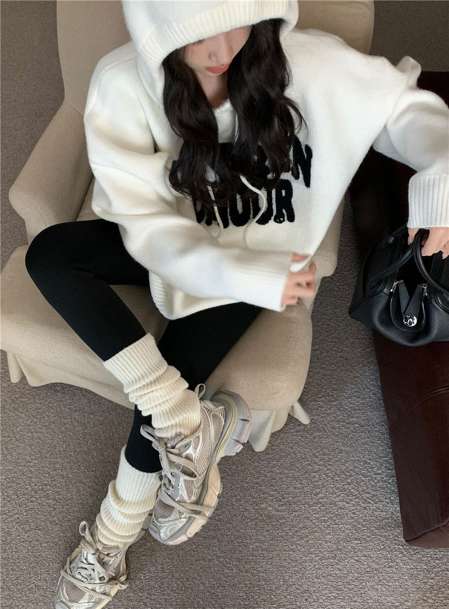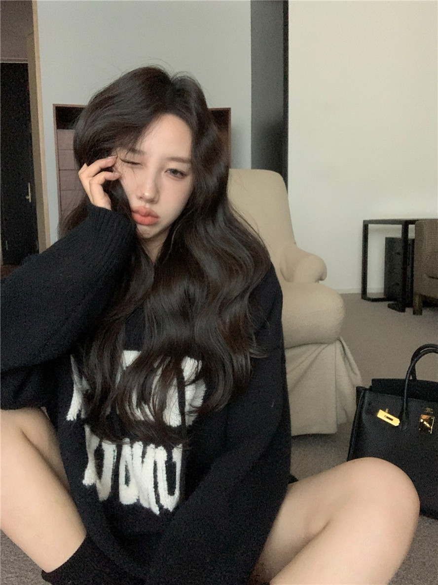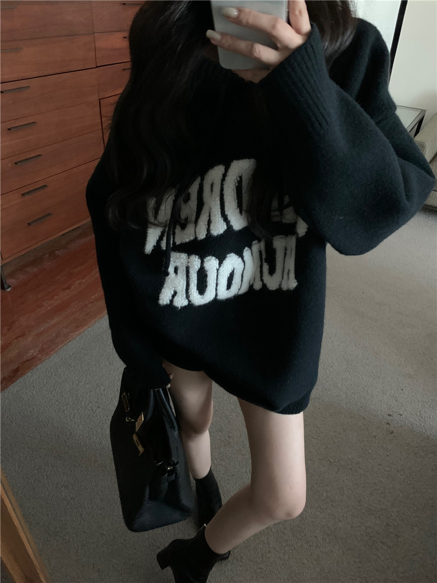 字母刺綉復古紅色連帽毛衣女春秋冬加厚慵懶風寬松安可拉針織衣服