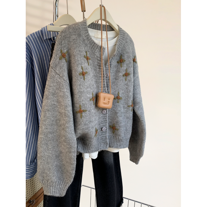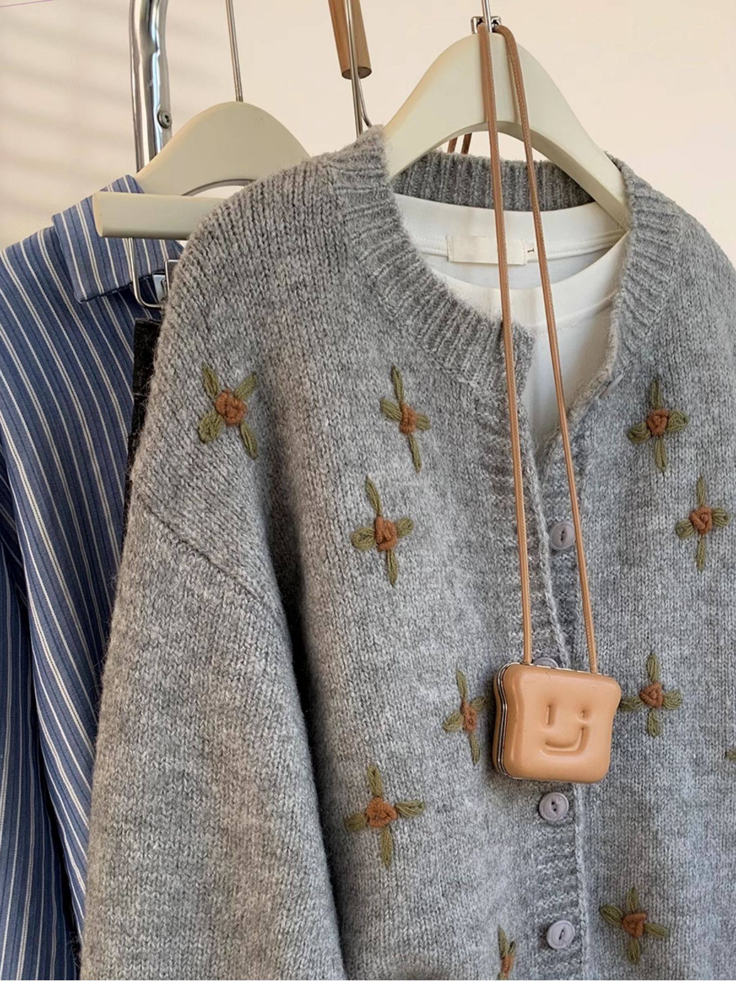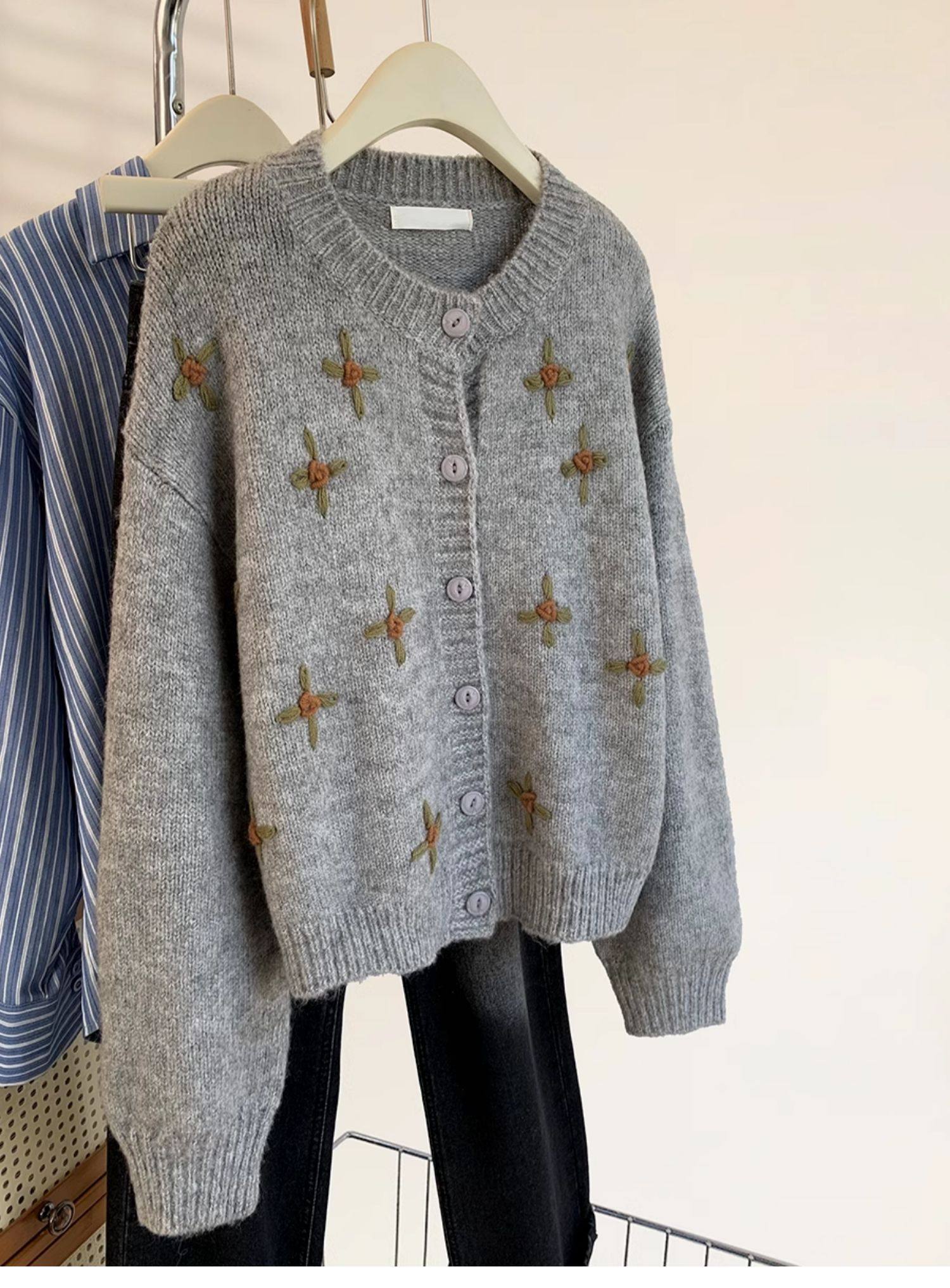 聖誕穿搭灰色毛衣外套2026秋冬季新款元旦跨年寬松針織開衫上衣女