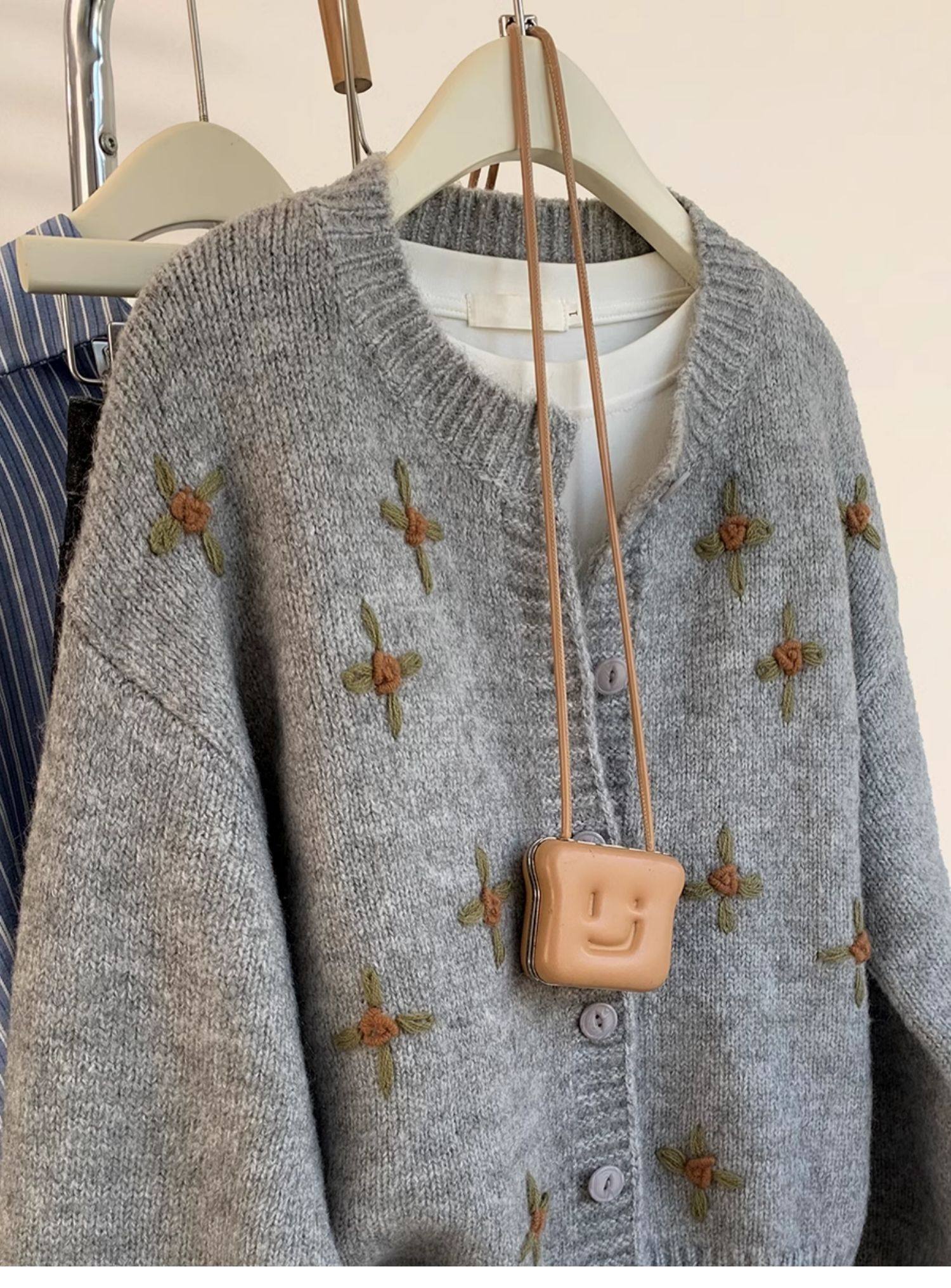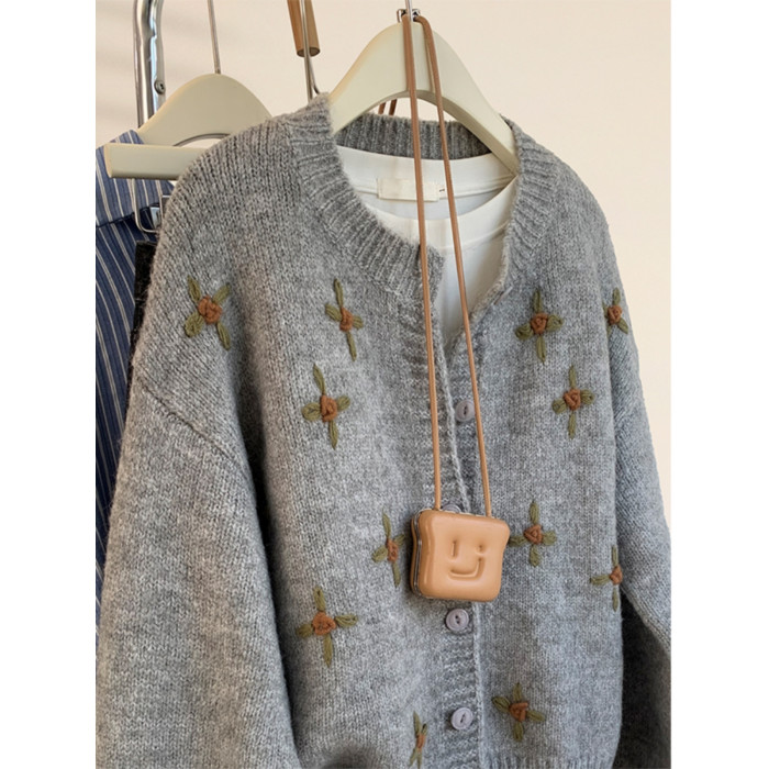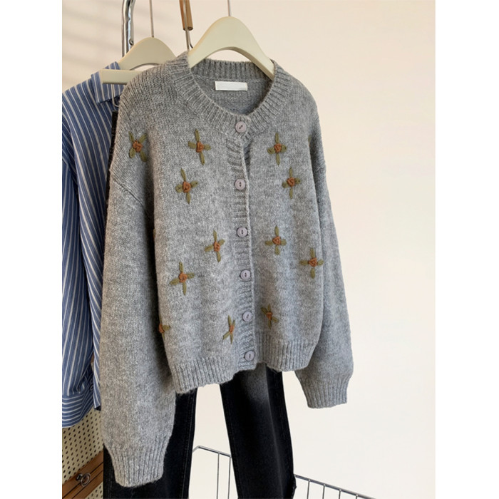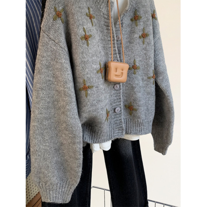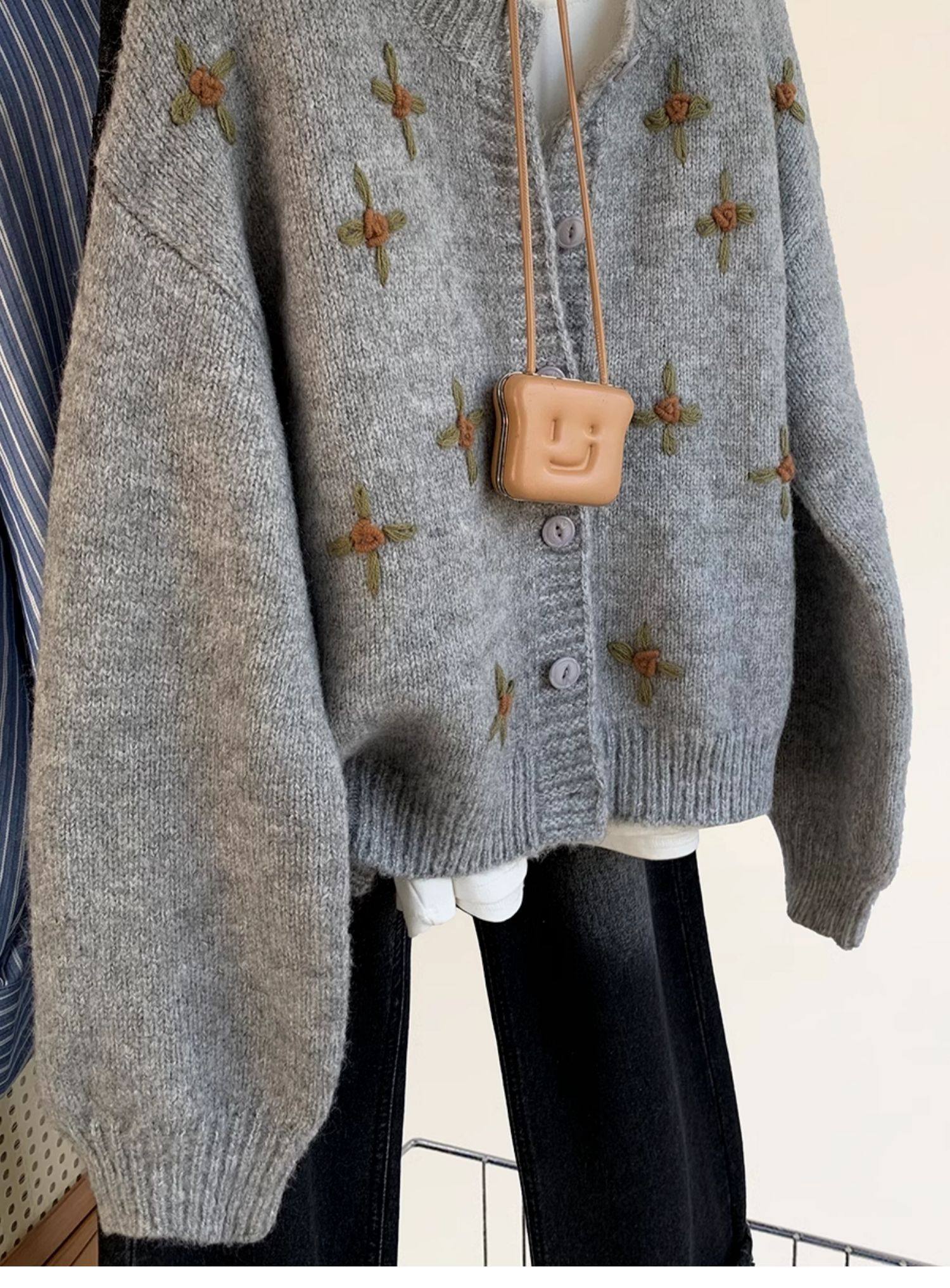 聖誕穿搭灰色毛衣外套2026秋冬季新款元旦跨年寬松針織開衫上衣女