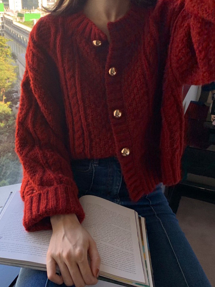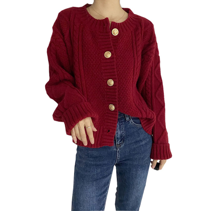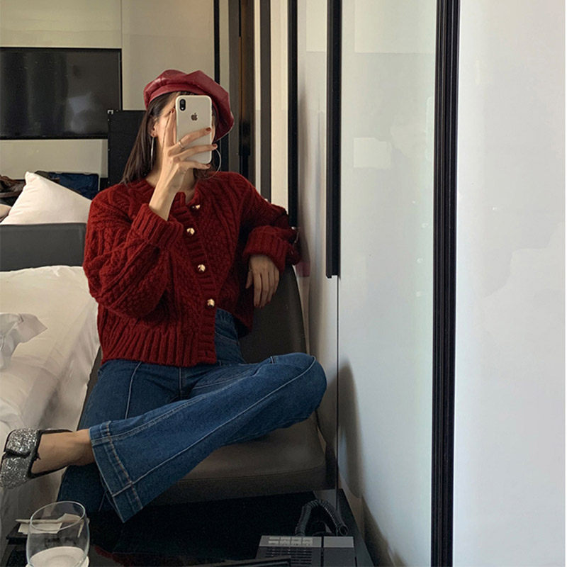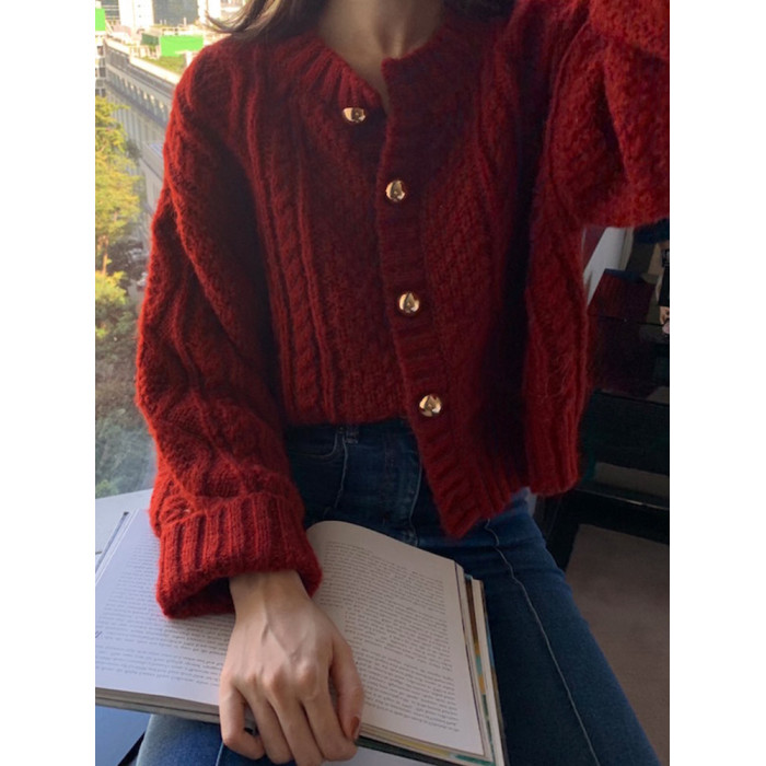 聖誕韓系慵懶風復古紅色毛衣外套女秋冬2025新款新年針織開衫上衣