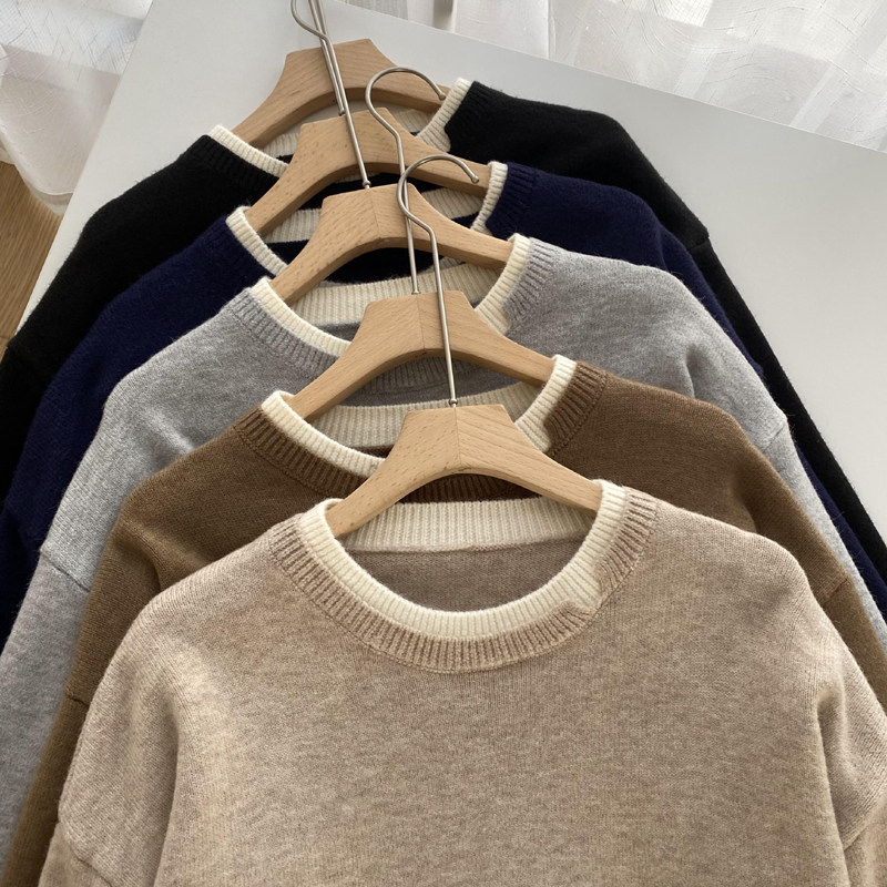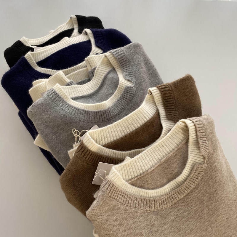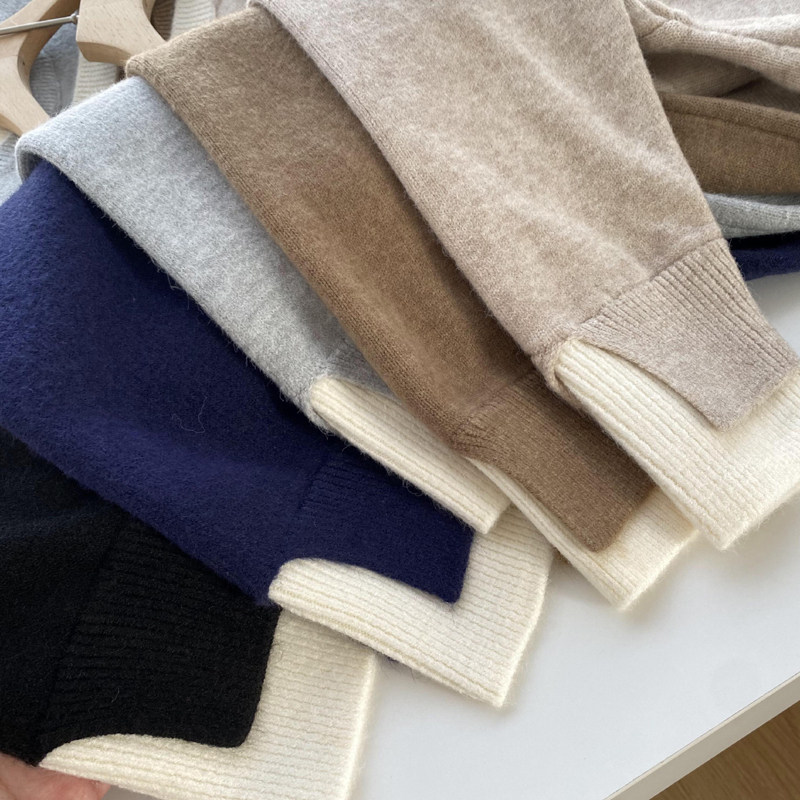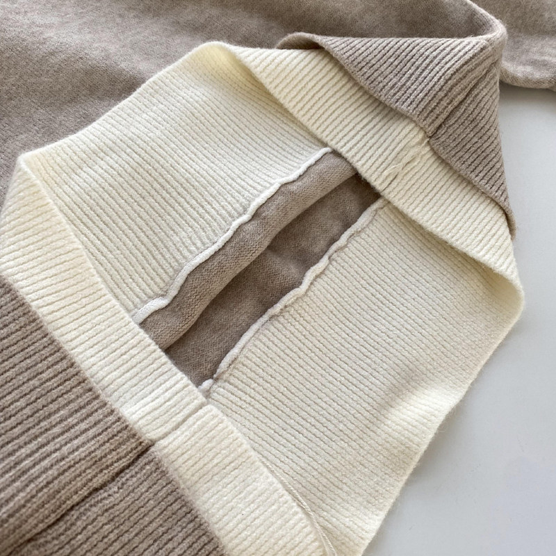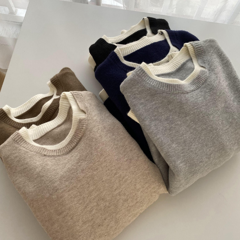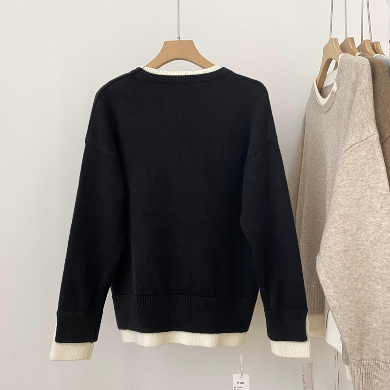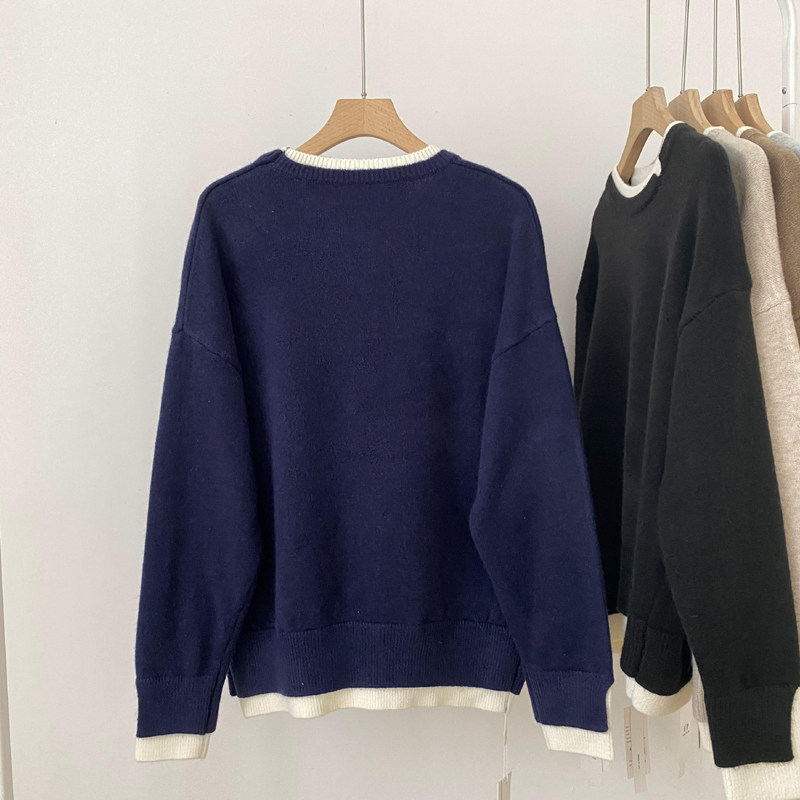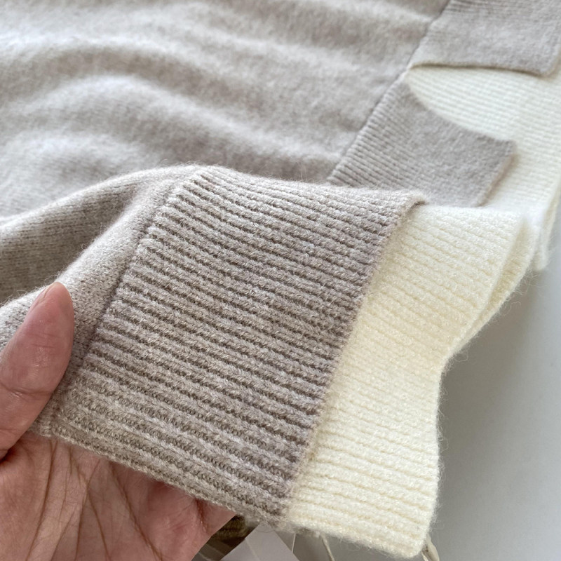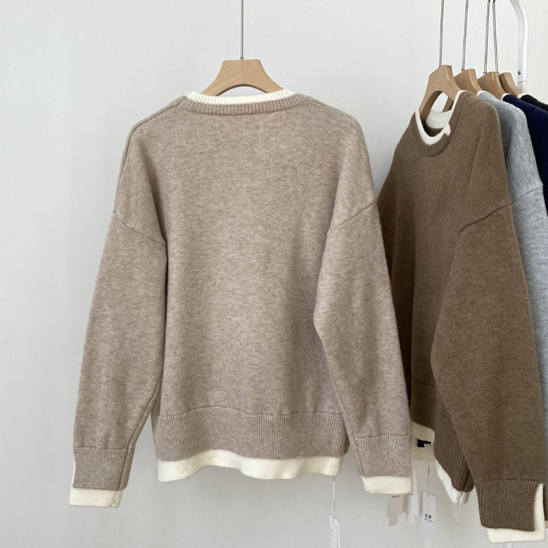 圓領針織衫外套女秋冬季新款寬松顯瘦假兩件開叉拼接套頭減齡毛衣