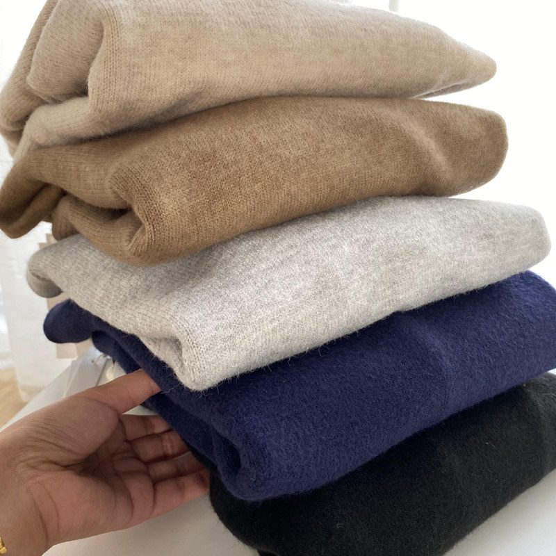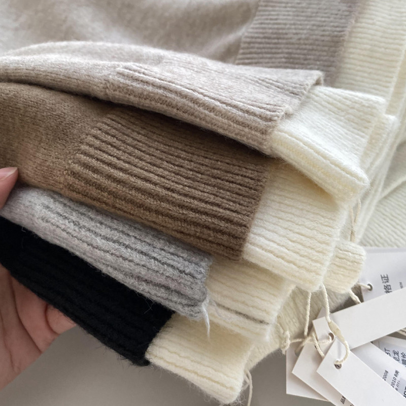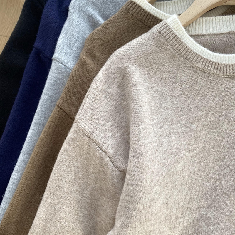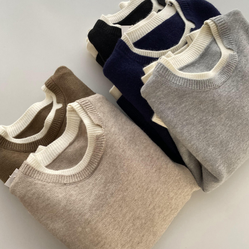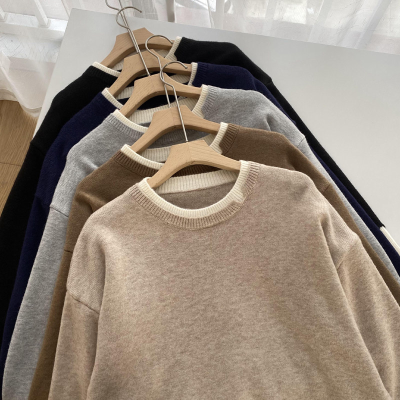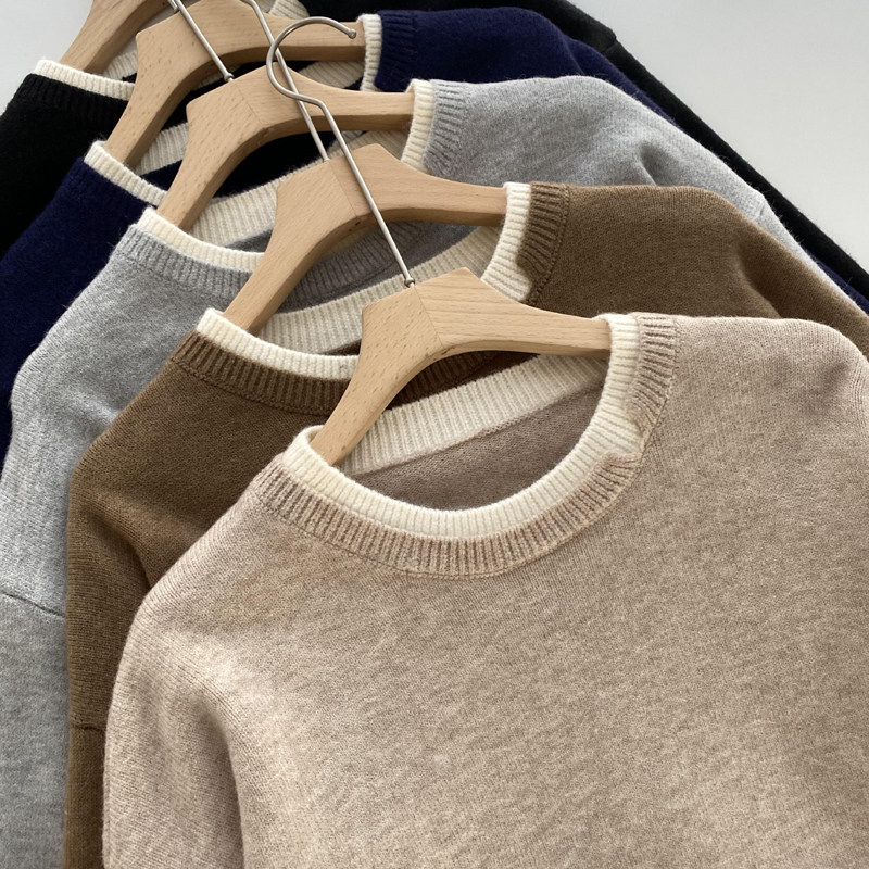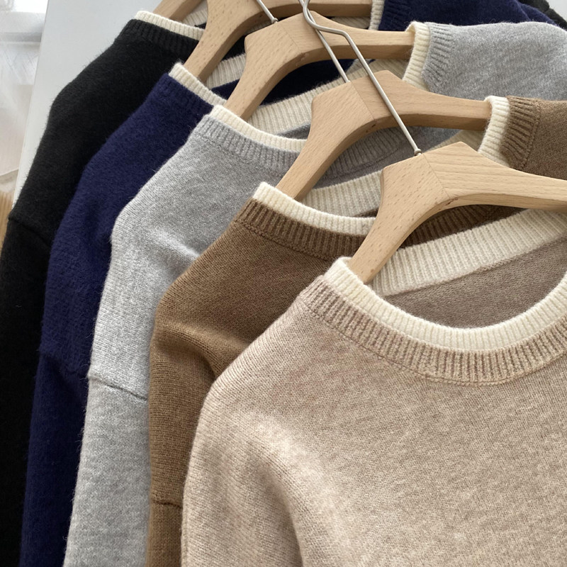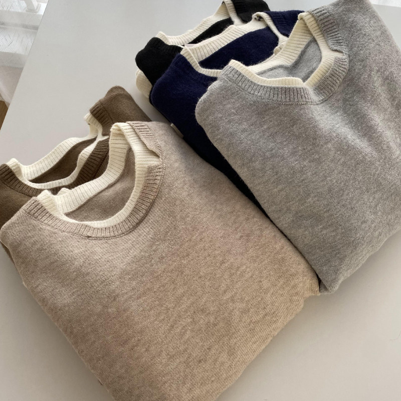 圓領針織衫外套女秋冬季新款寬松顯瘦假兩件開叉拼接套頭減齡毛衣