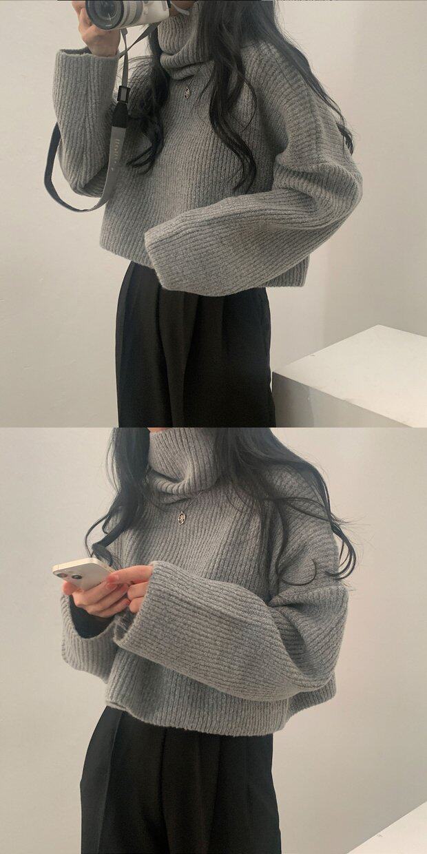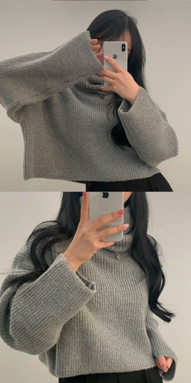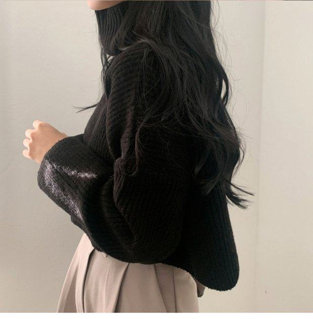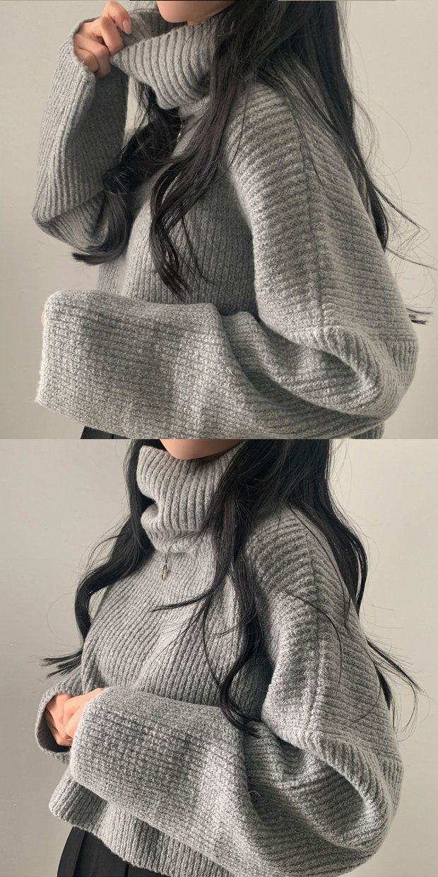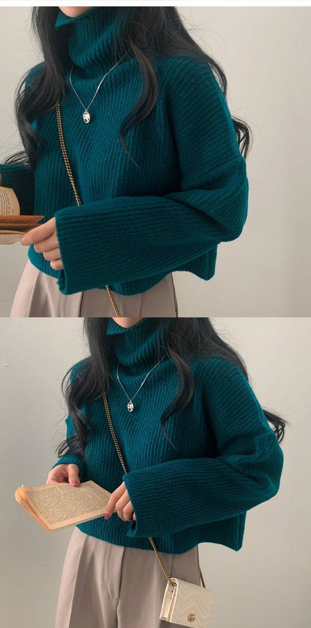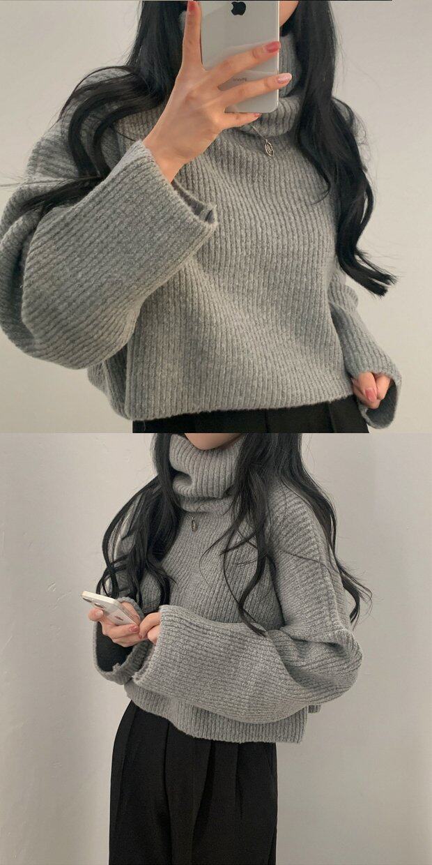 韓國chic秋冬加厚高領毛衣女慵懶風純色百搭寬松長袖短款針織衫潮