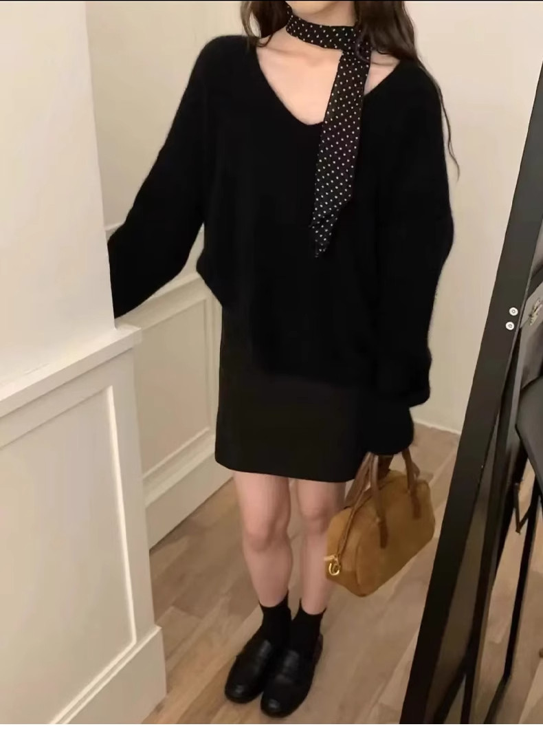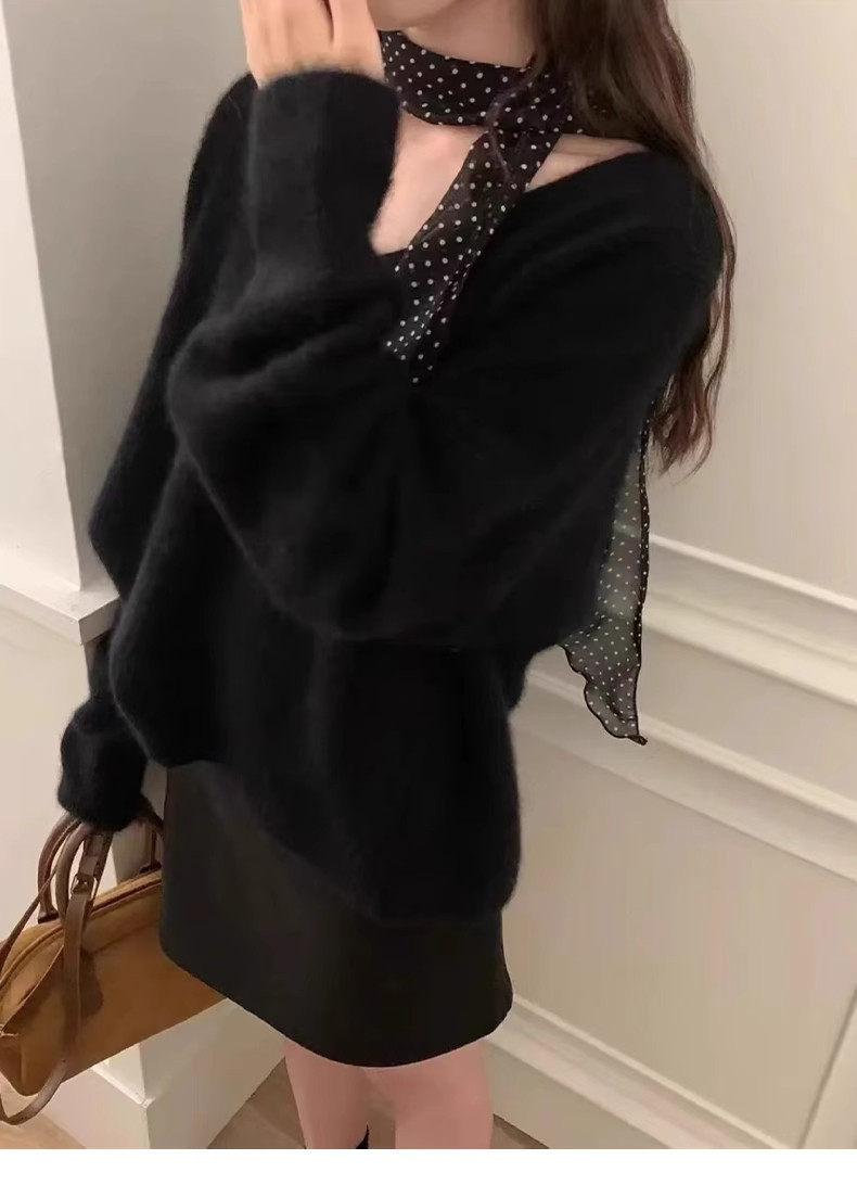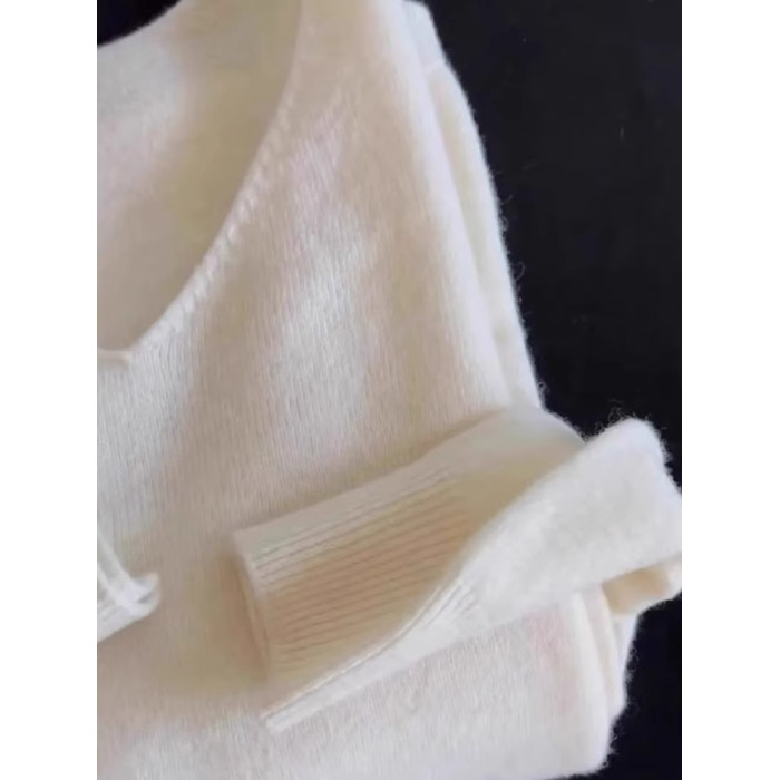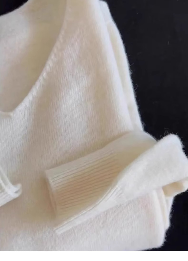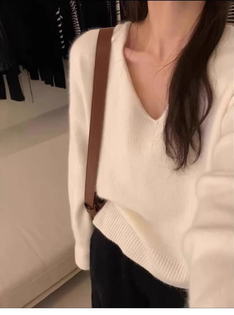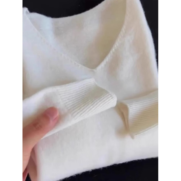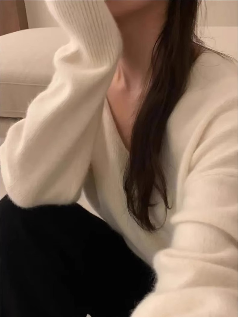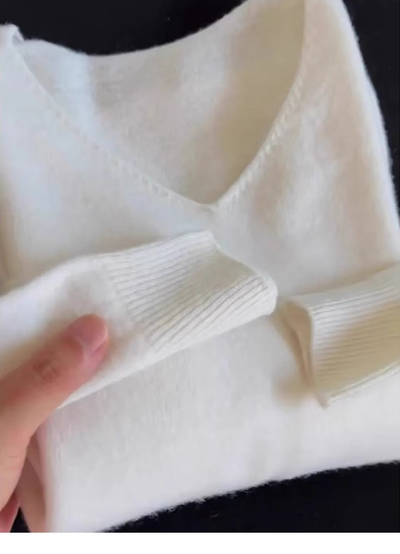 白色軟糯浣熊絨寬松v領百搭針織衫毛衣女打底2024秋冬季內搭