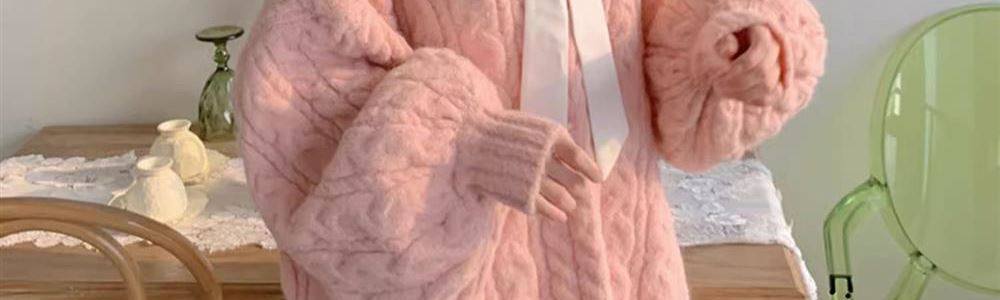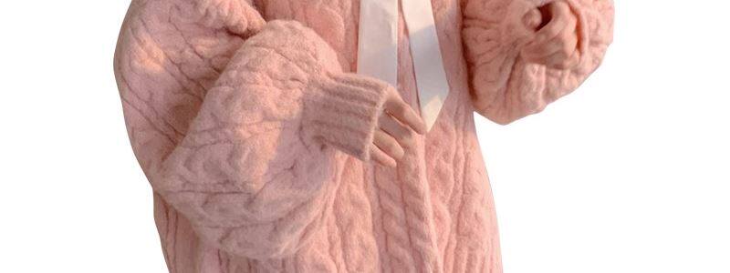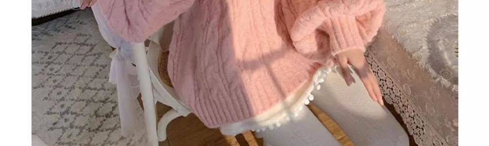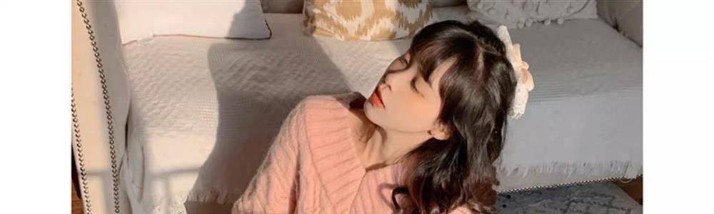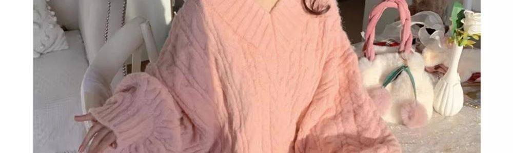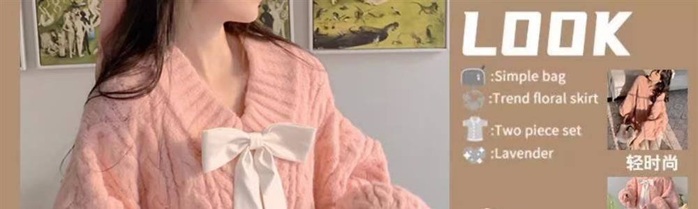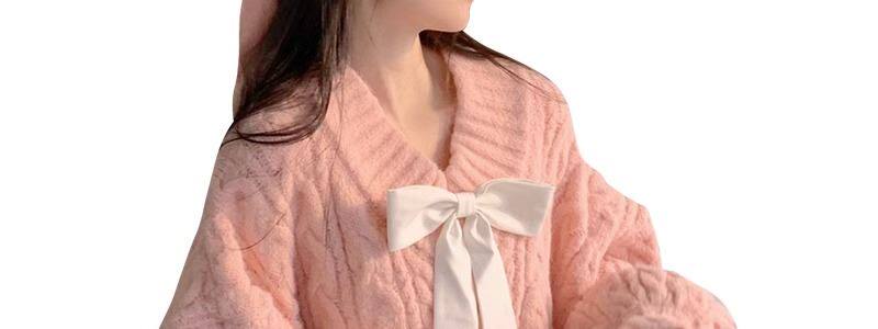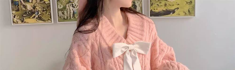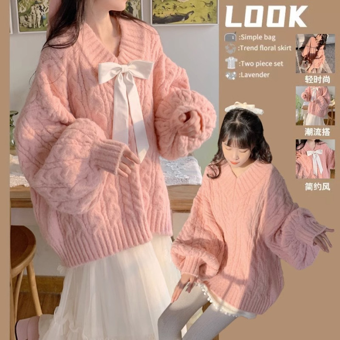 今年流行軟糯寬鬆慵嬾風粉色v領蝴蝶結毛衣女秋冬季高級感針織衫
