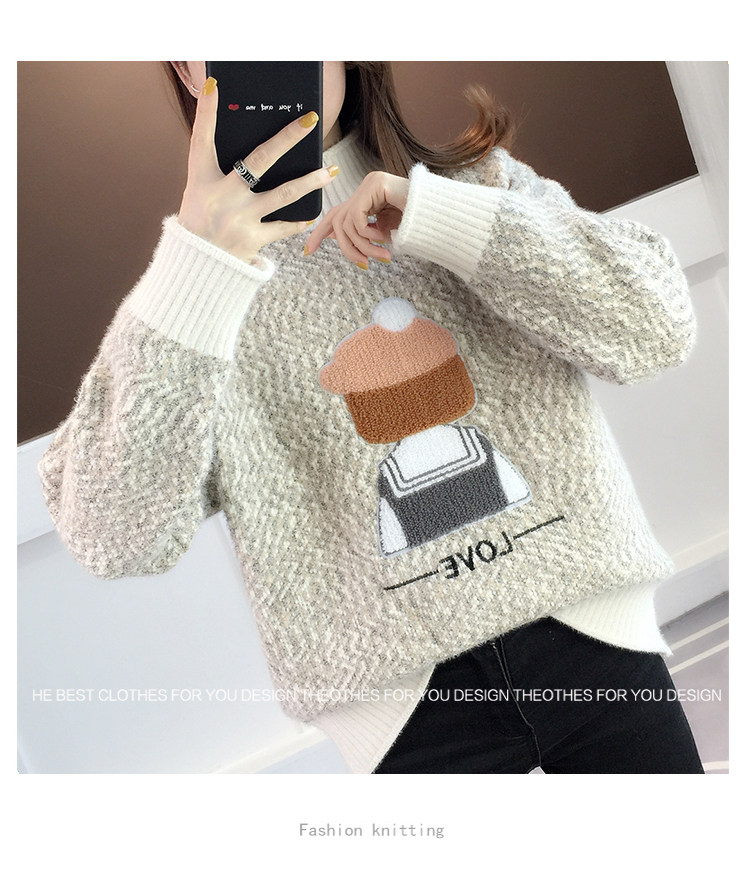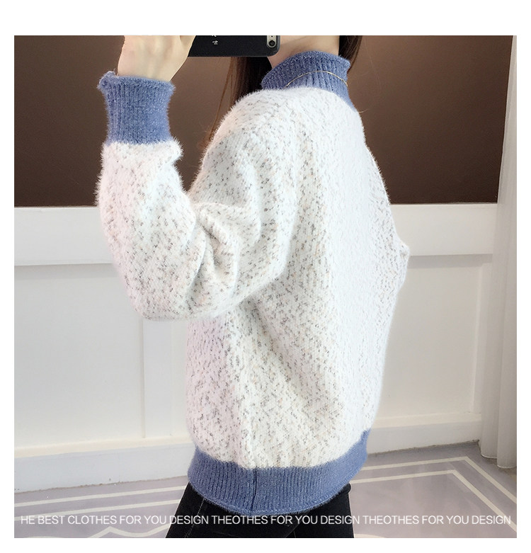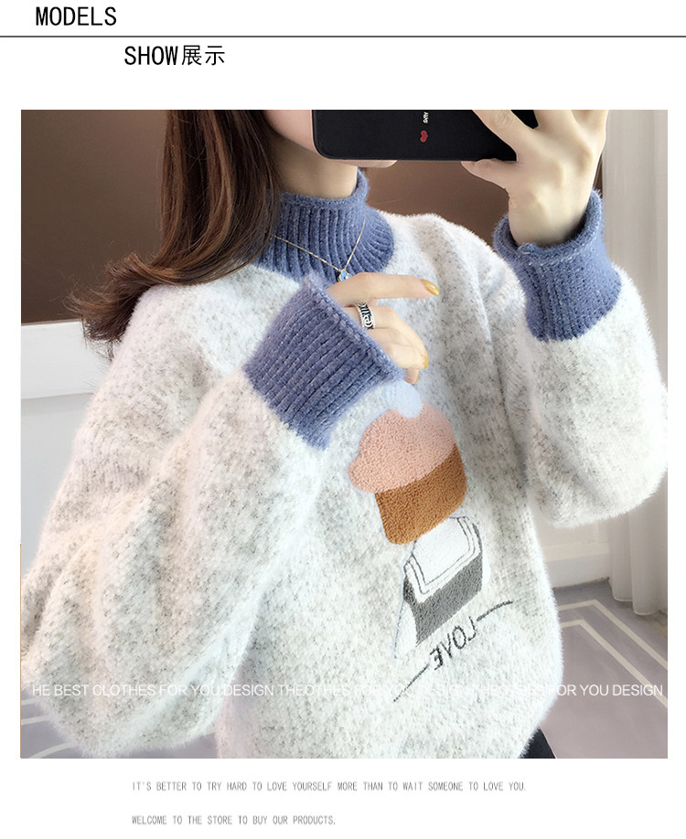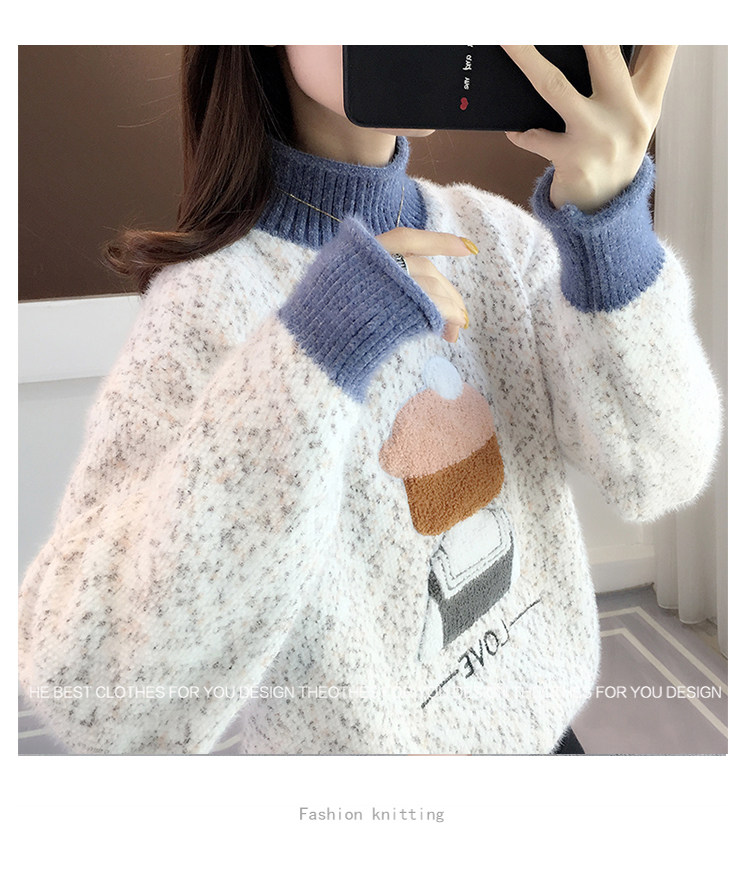 半高領水貂絨毛衣女2025冬季新款加絨寬松套頭上衣保暖學生外穿厚
