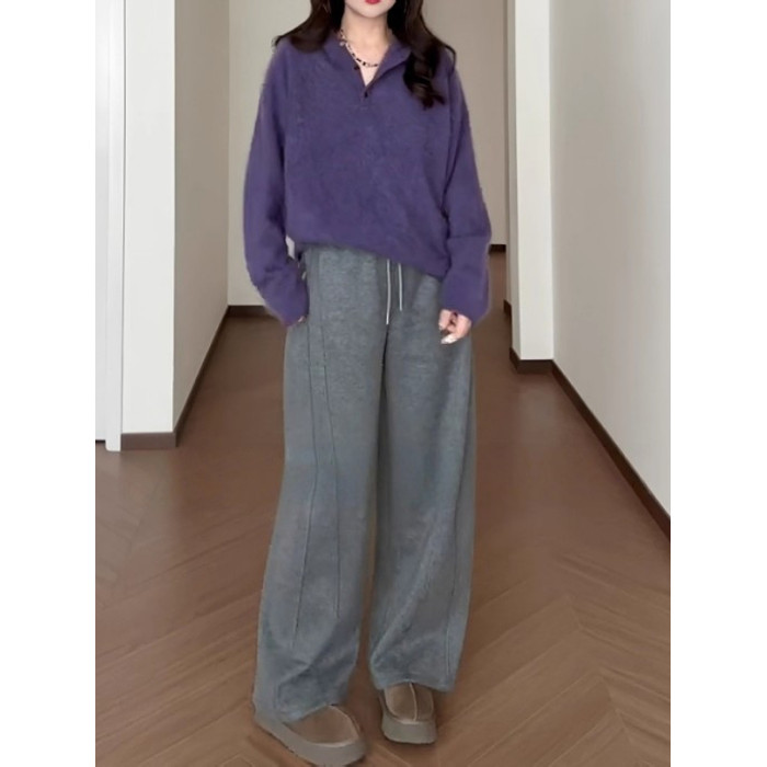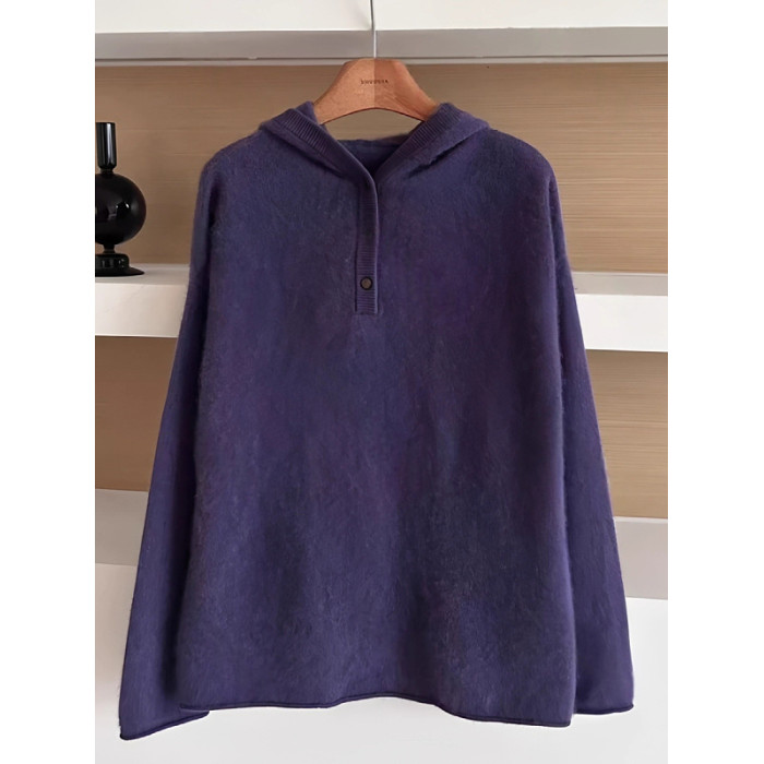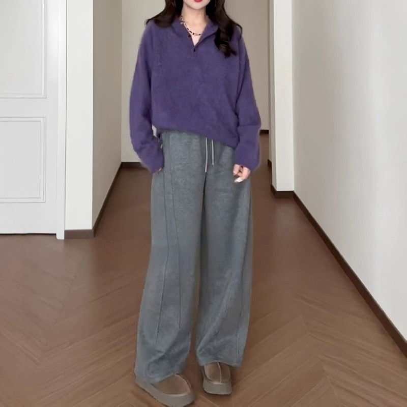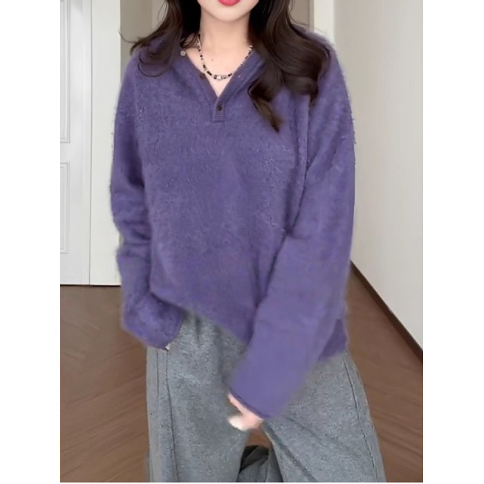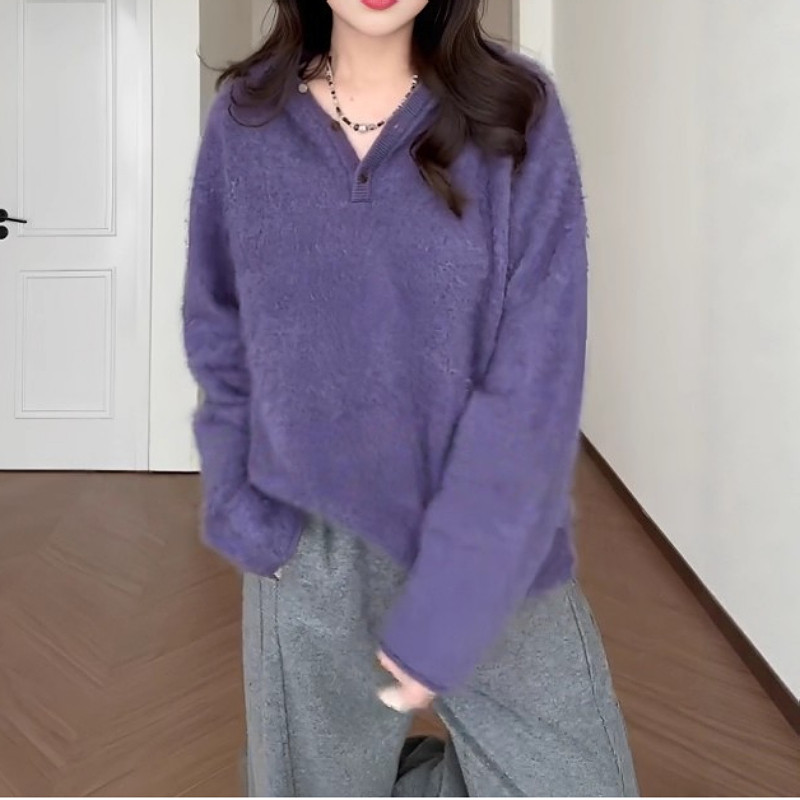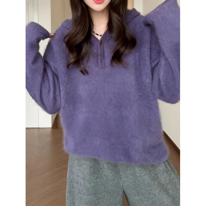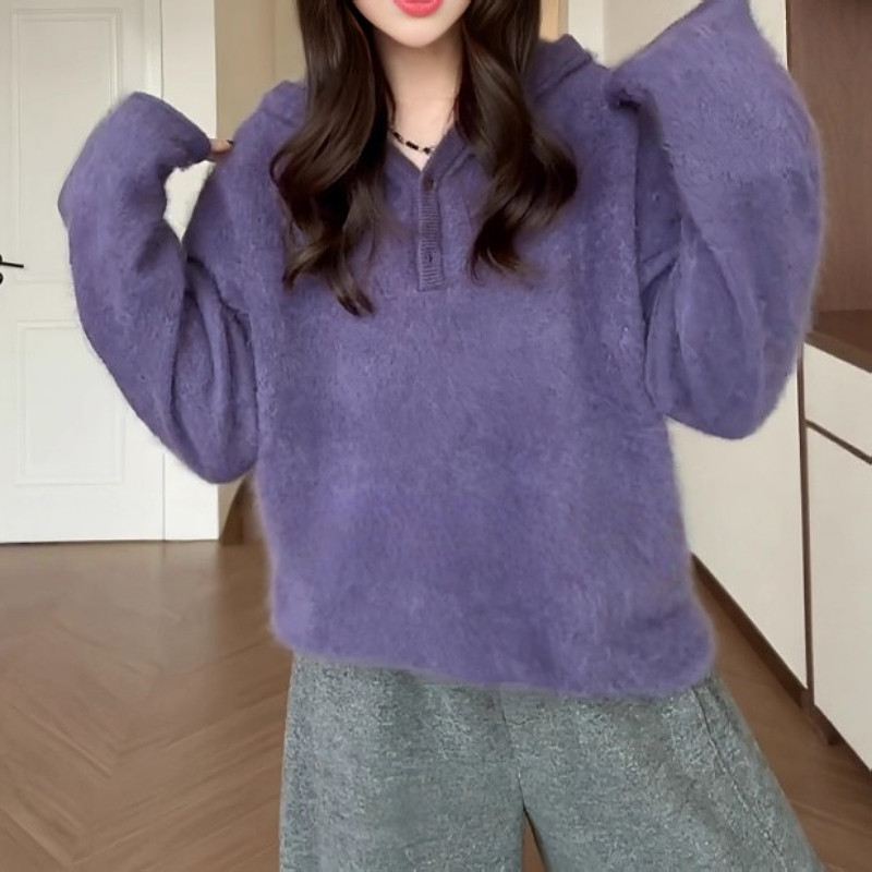 大碼女裝超好看紫色連帽毛衣內搭針織衫秋冬胖mm顯瘦打底長袖上衣