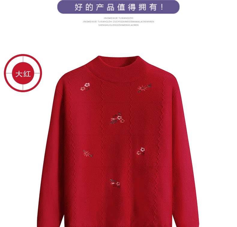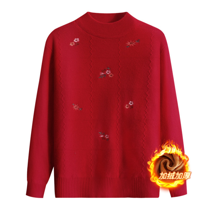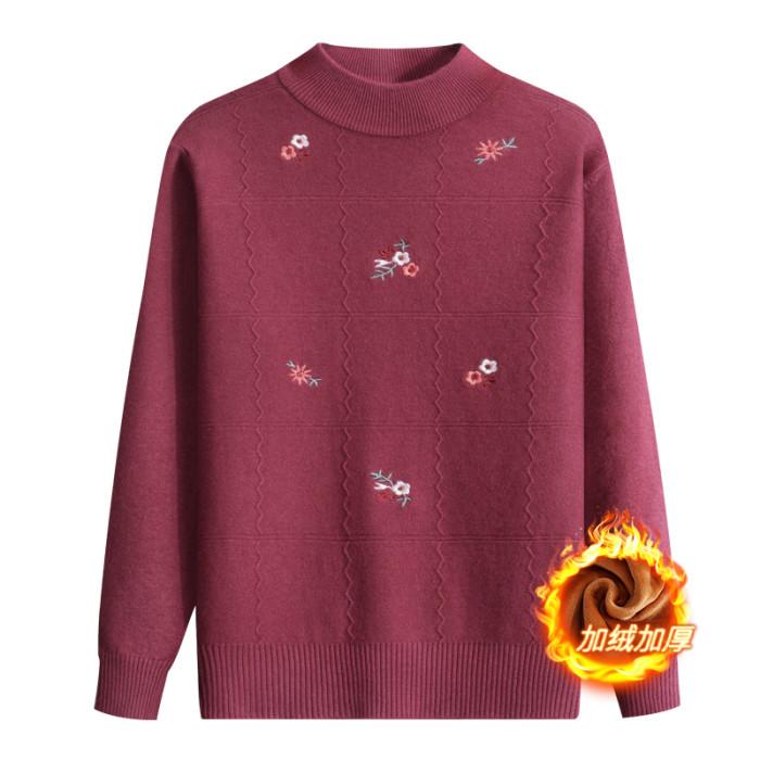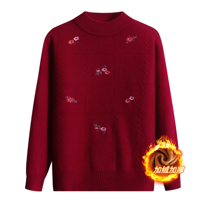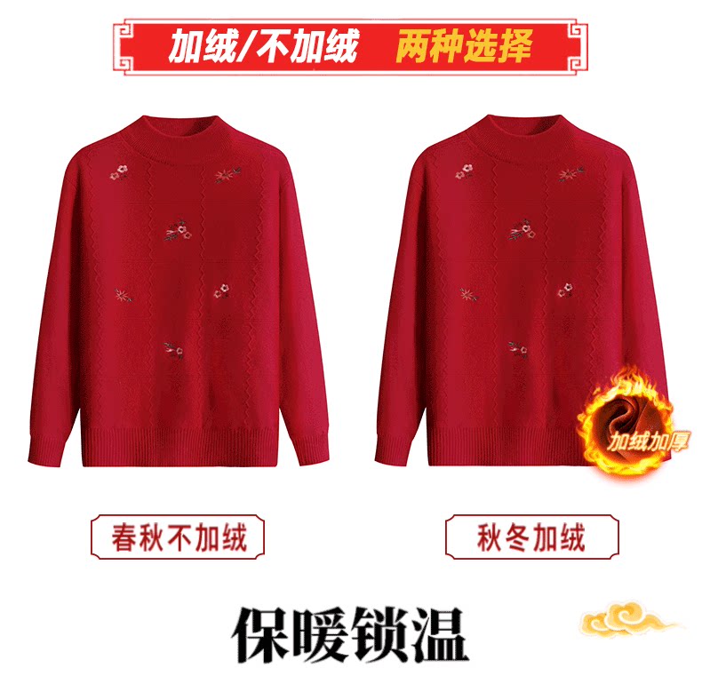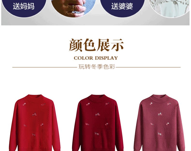 中老年人秋冬嬭嬭毛衣女加絨加厚媽媽裝套頭衫打底衫保暖老人衣服