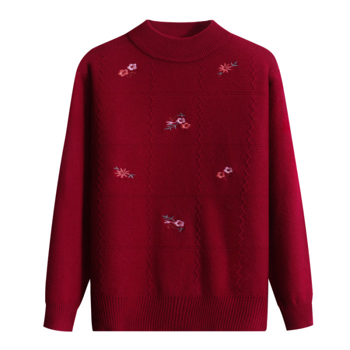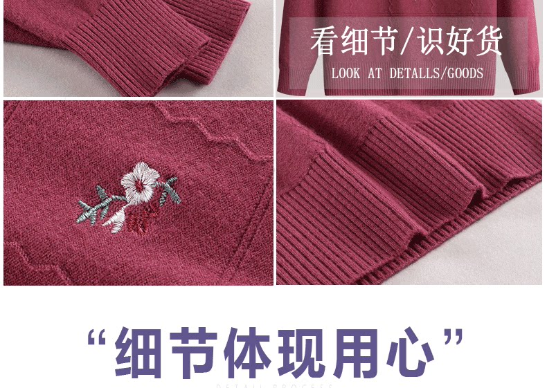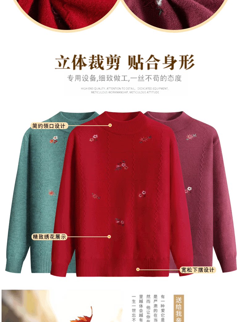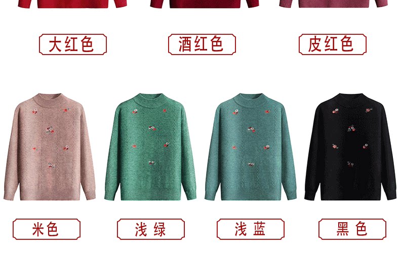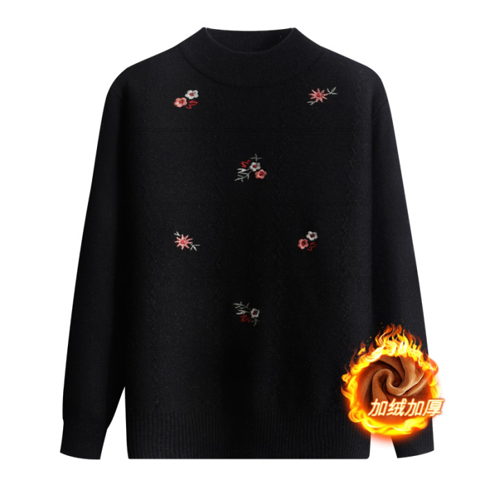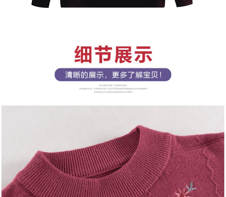 中老年人秋冬嬭嬭毛衣女加絨加厚媽媽裝套頭衫打底衫保暖老人衣服