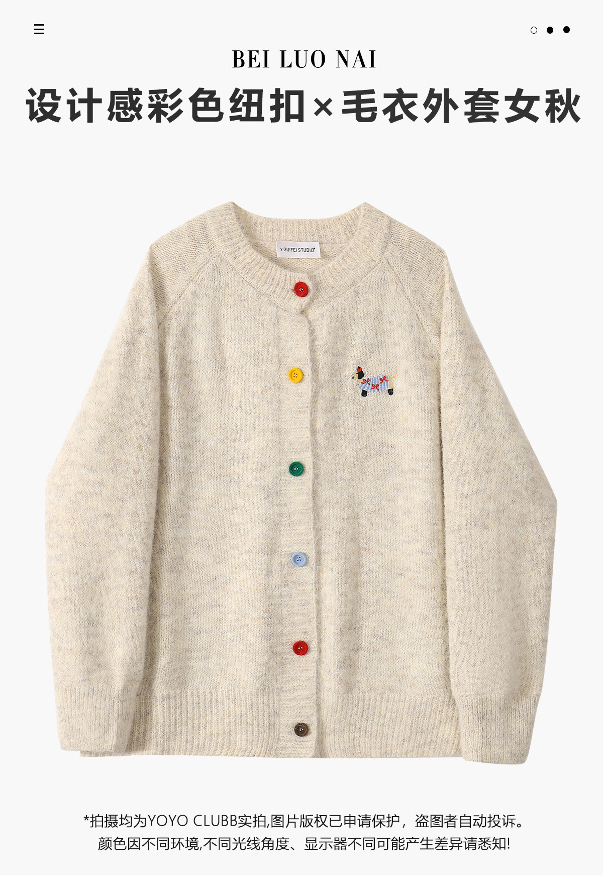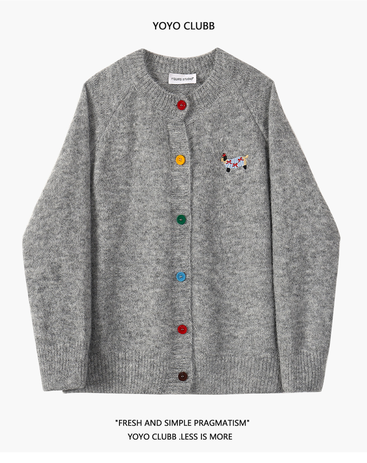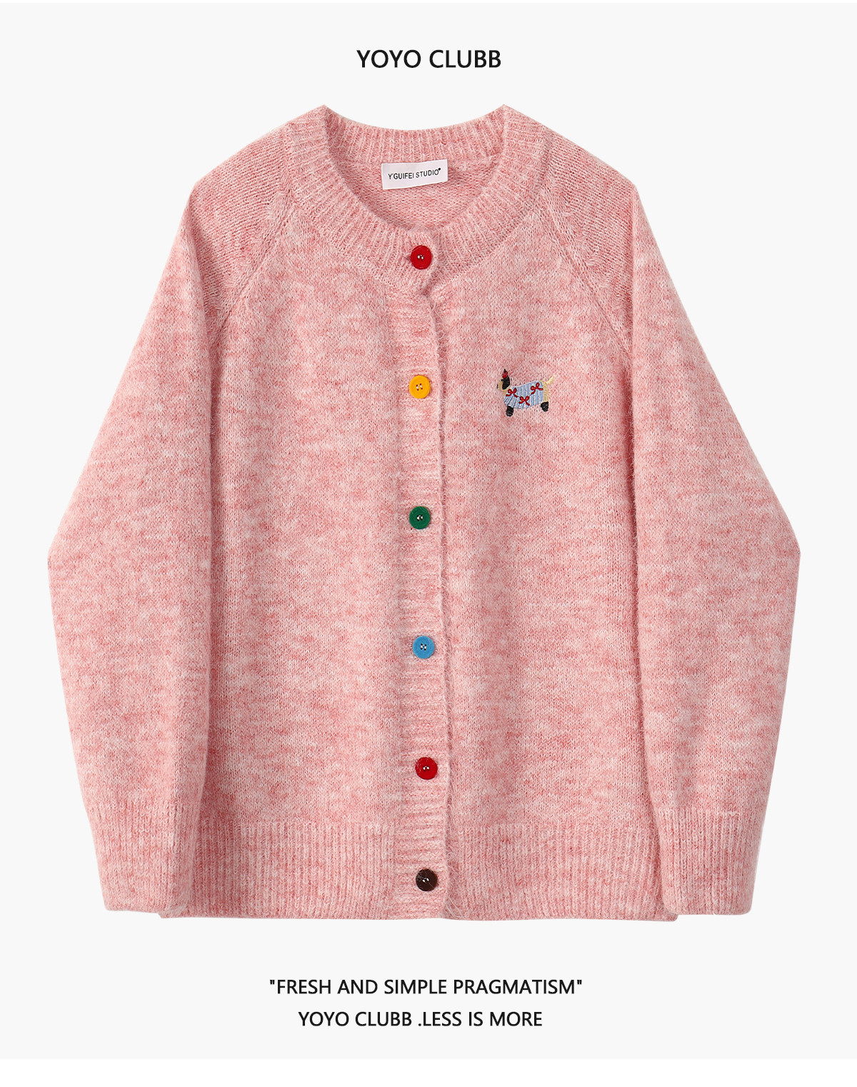 YOYO CLUBB設計感卡通刺綉毛衣開衫外套女秋季慵嬾風軟糯針織上衣