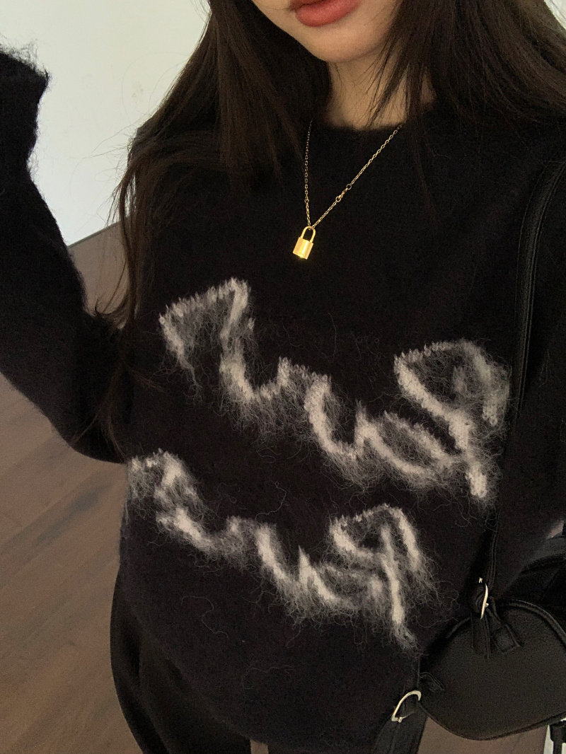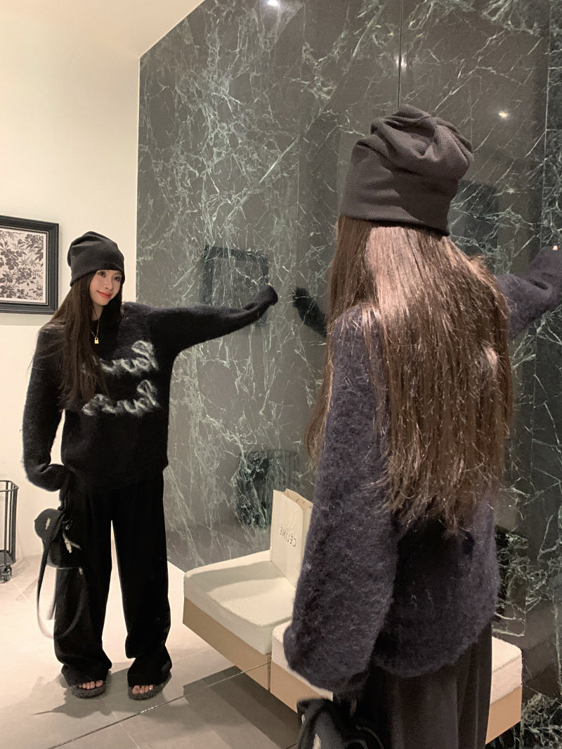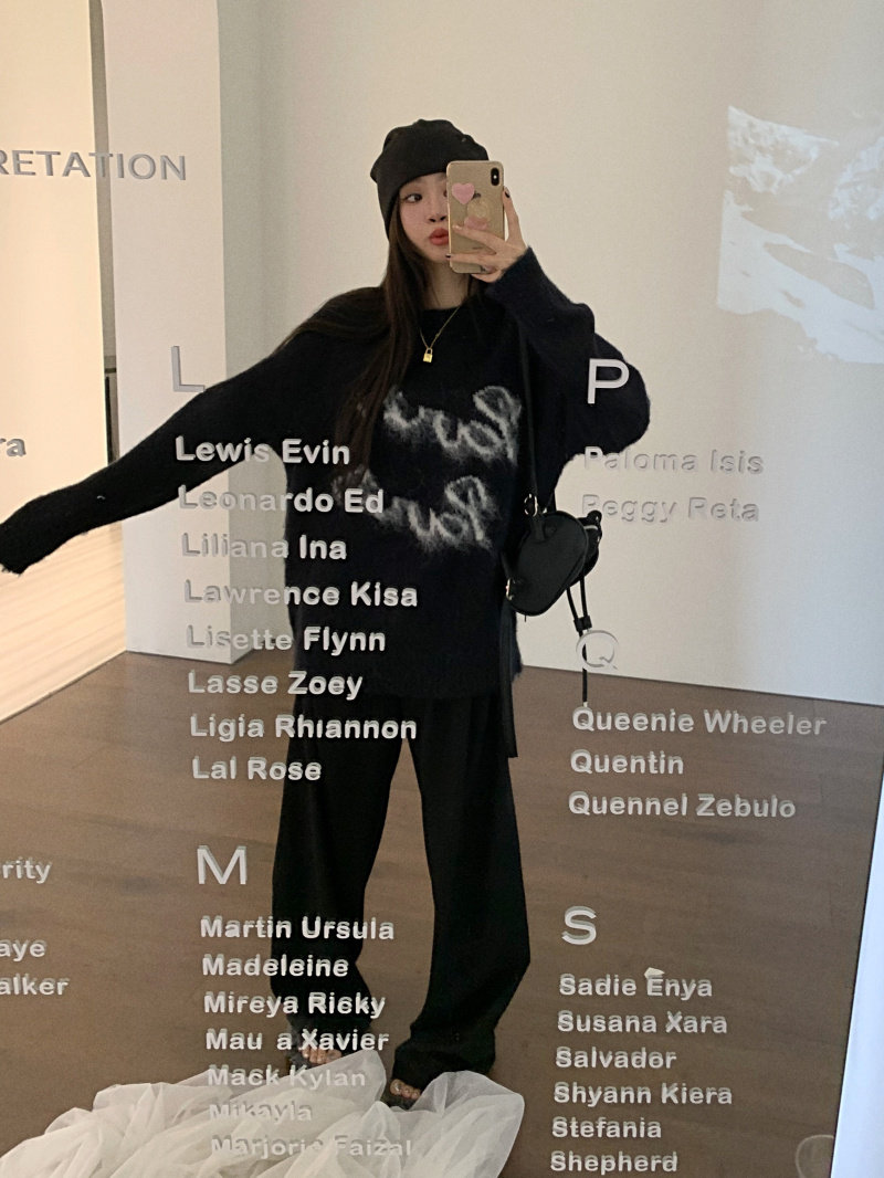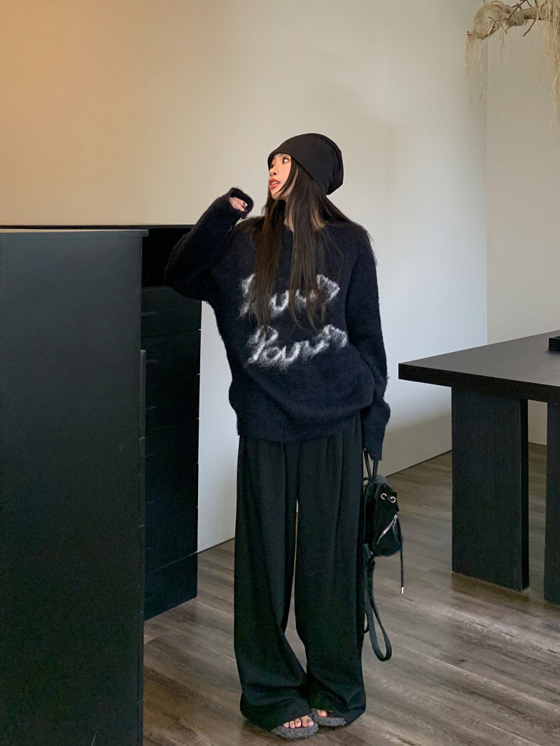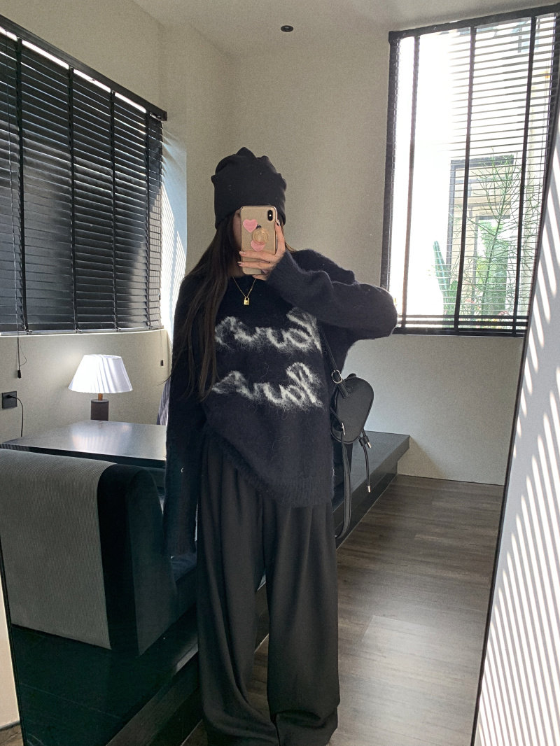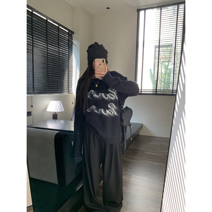 黑色圓領套頭毛衣女款2025新款冬季加厚軟糯寬鬆韓系慵懶針織上衣