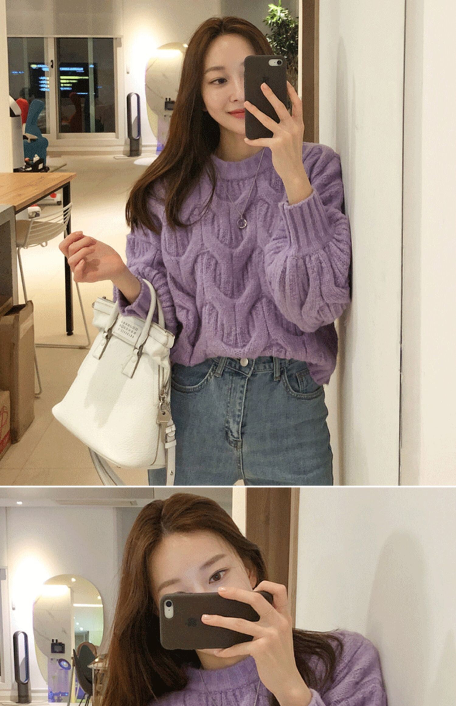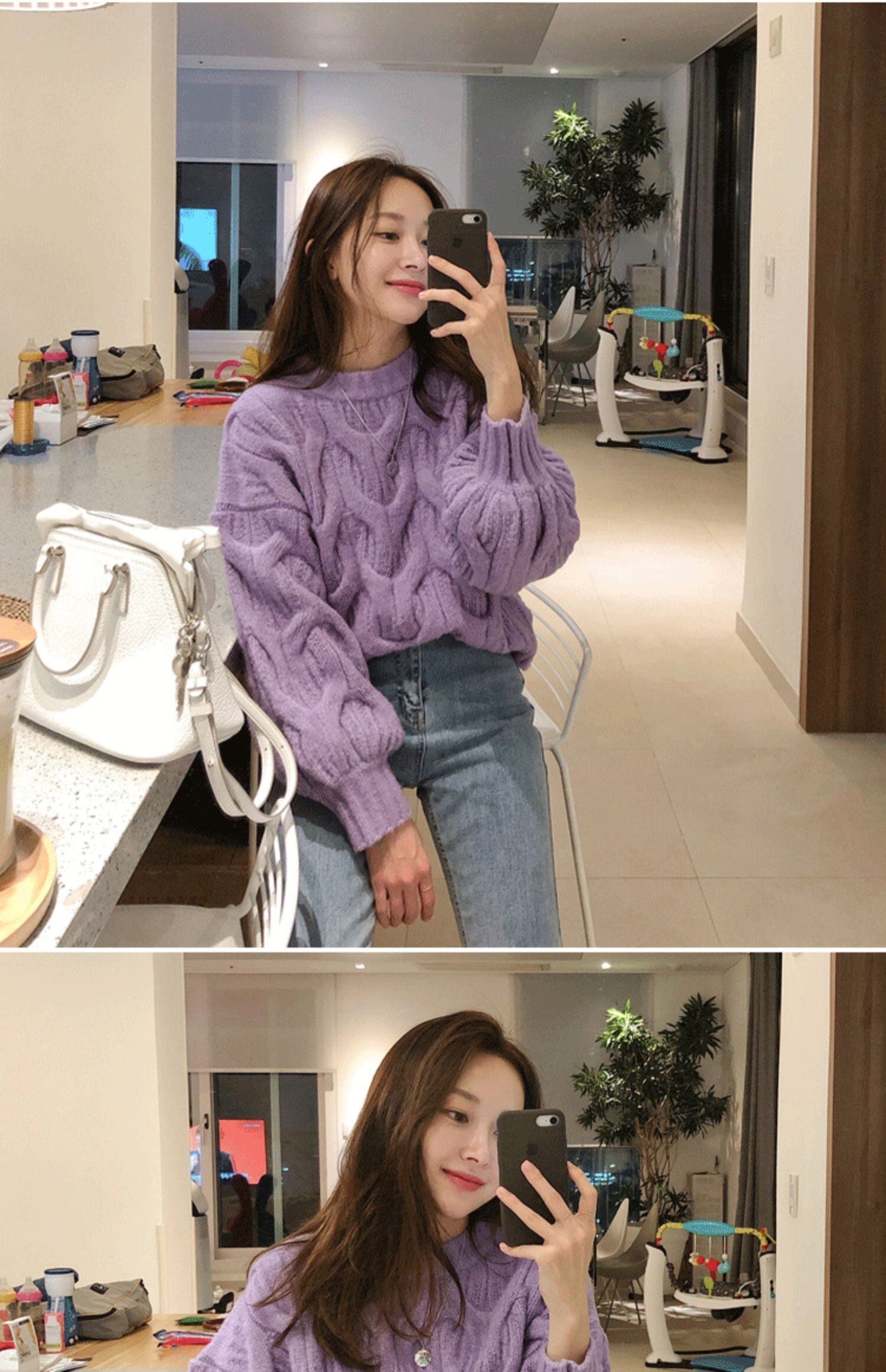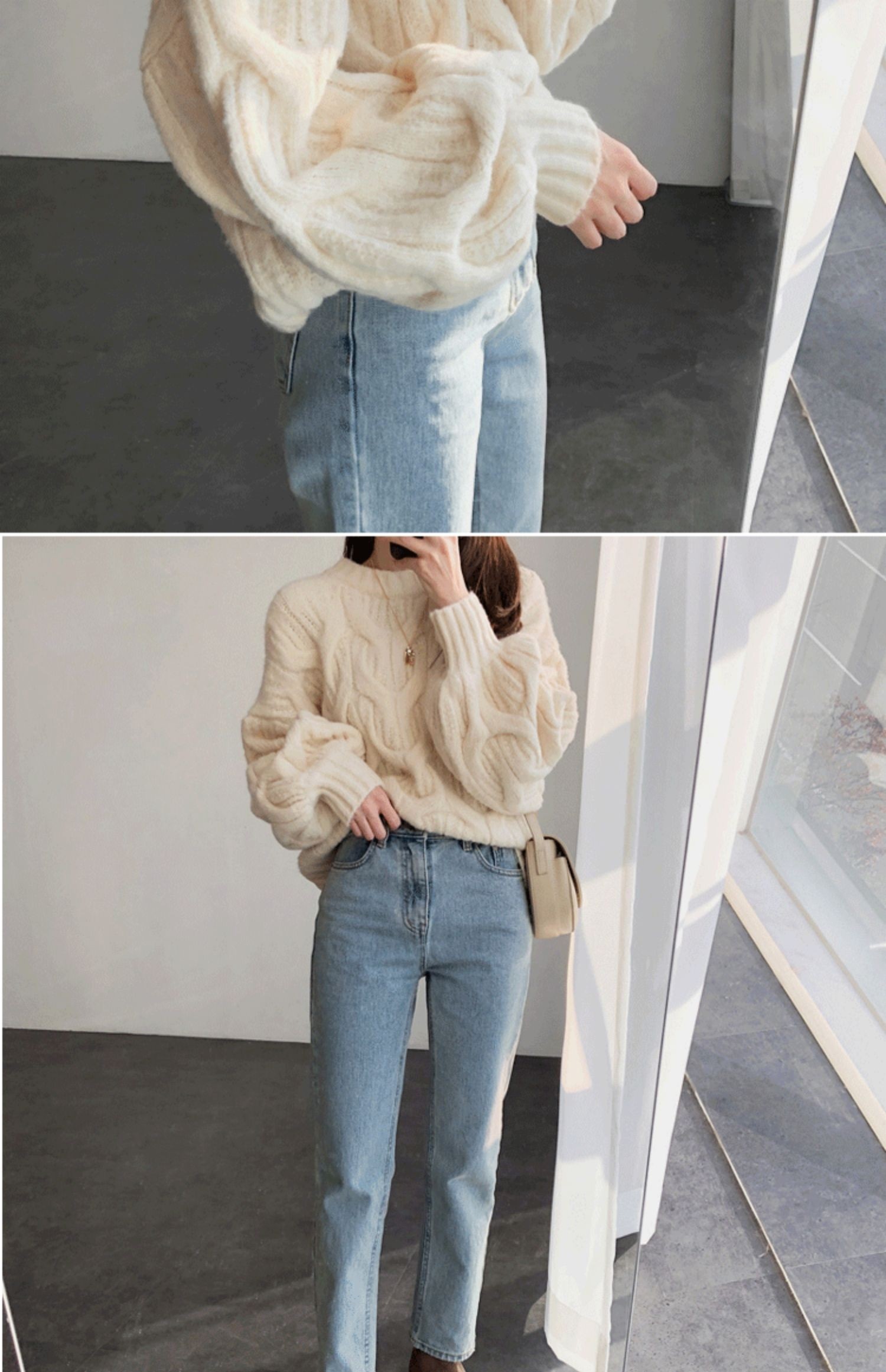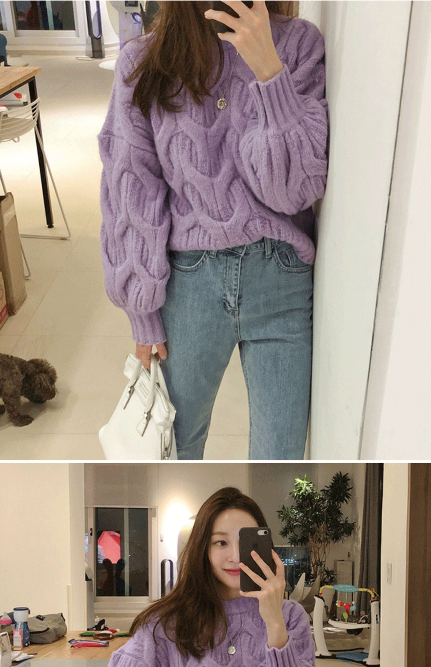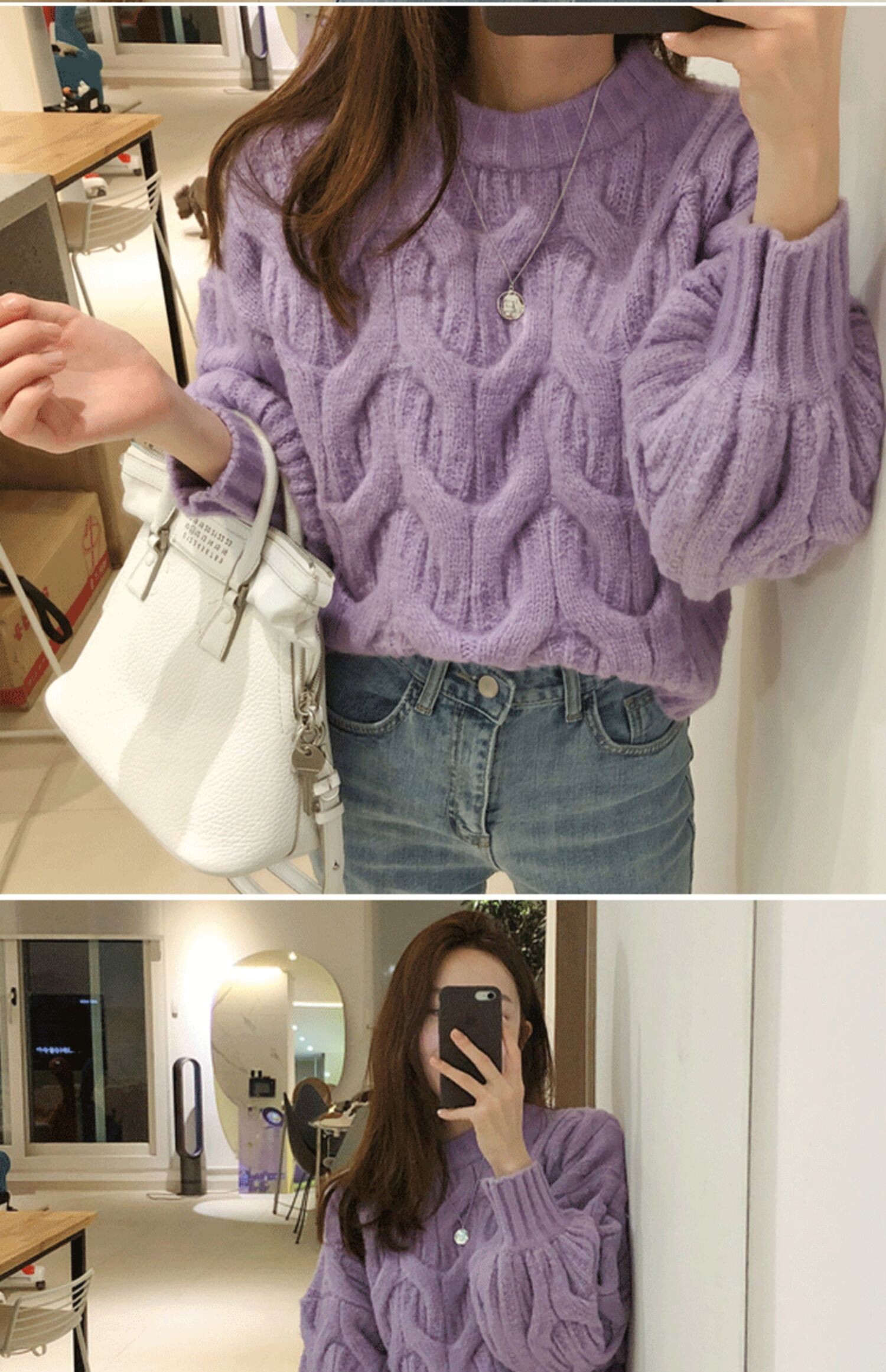 白色短款麻花毛衣女燈籠袖慵嬾風秋冬新款韓版寬鬆加厚套頭針織衫