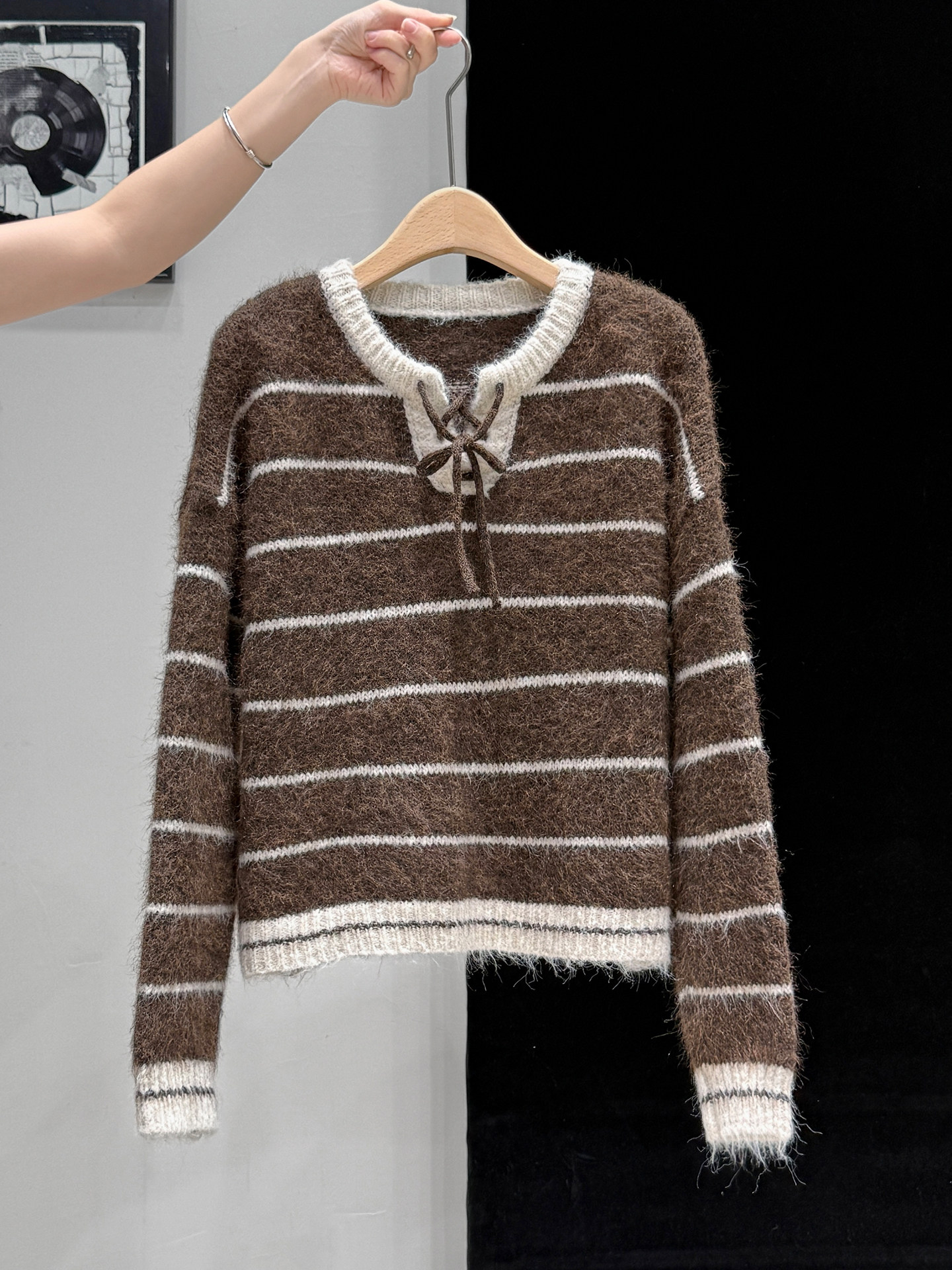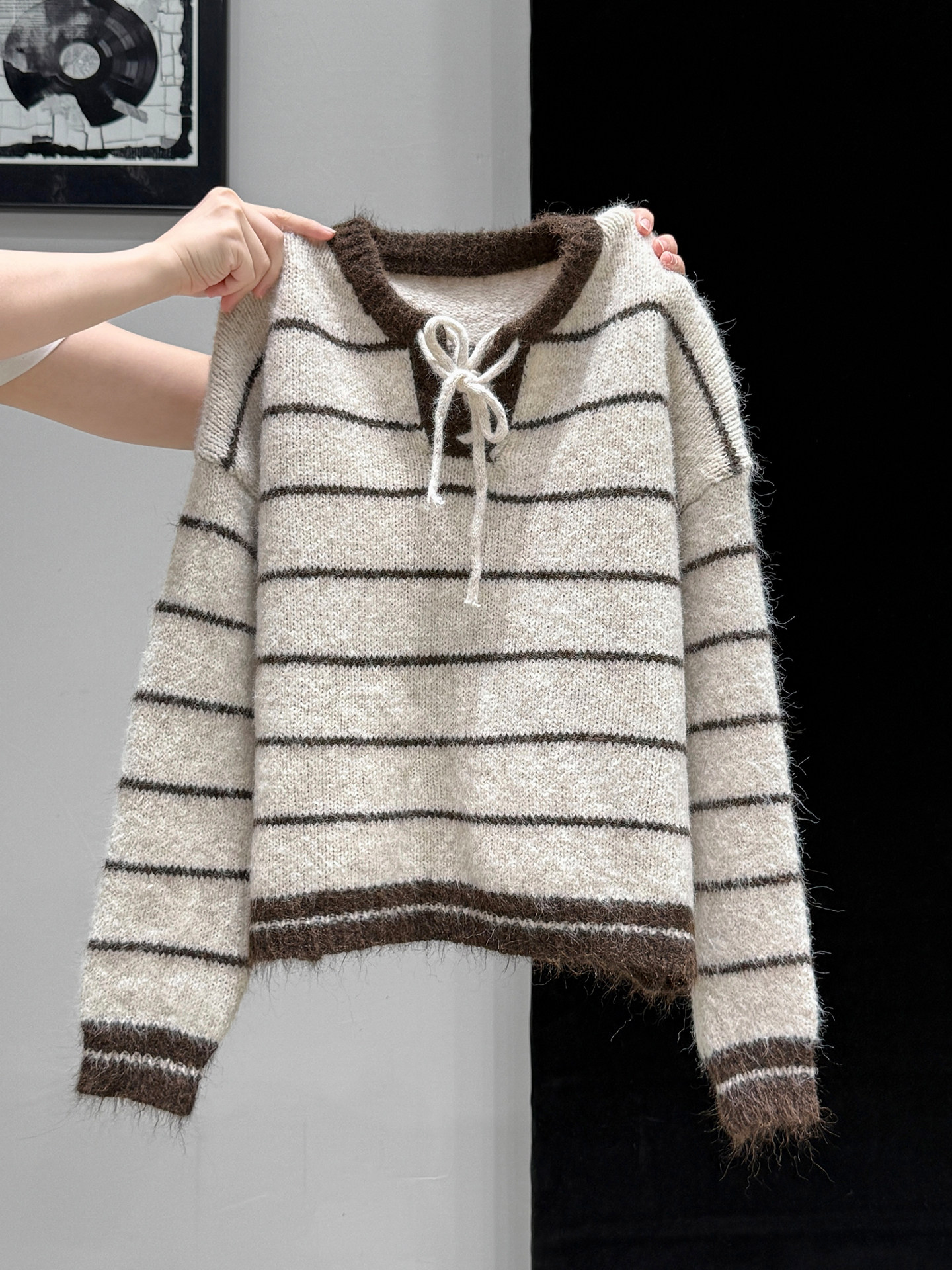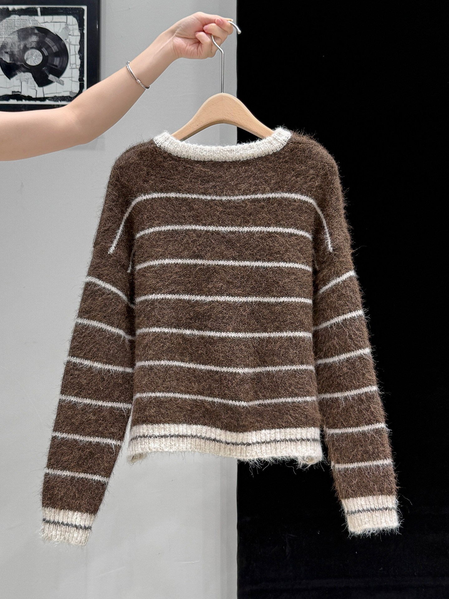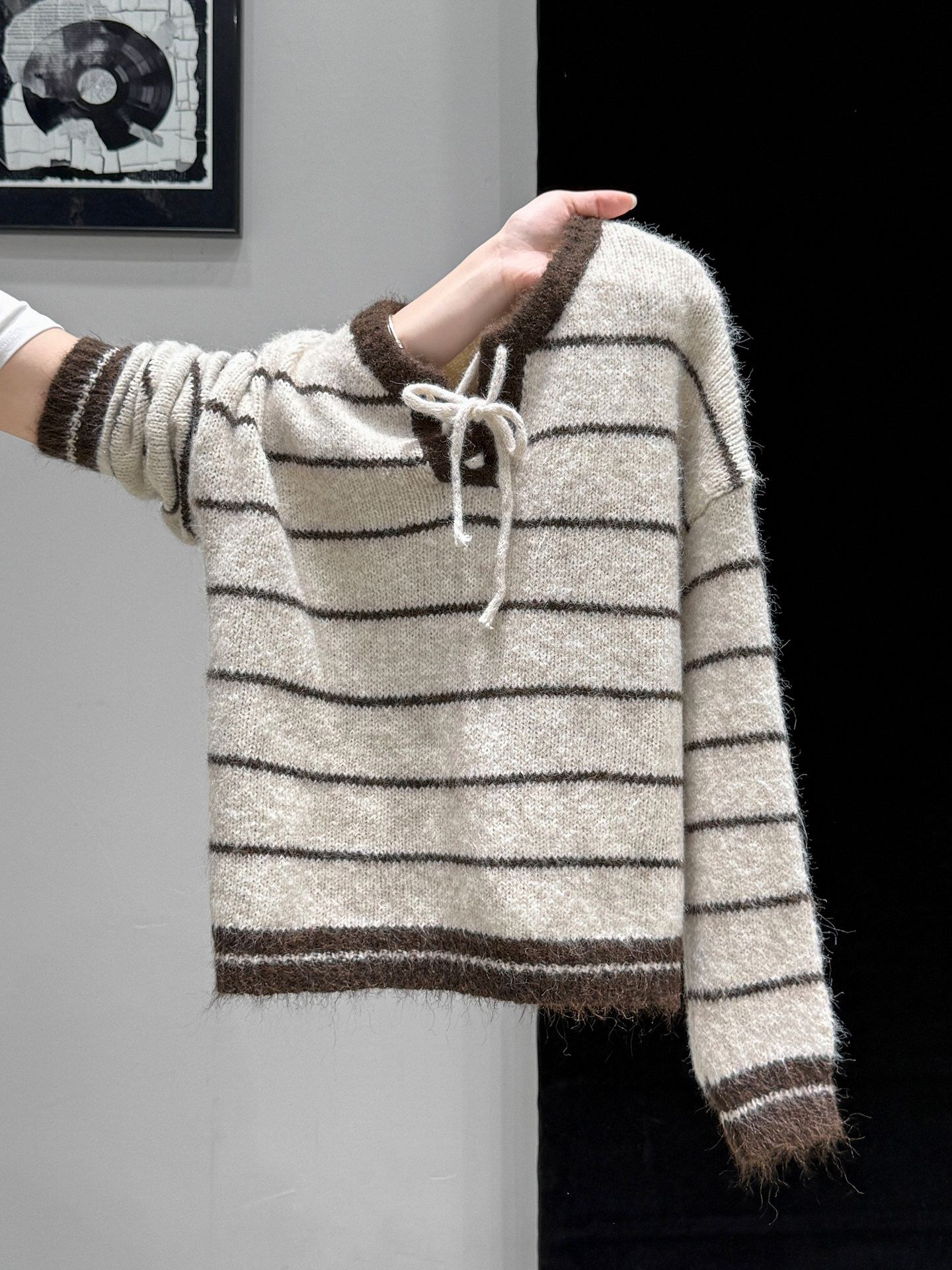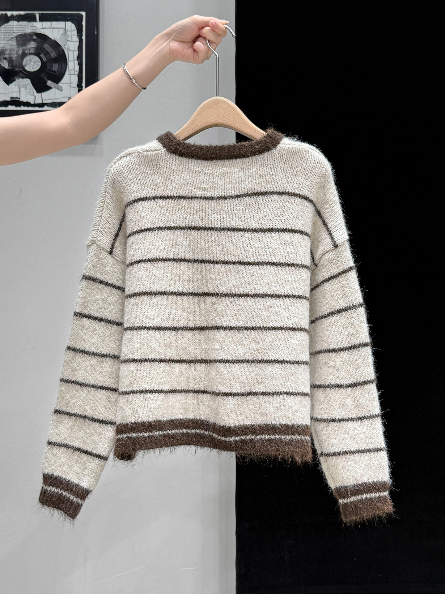 美拉德條紋加厚針織毛衣外套長袖秋冬新款打底衫內搭可外穿上衣女