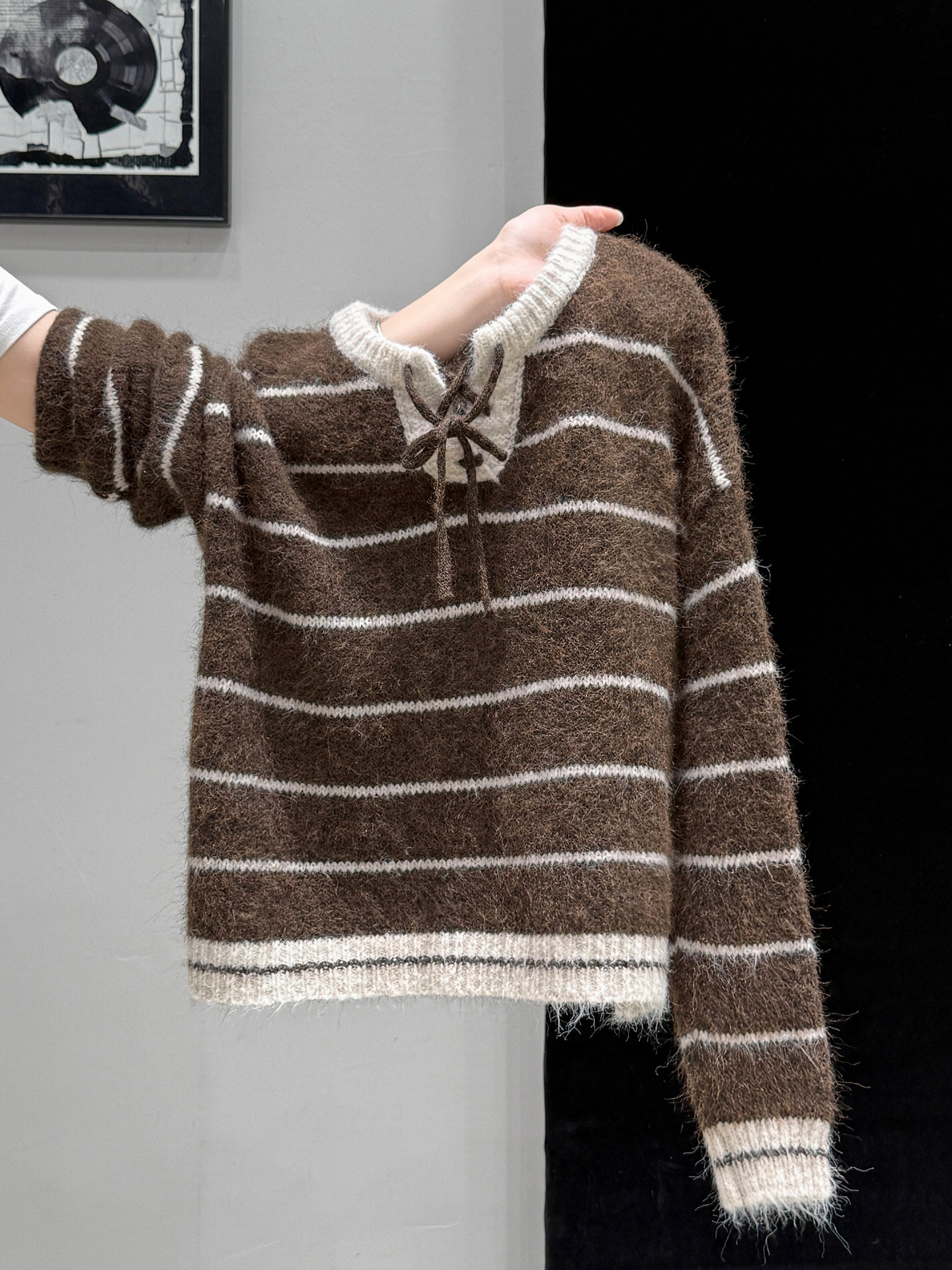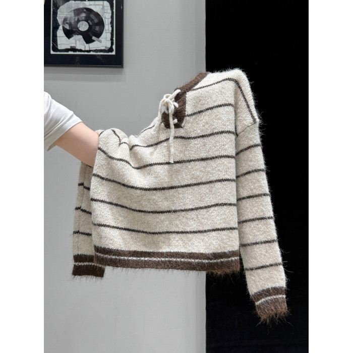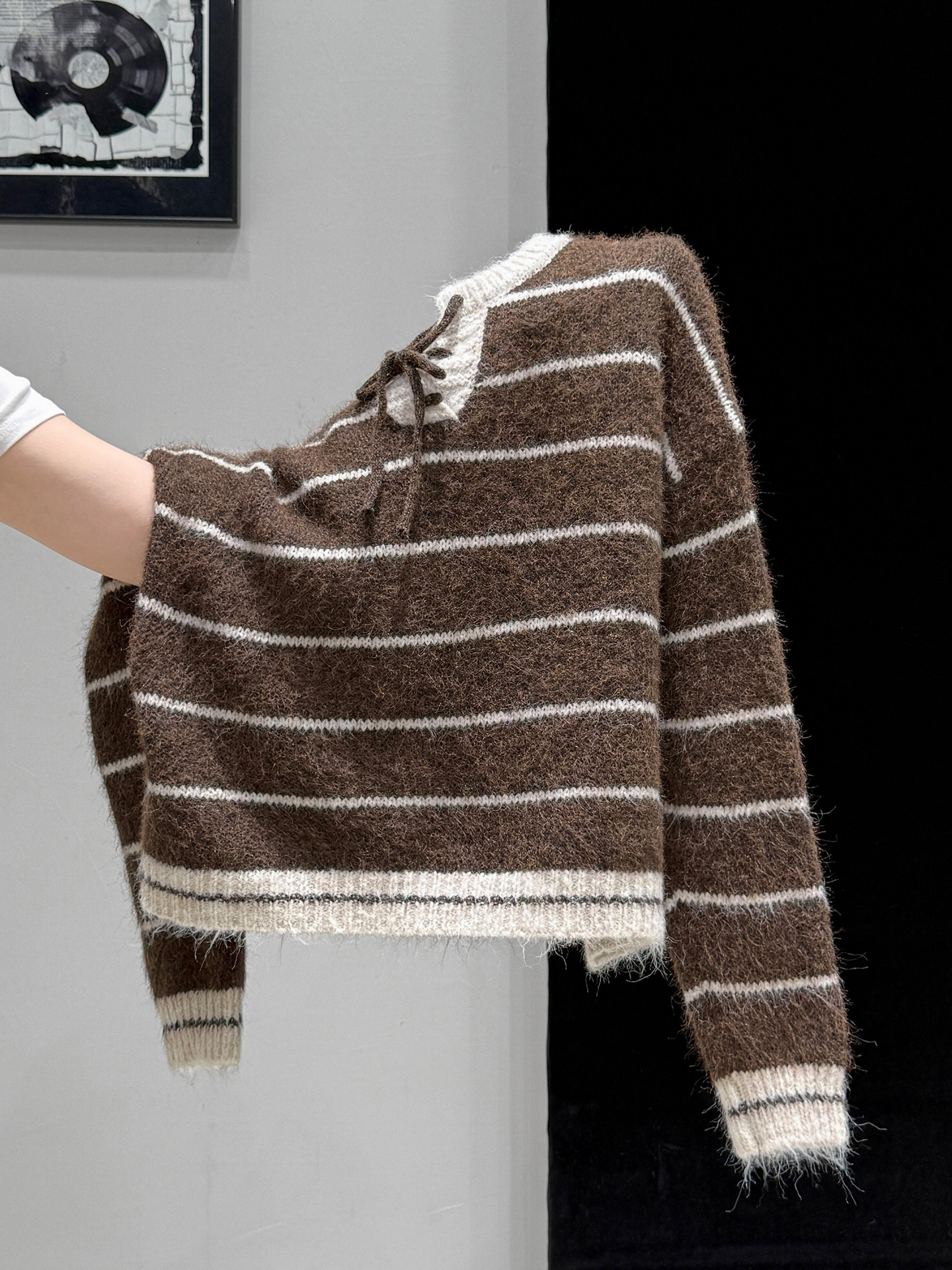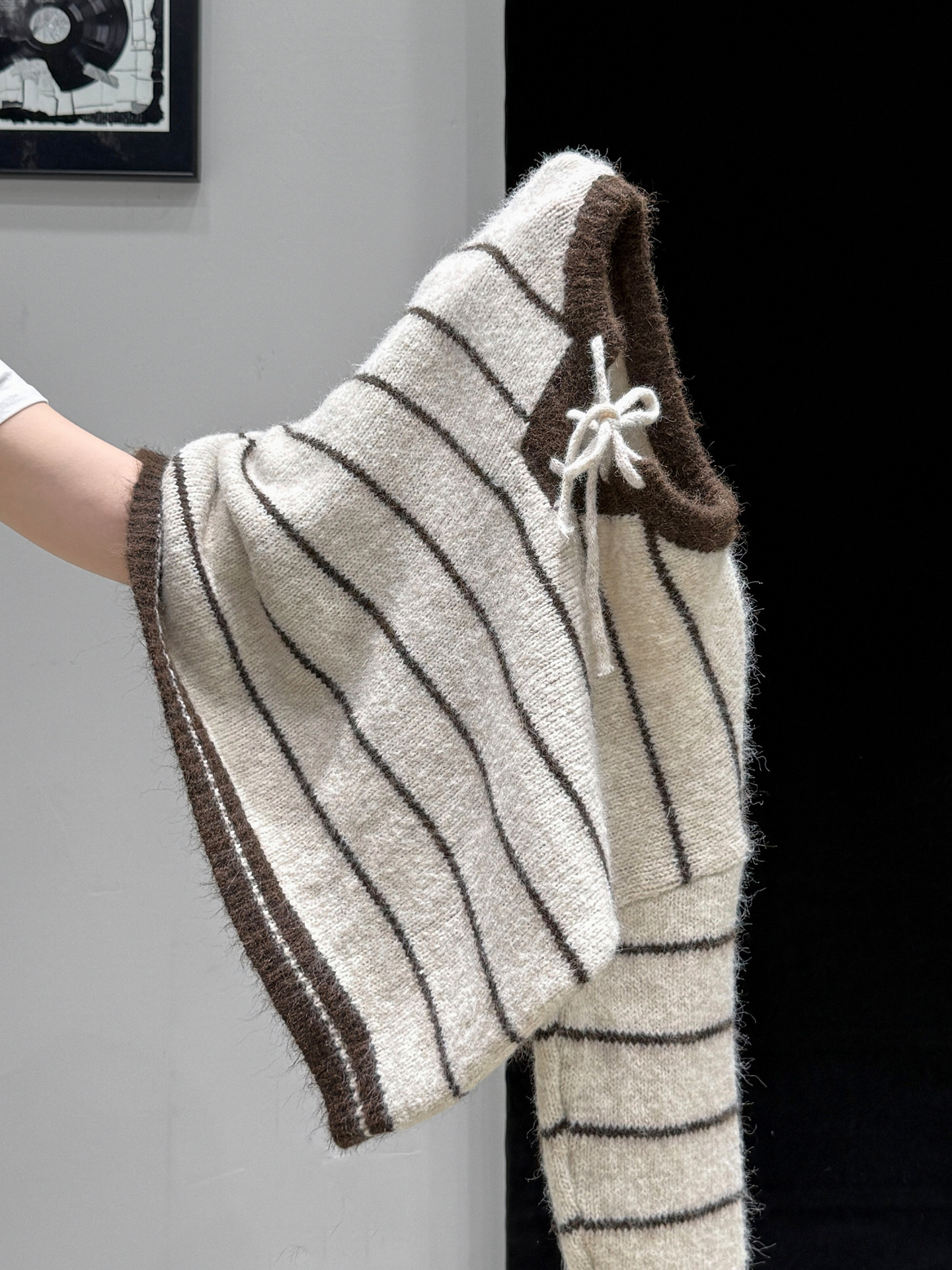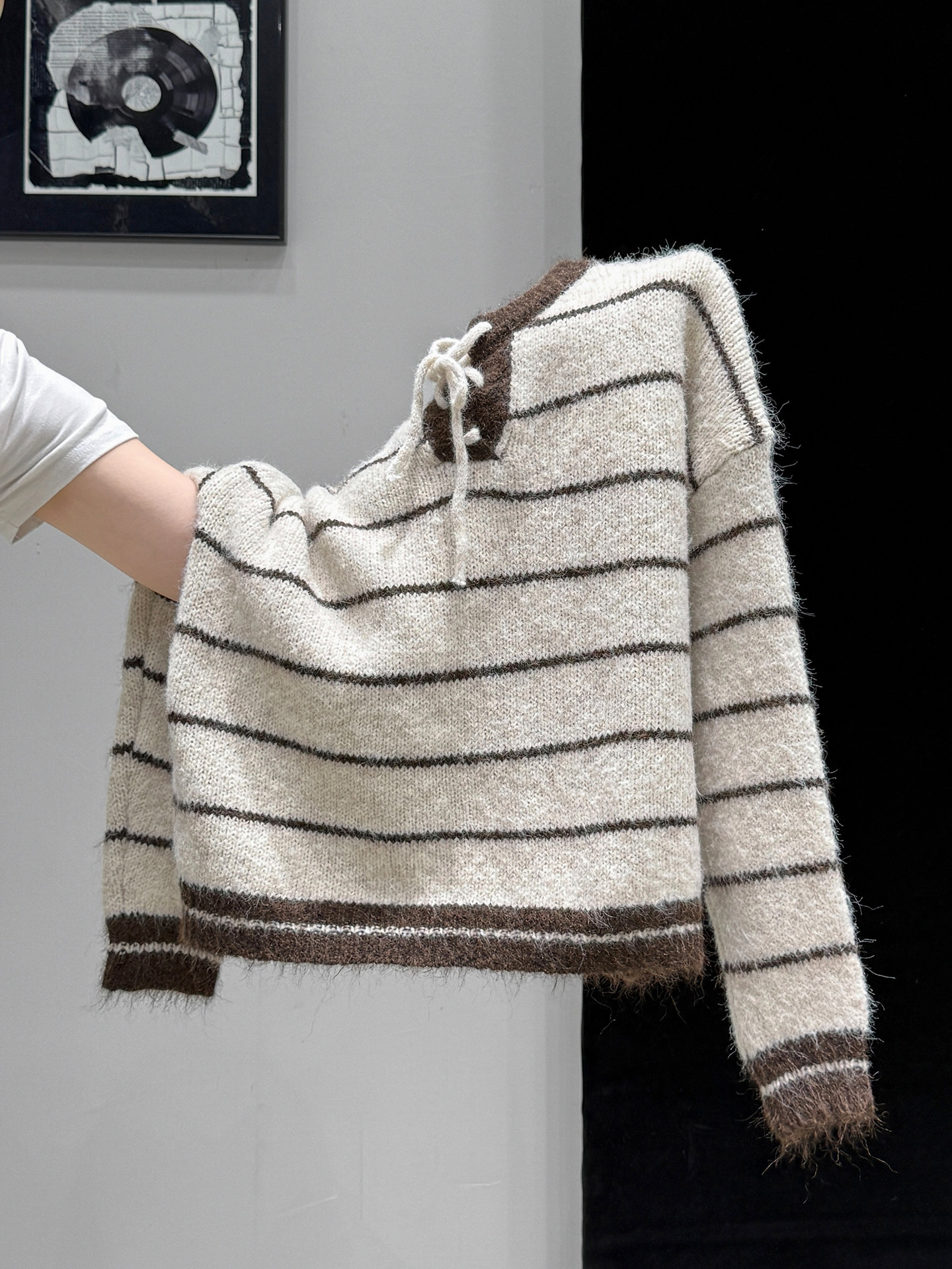 美拉德條紋加厚針織毛衣外套長袖秋冬新款打底衫內搭可外穿上衣女