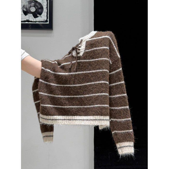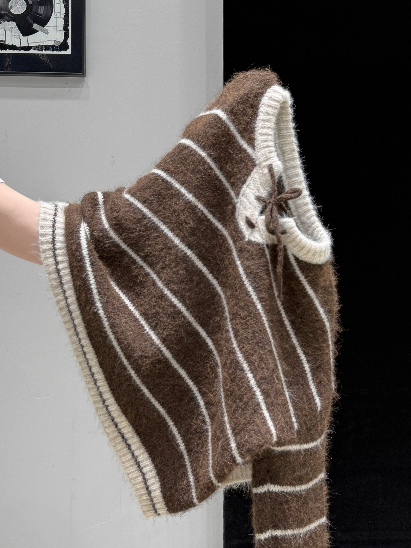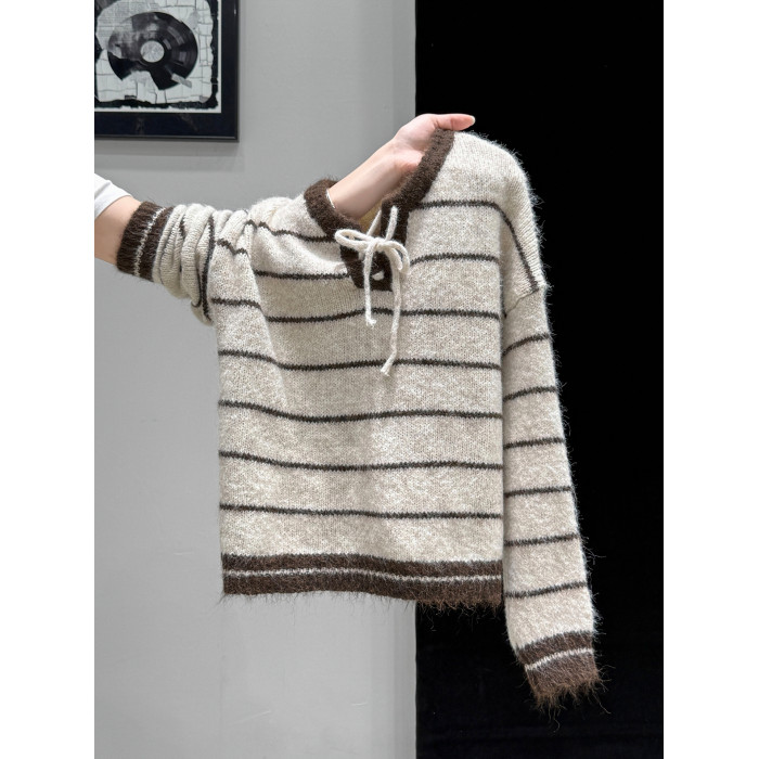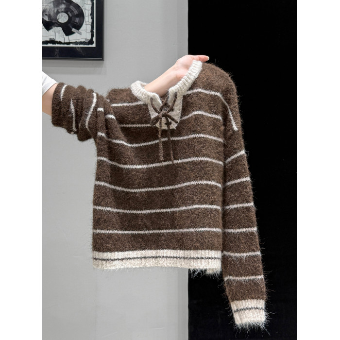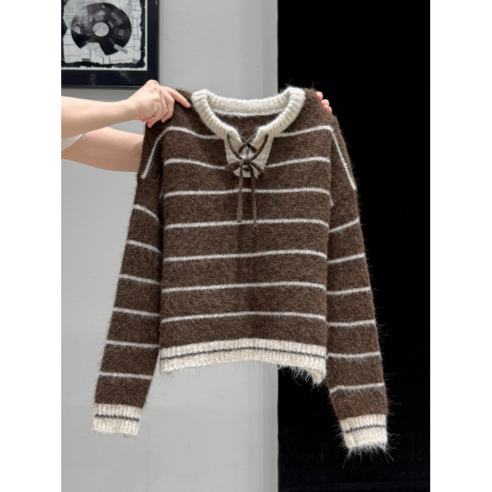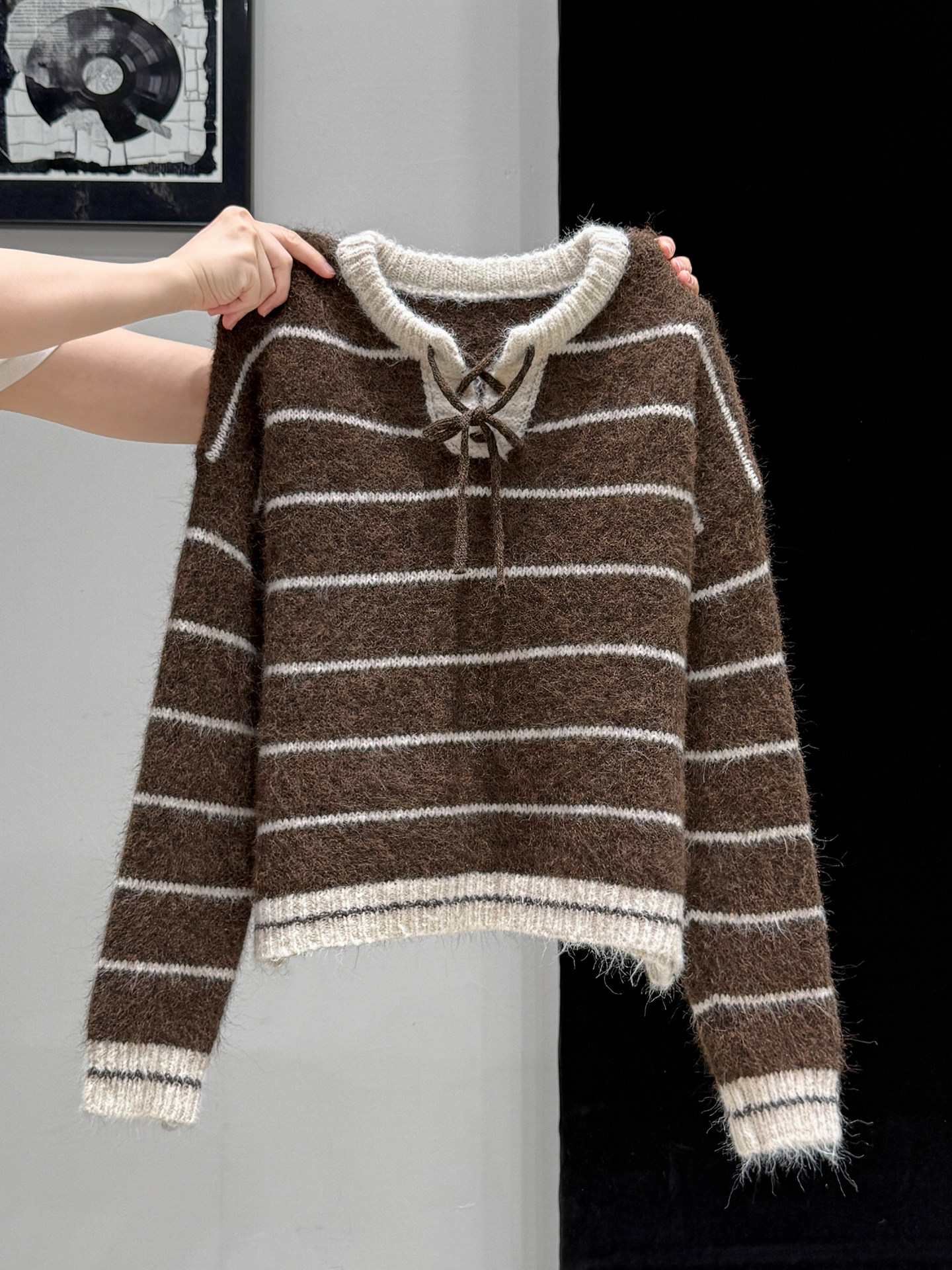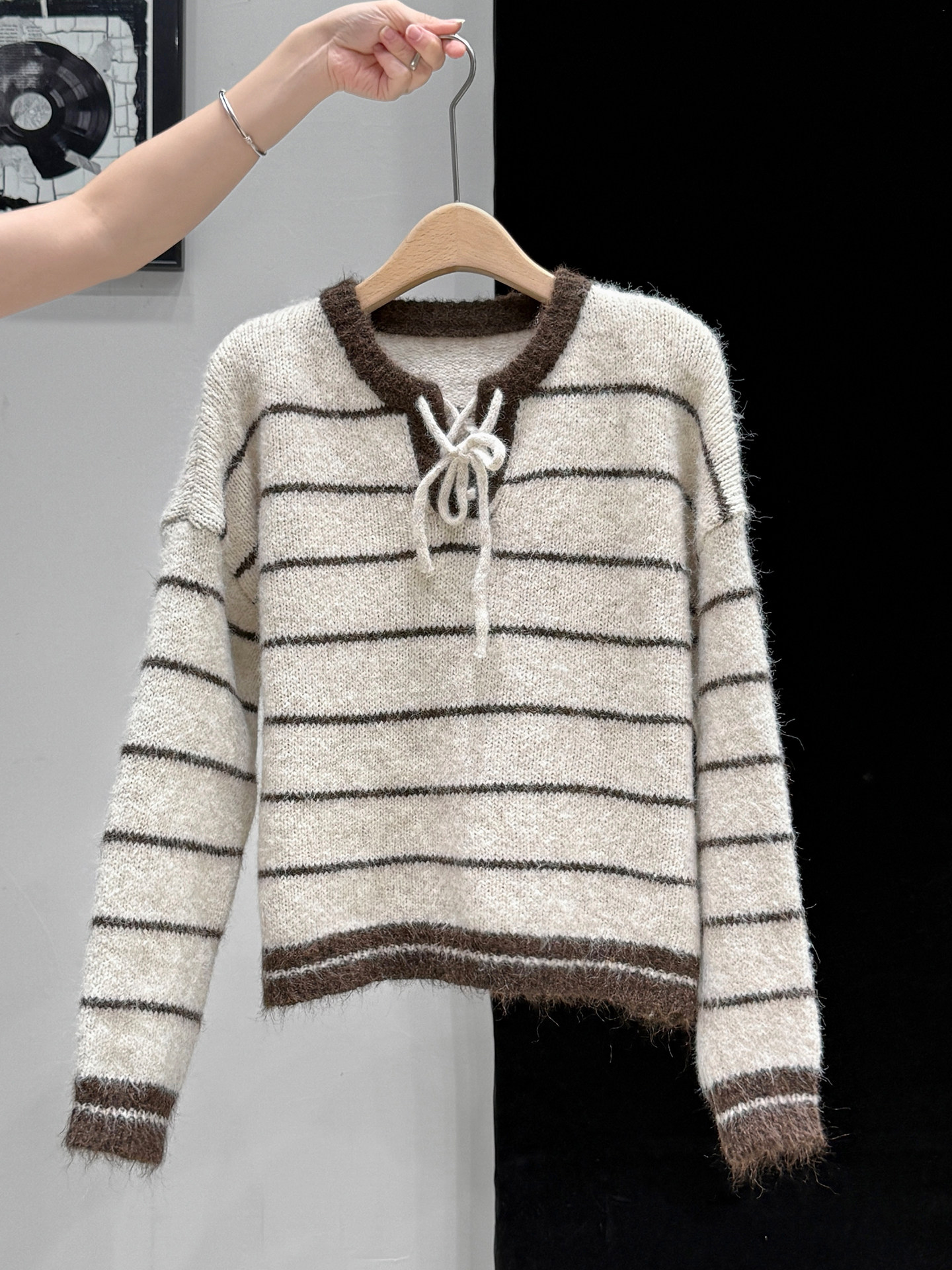 美拉德條紋加厚針織毛衣外套長袖秋冬新款打底衫內搭可外穿上衣女