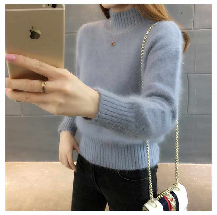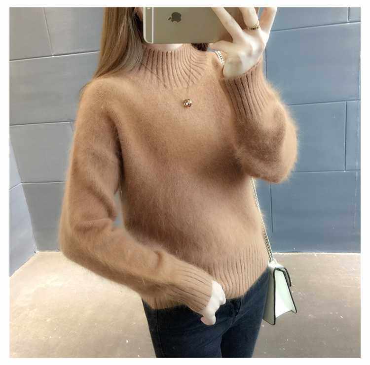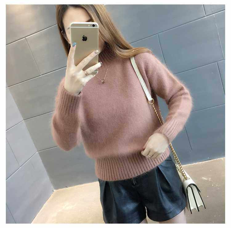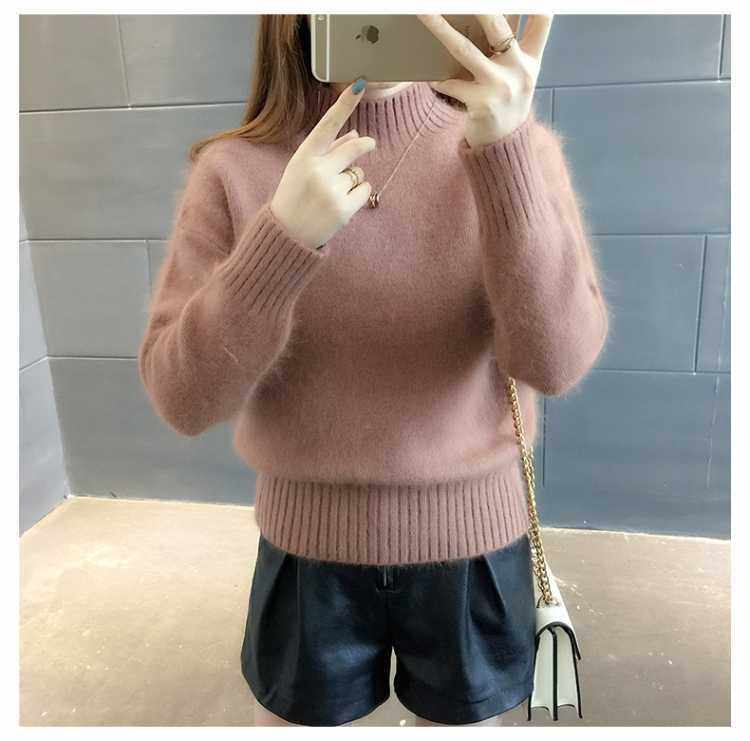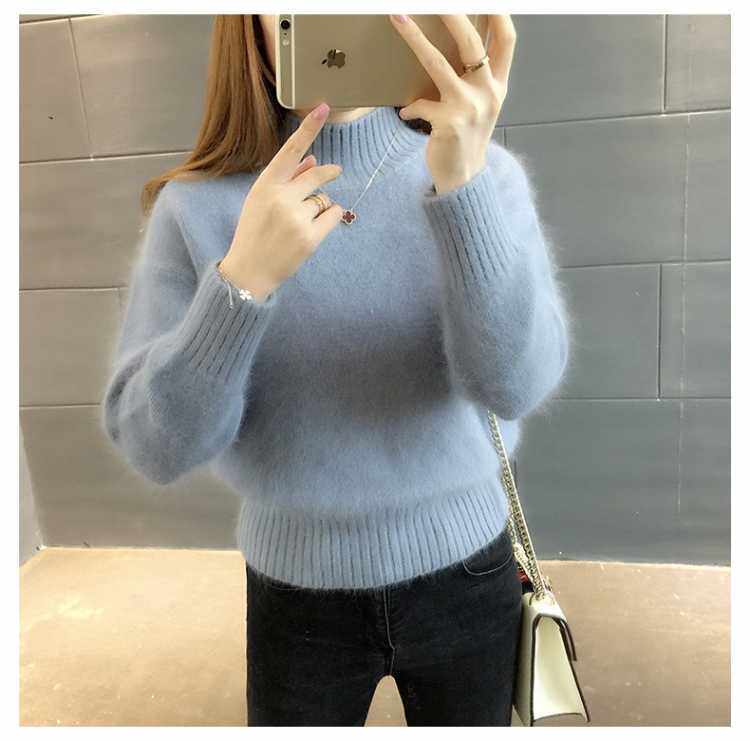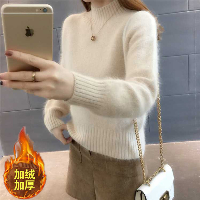 2024秋冬新款仿水貂毛衣女短款套頭顯瘦針織衫加絨加厚打底衫上衣