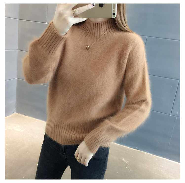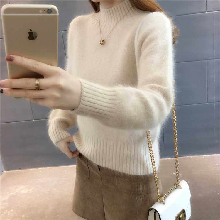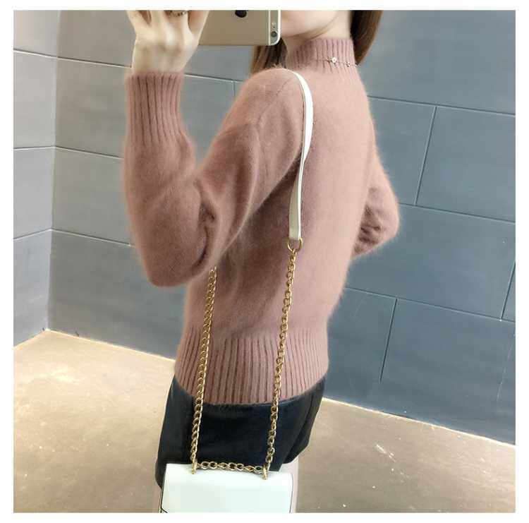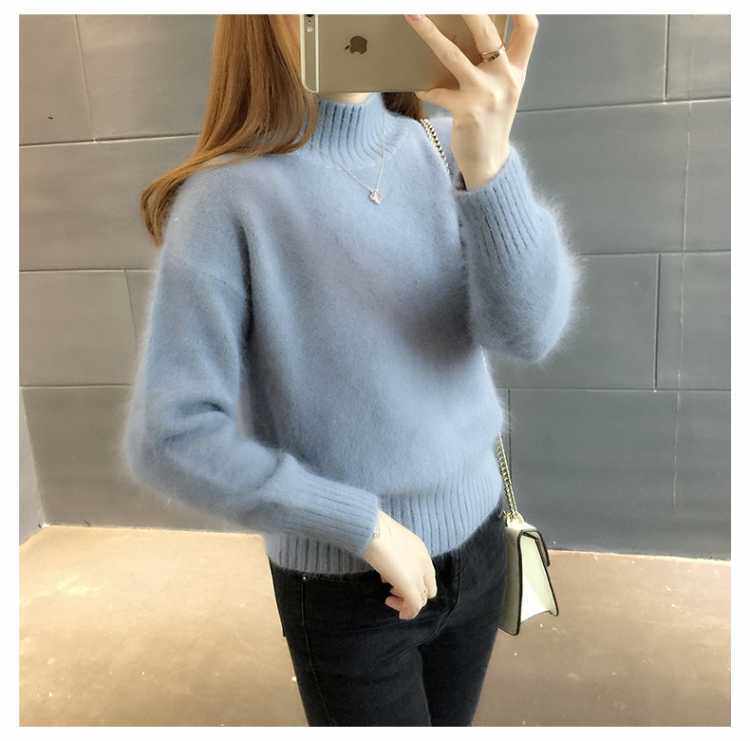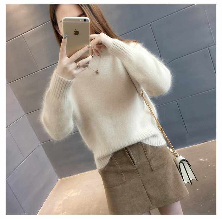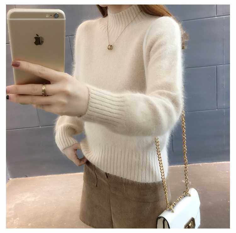 2024秋冬新款仿水貂毛衣女短款套頭顯瘦針織衫加絨加厚打底衫上衣
