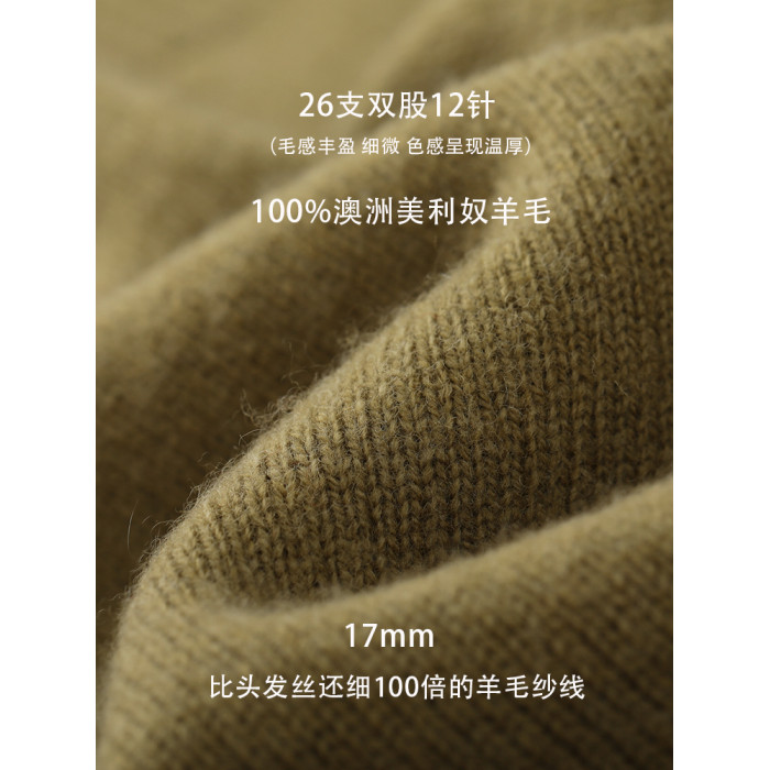 重磅推出!100%純羊毛定紡針織打底衫上衣內搭毛衣純色秋冬女高級