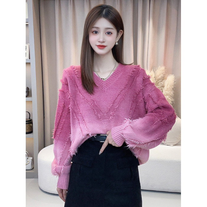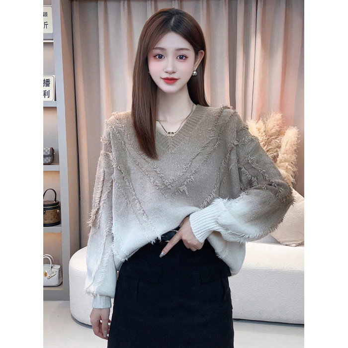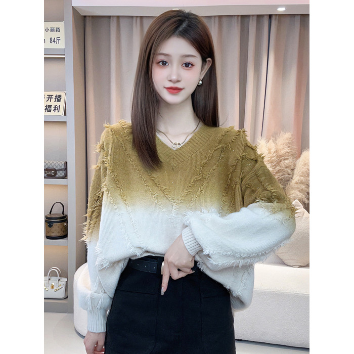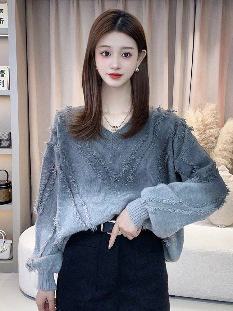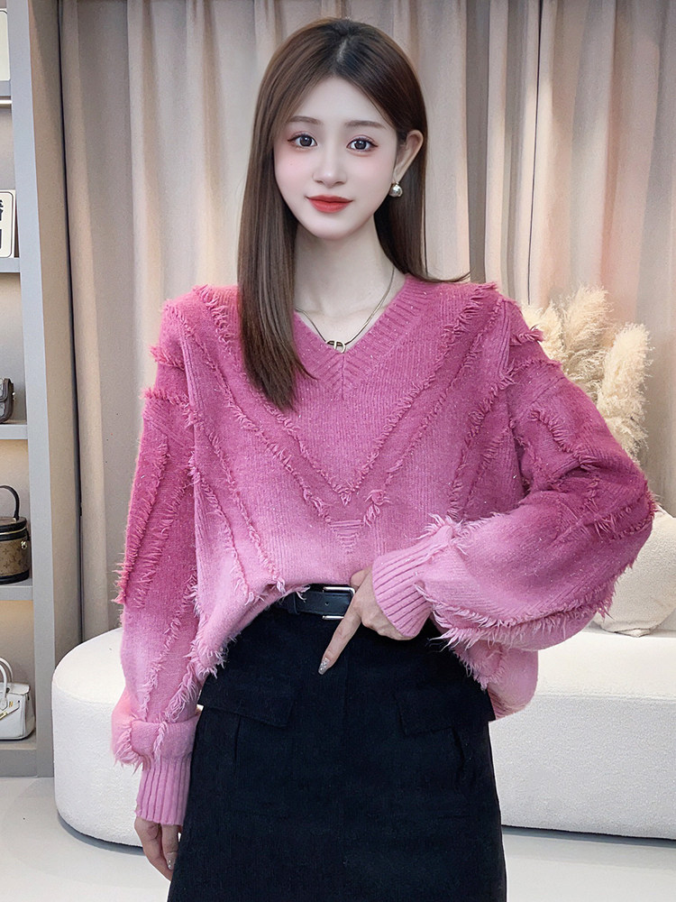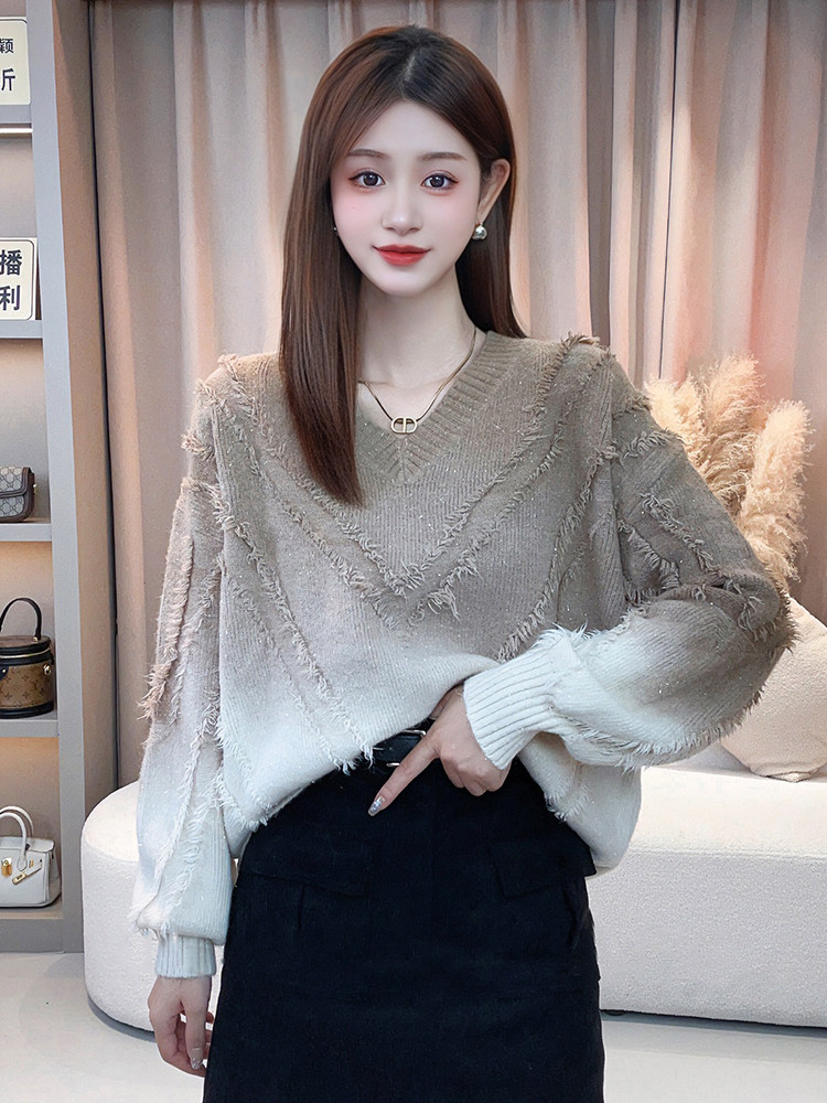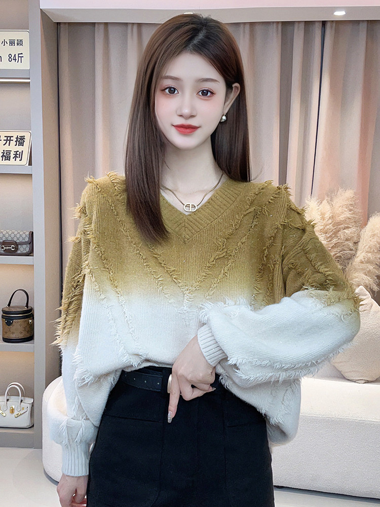 今年流行漂亮毛衣女秋冬2025新款爆款寬鬆慵嬾風漸變色針織衫上衣