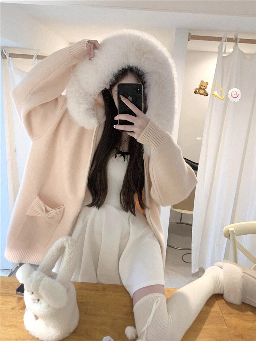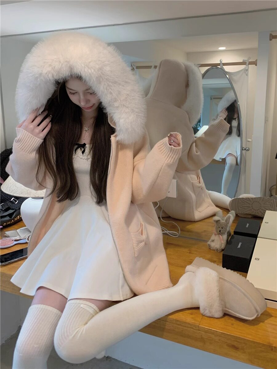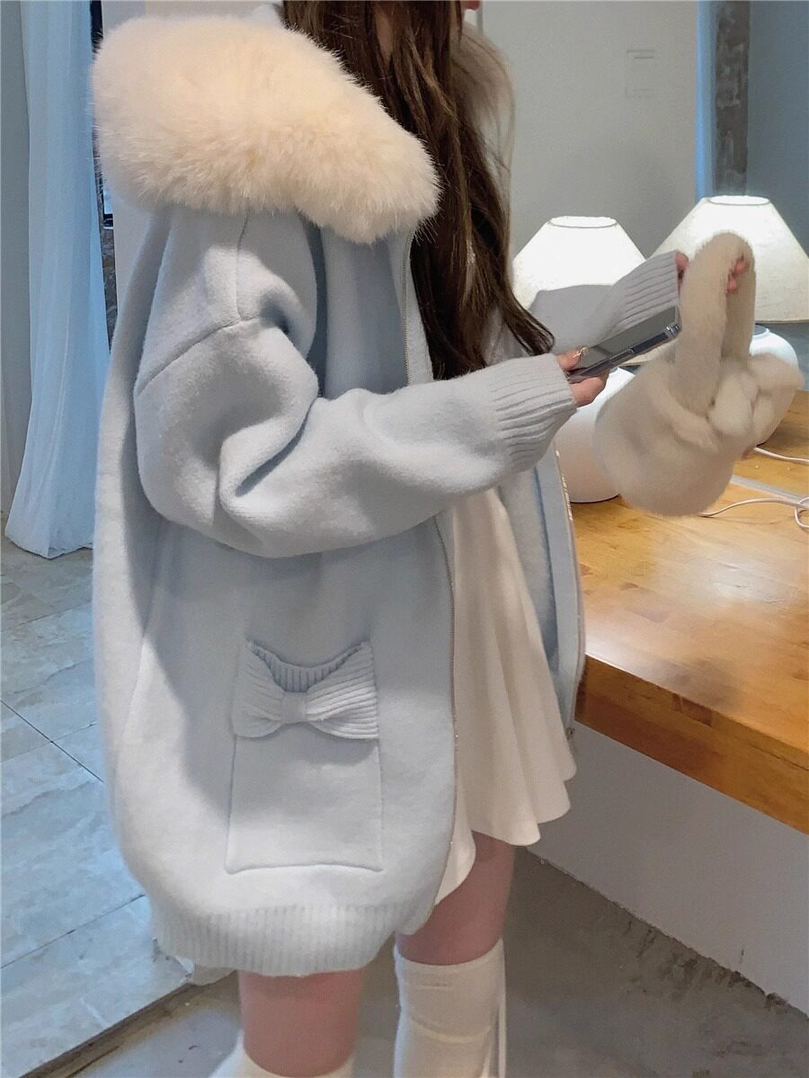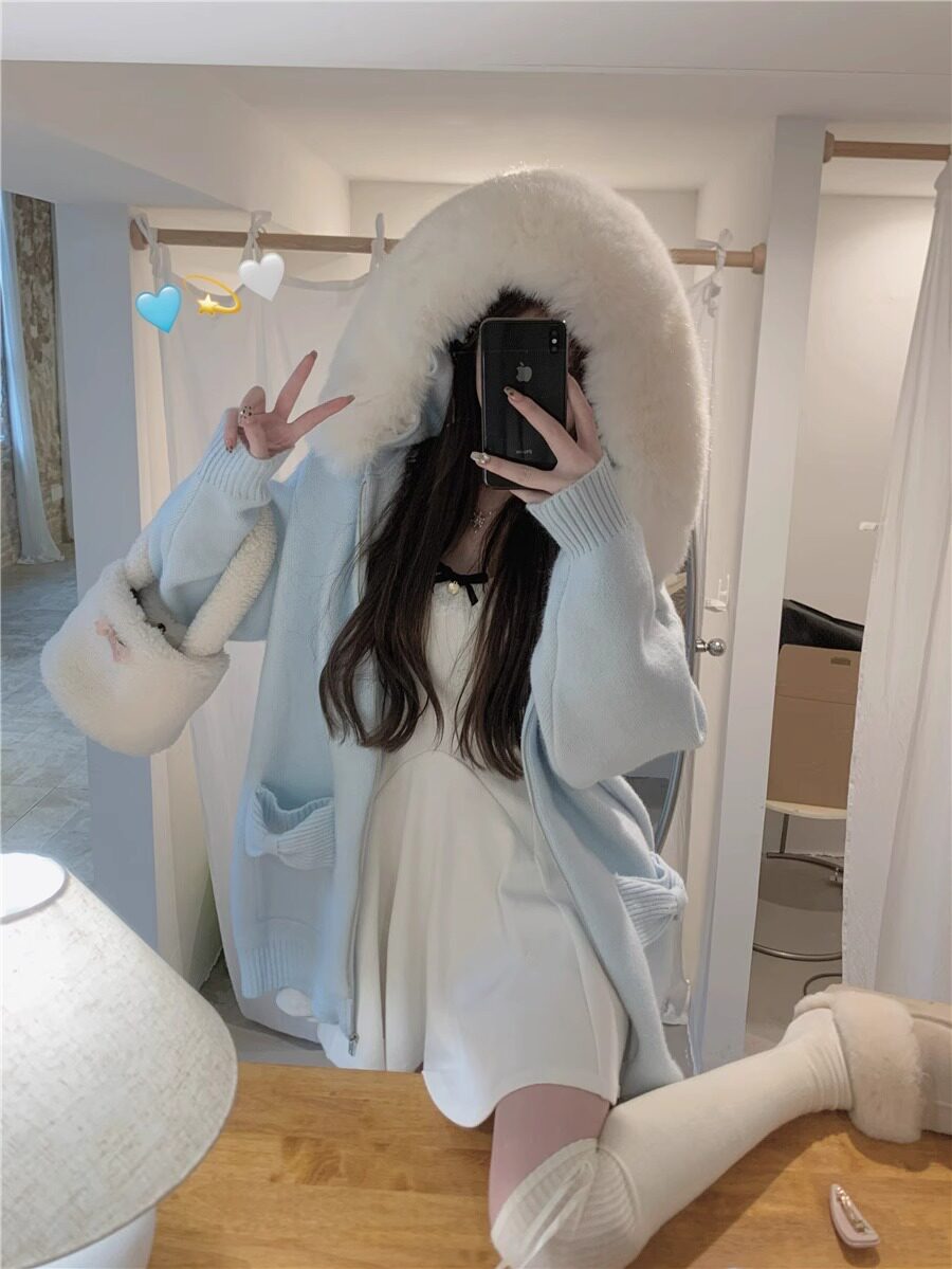 2025新款大毛領連帽毛衣針織開衫外套慵懶風超好看寬松加厚秋冬款