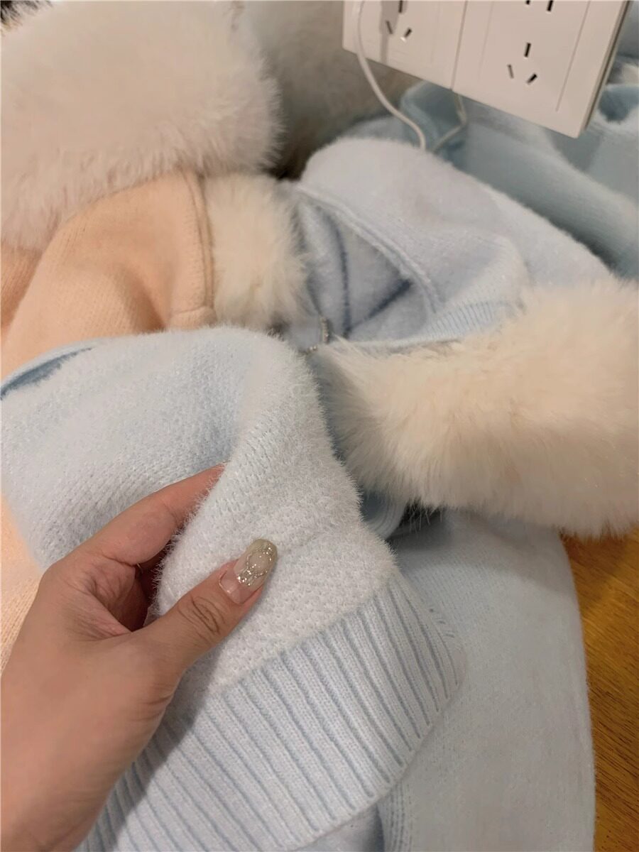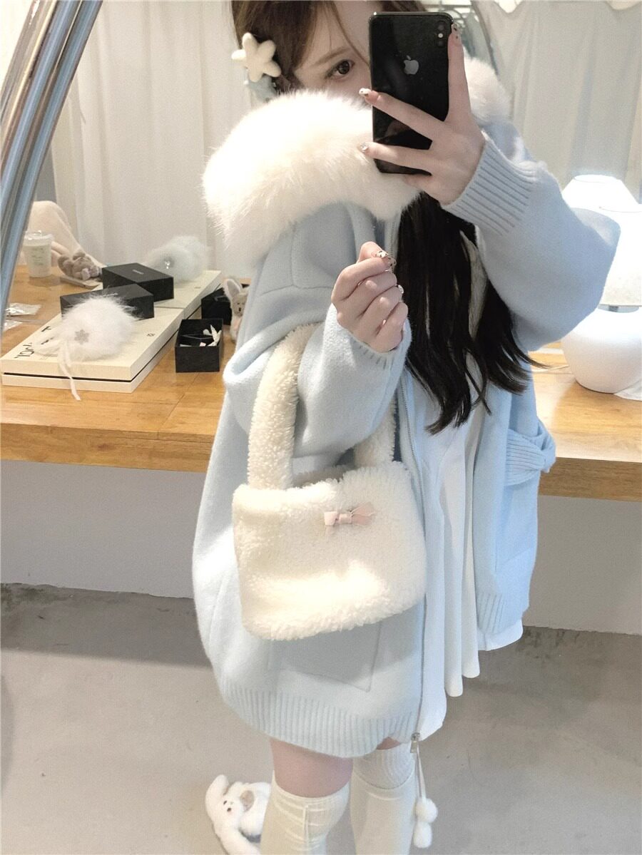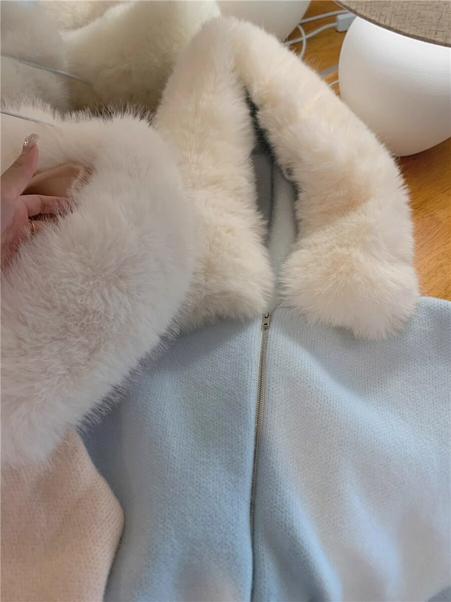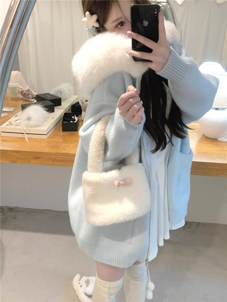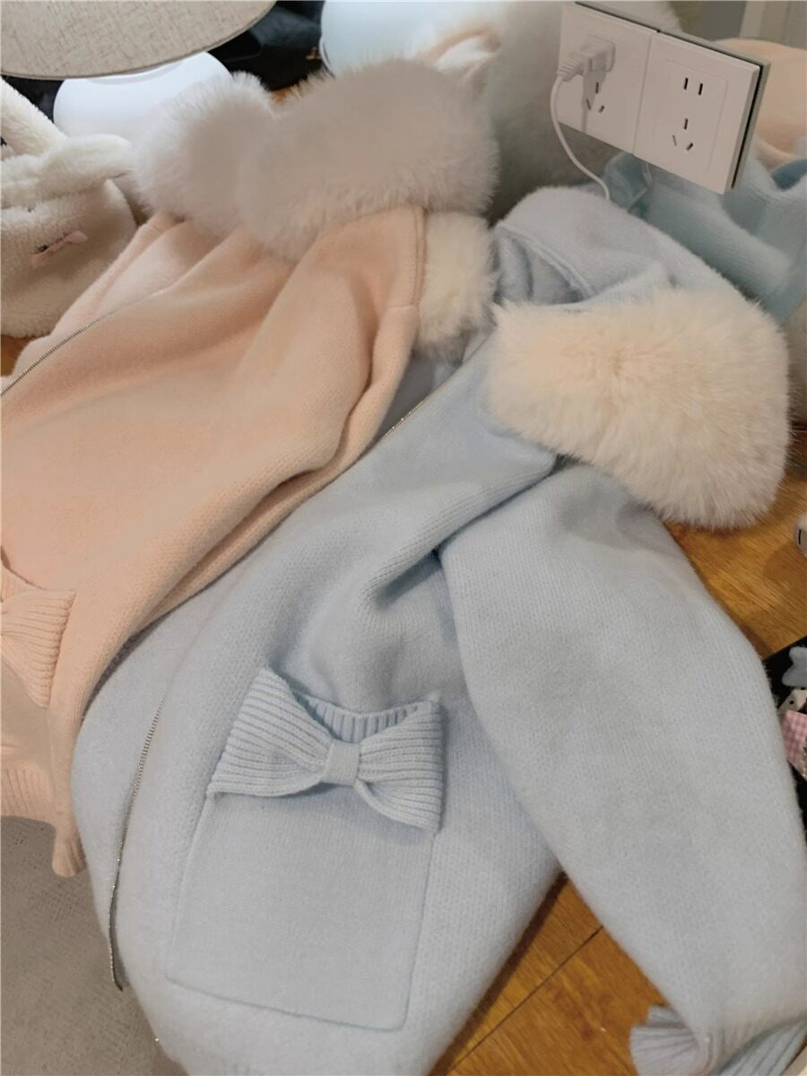 2025新款大毛領連帽毛衣針織開衫外套慵懶風超好看寬松加厚秋冬款