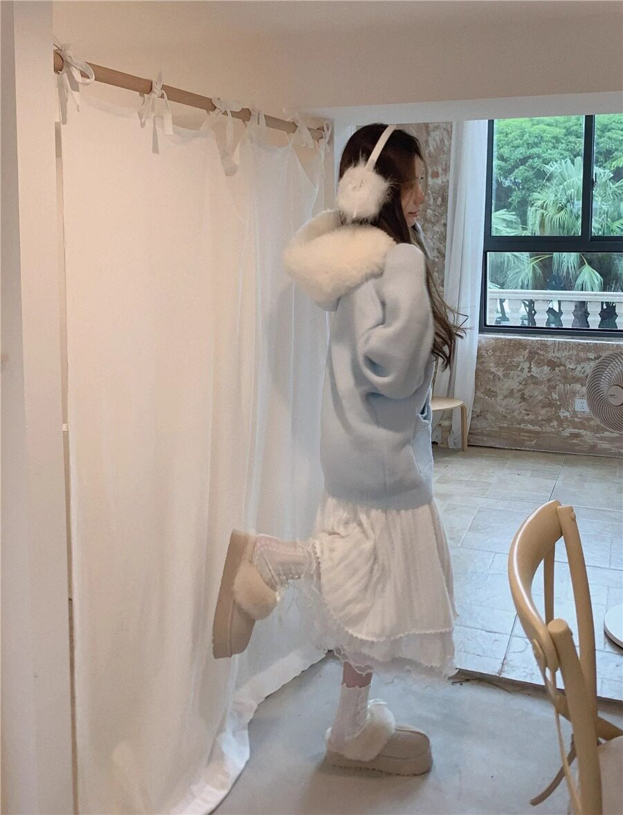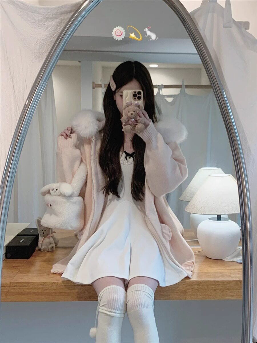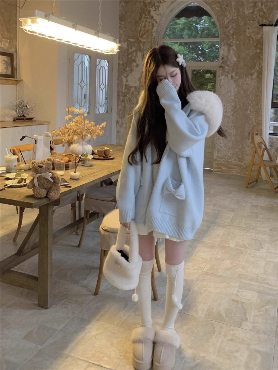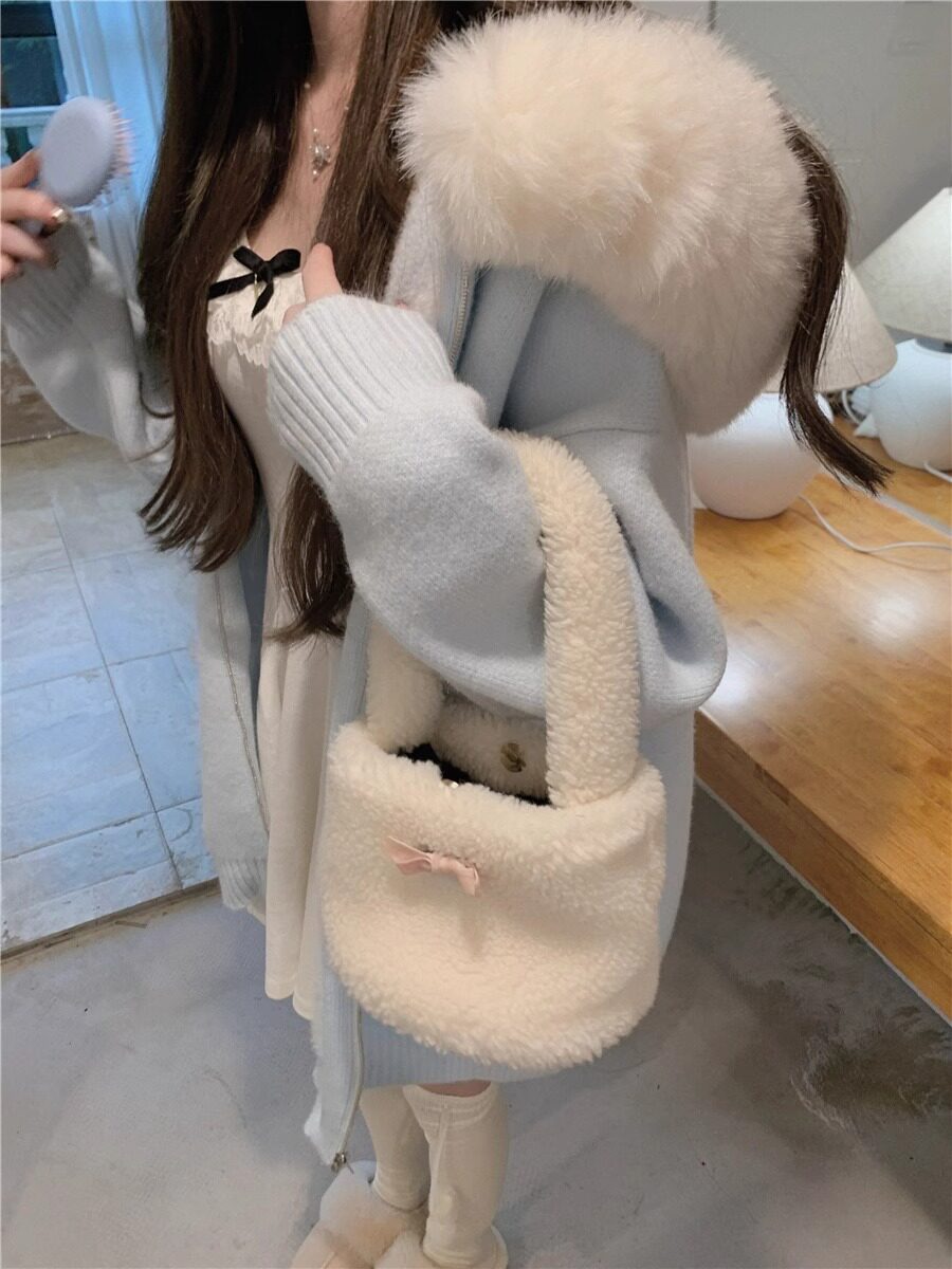 2025新款大毛領連帽毛衣針織開衫外套慵懶風超好看寬松加厚秋冬款