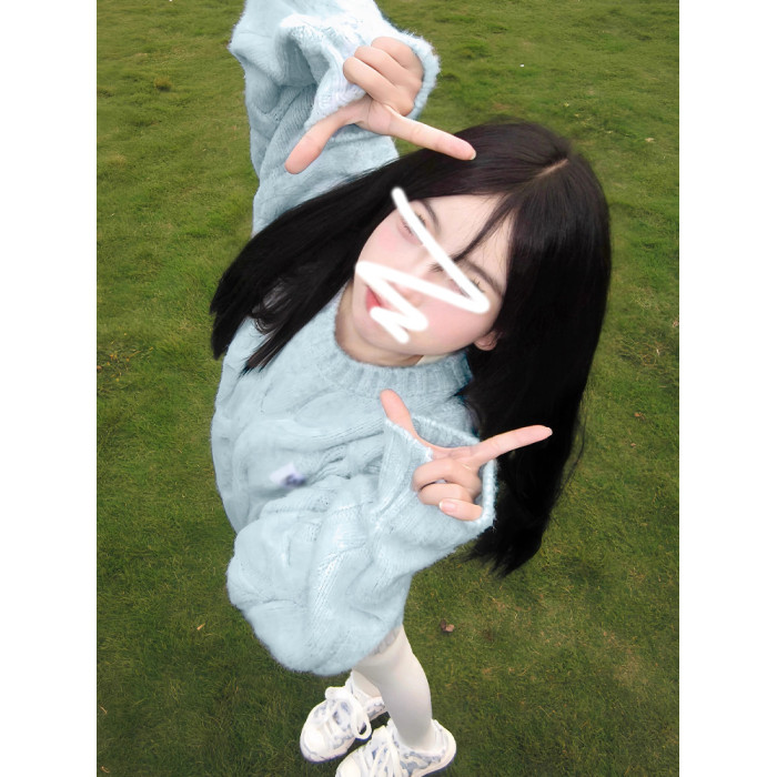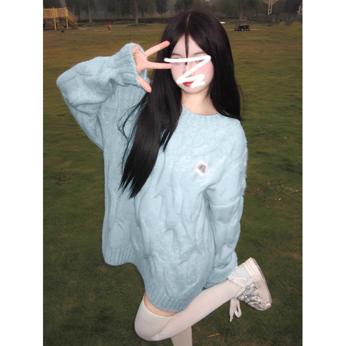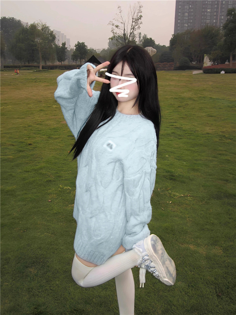 嬭fufu軟糯甜美藍色毛衣女秋冬季2026新款慵嬾風穿搭針織衫小個子