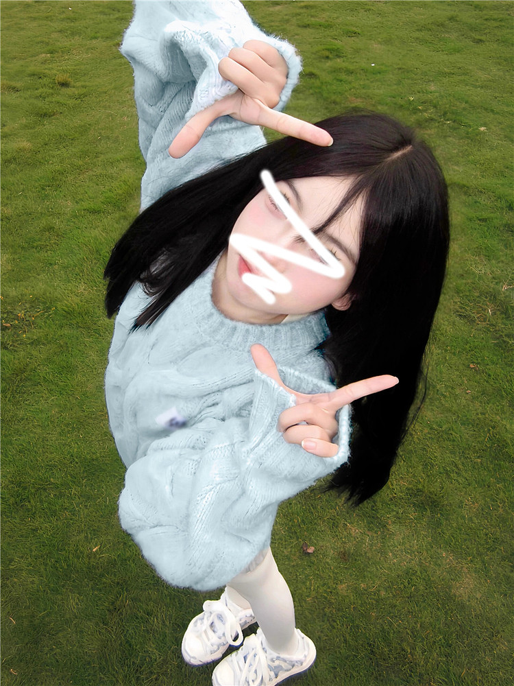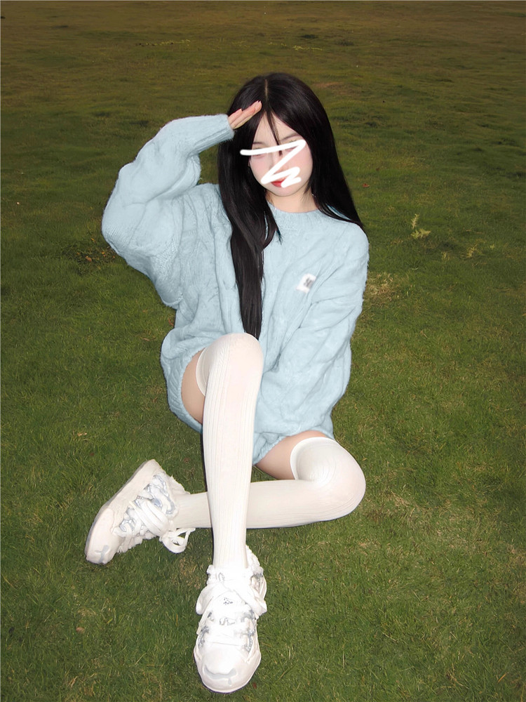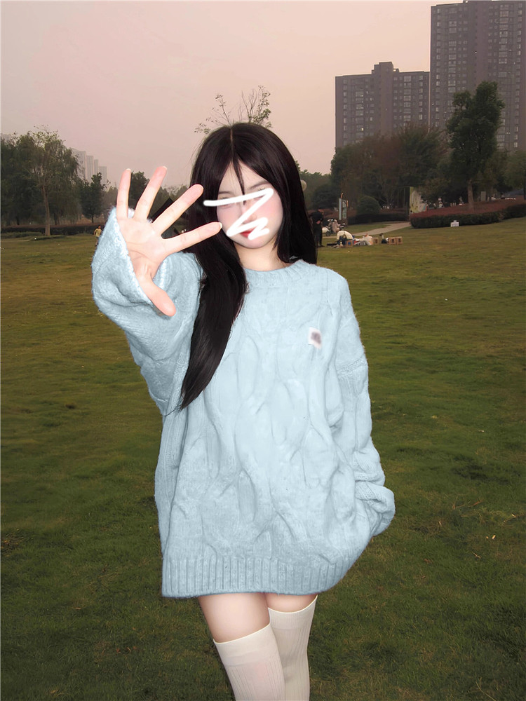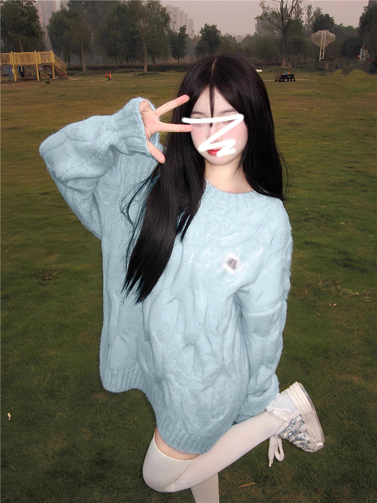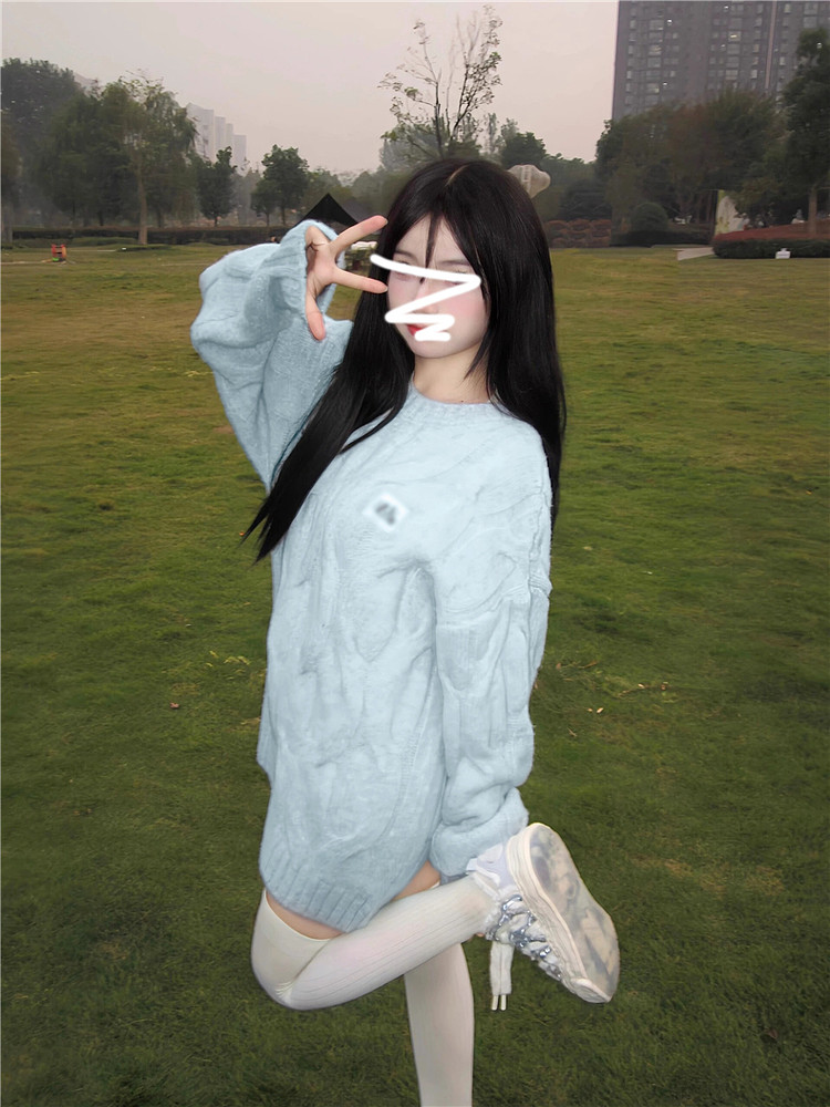 奶fufu軟糯甜美藍色毛衣女早春季2026新款慵懶風穿搭針織衫小個子