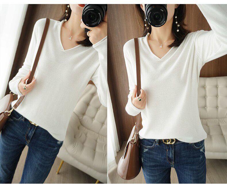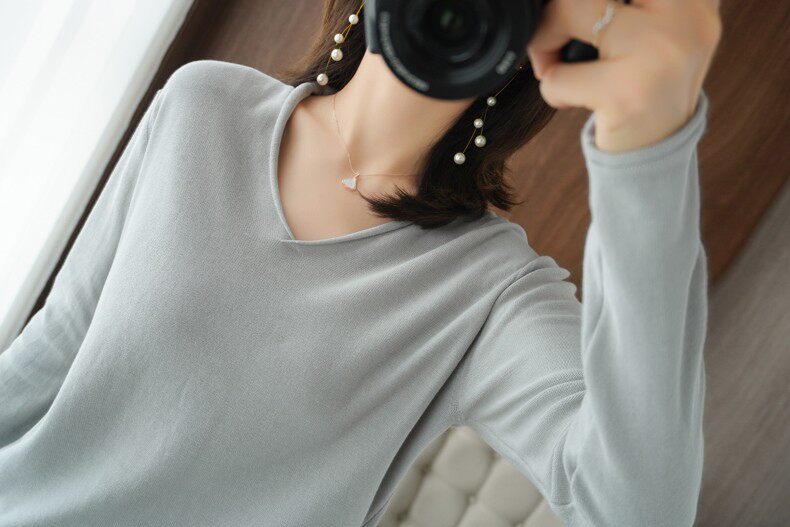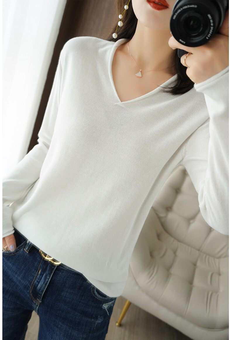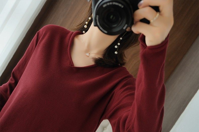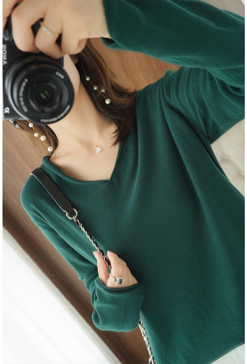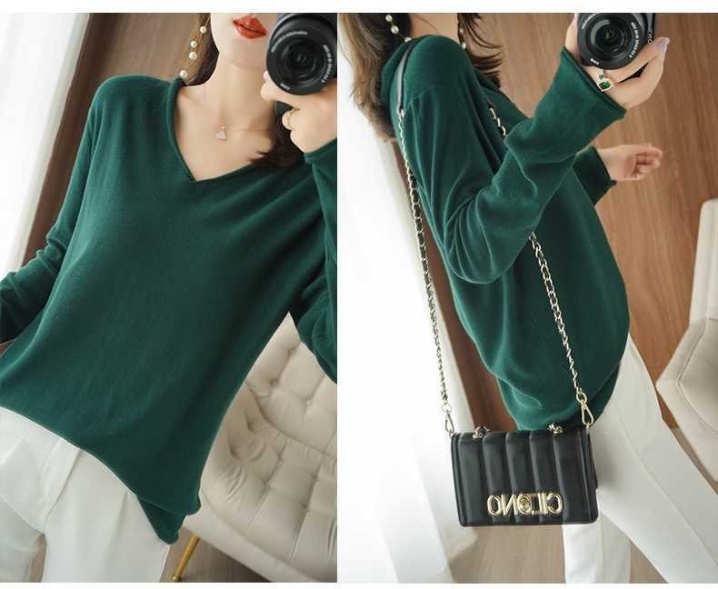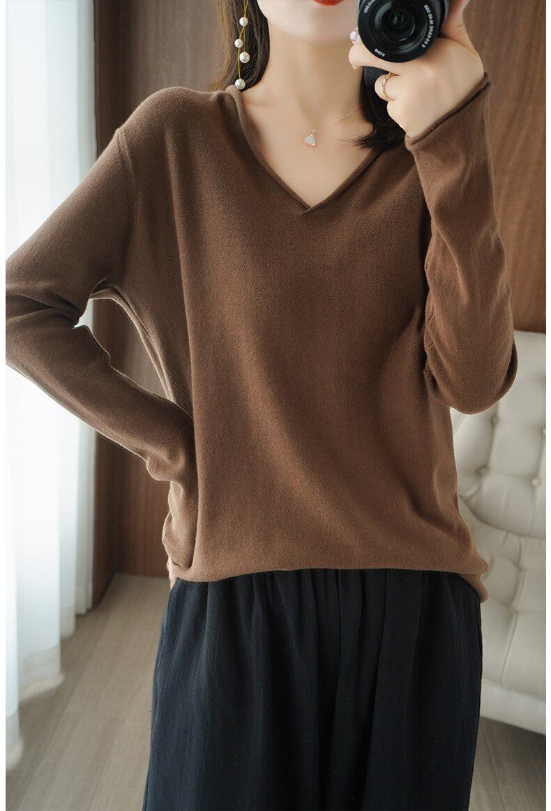 100%純棉秋季新款V領毛衣女卷邊連帽半帽針織衫外穿大碼寬鬆護頸