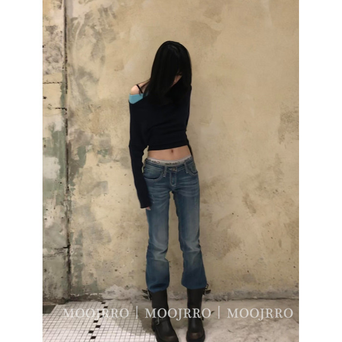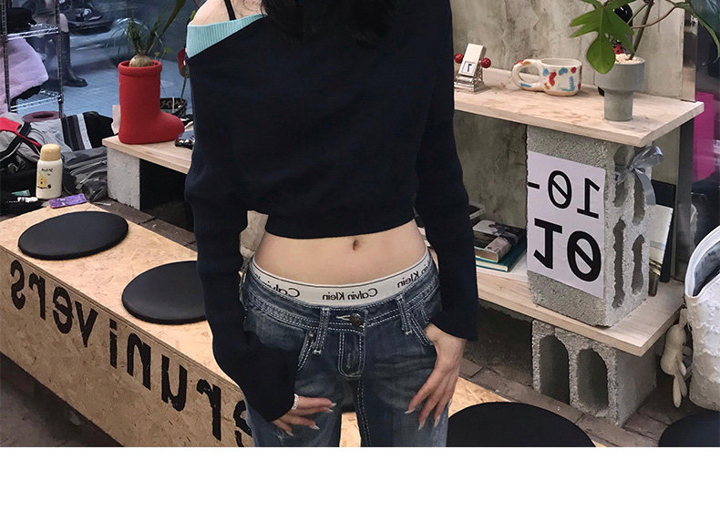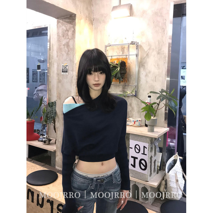 斜肩套頭毛衣女秋冬季小個子慵懶風高級感氣質短款內搭打底針織衫